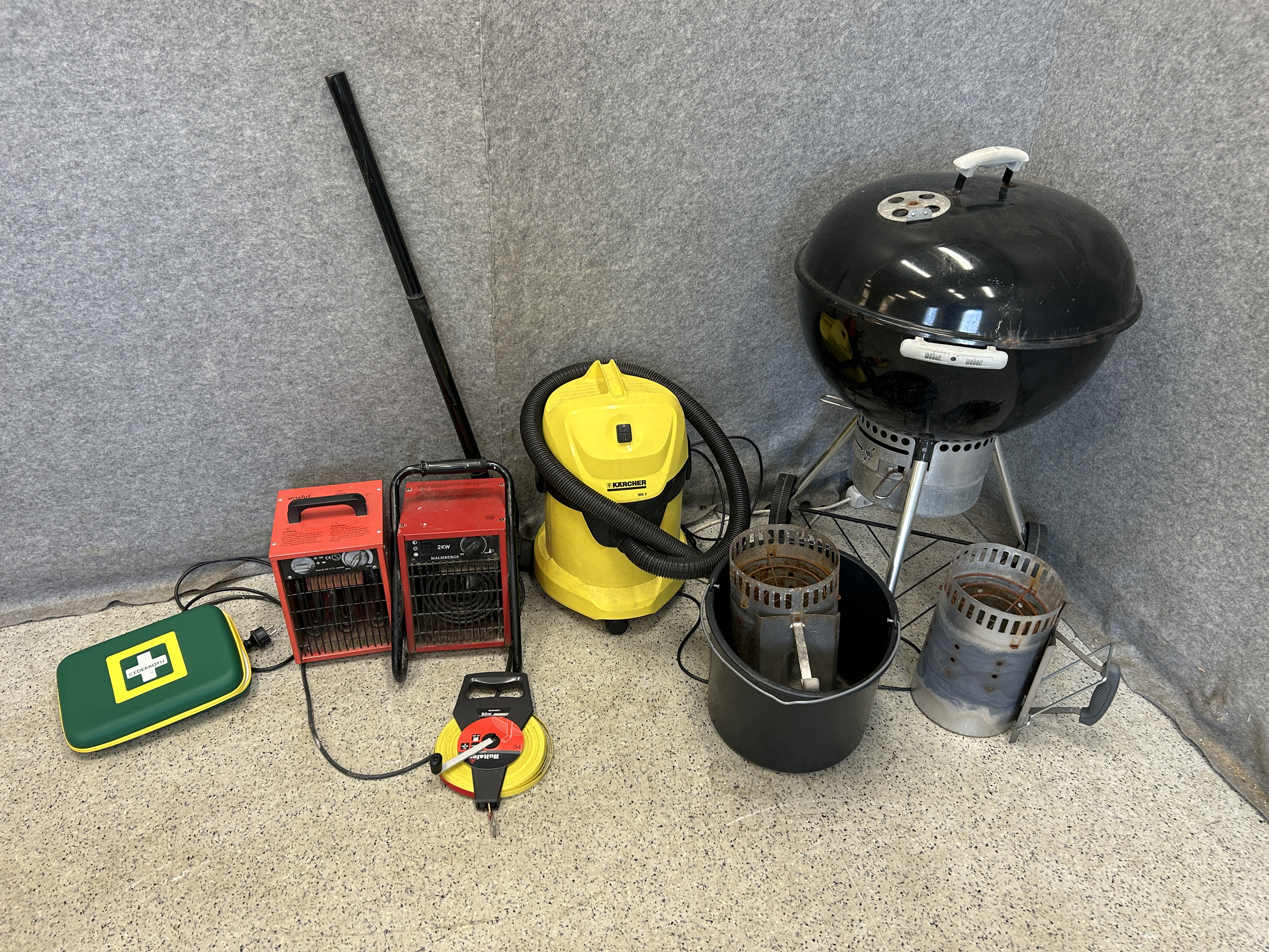 Dammsugare, grill och värmefläktar från förening.