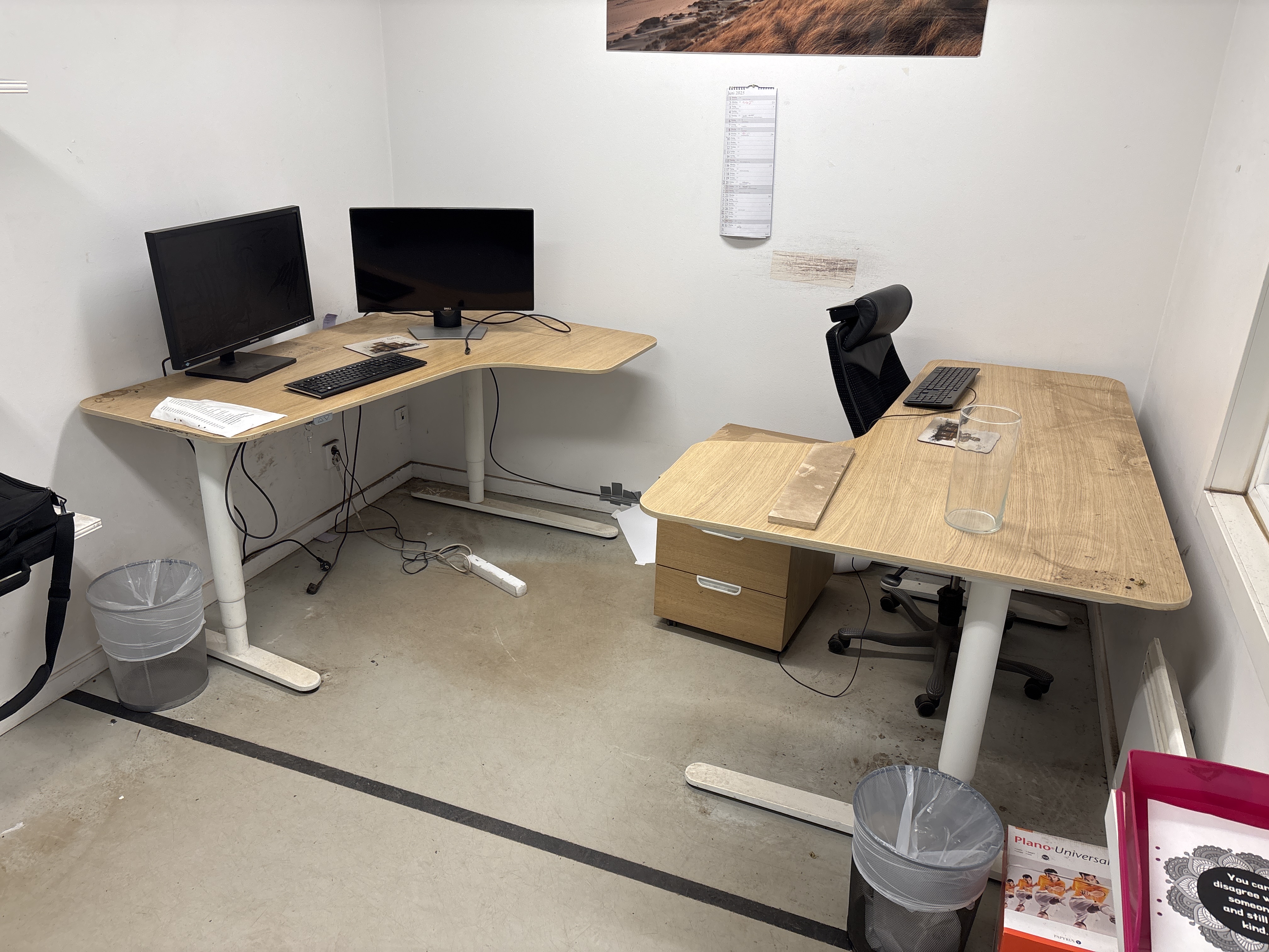 Innehåll i 2 st kontorsrum - Skrivbord, skärmar, m.m.