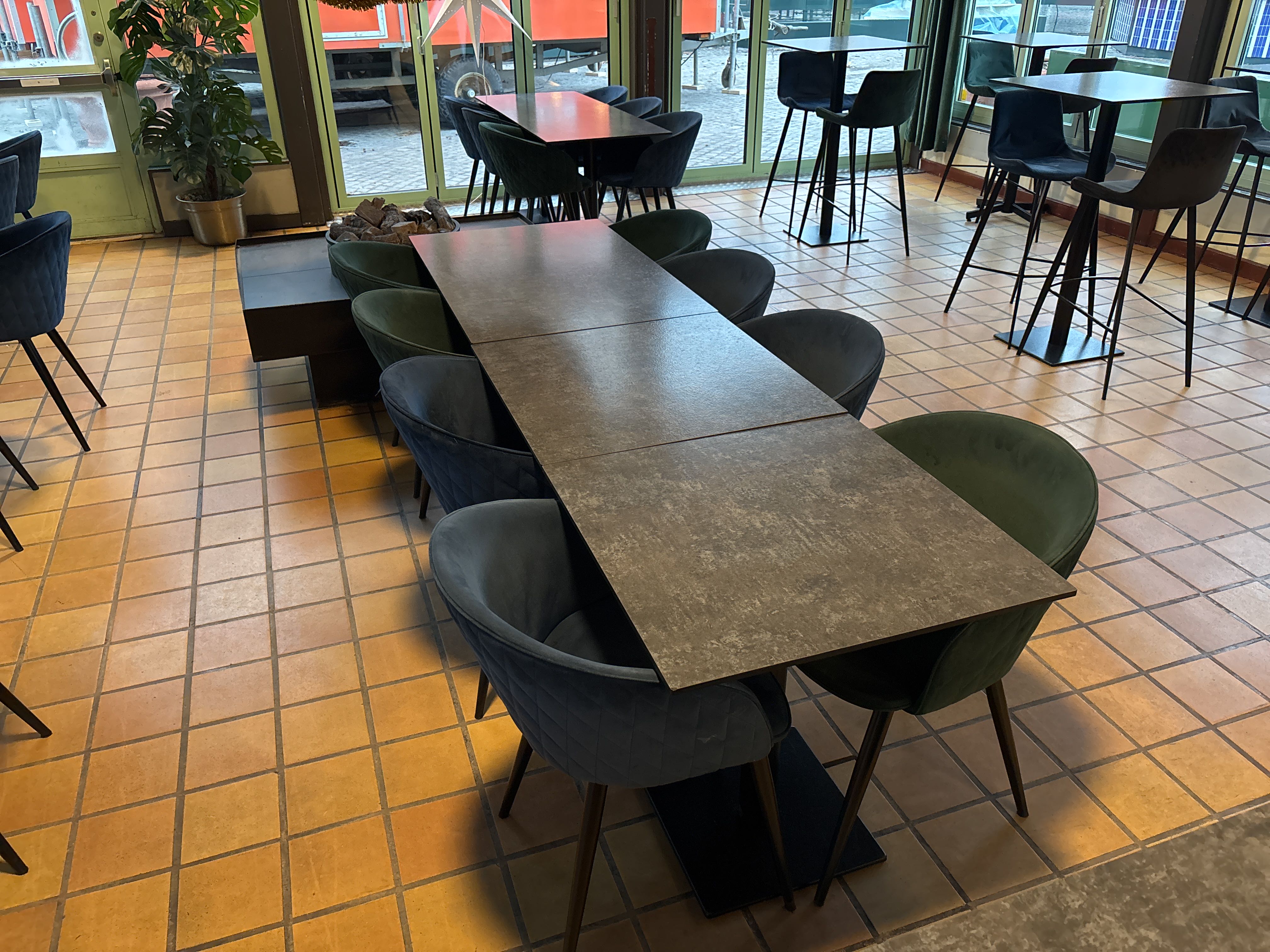 Matgrupp med 3 bord och 8 stolar