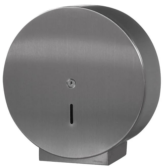 Låsbar hållare för toalettpapper i robust och mattborstat rostfritt stål. Avsedd för offentliga eller utsatta miljöer där hög slitstyrka krävs. Levereras monteringsfärdig med skruv och plugg.