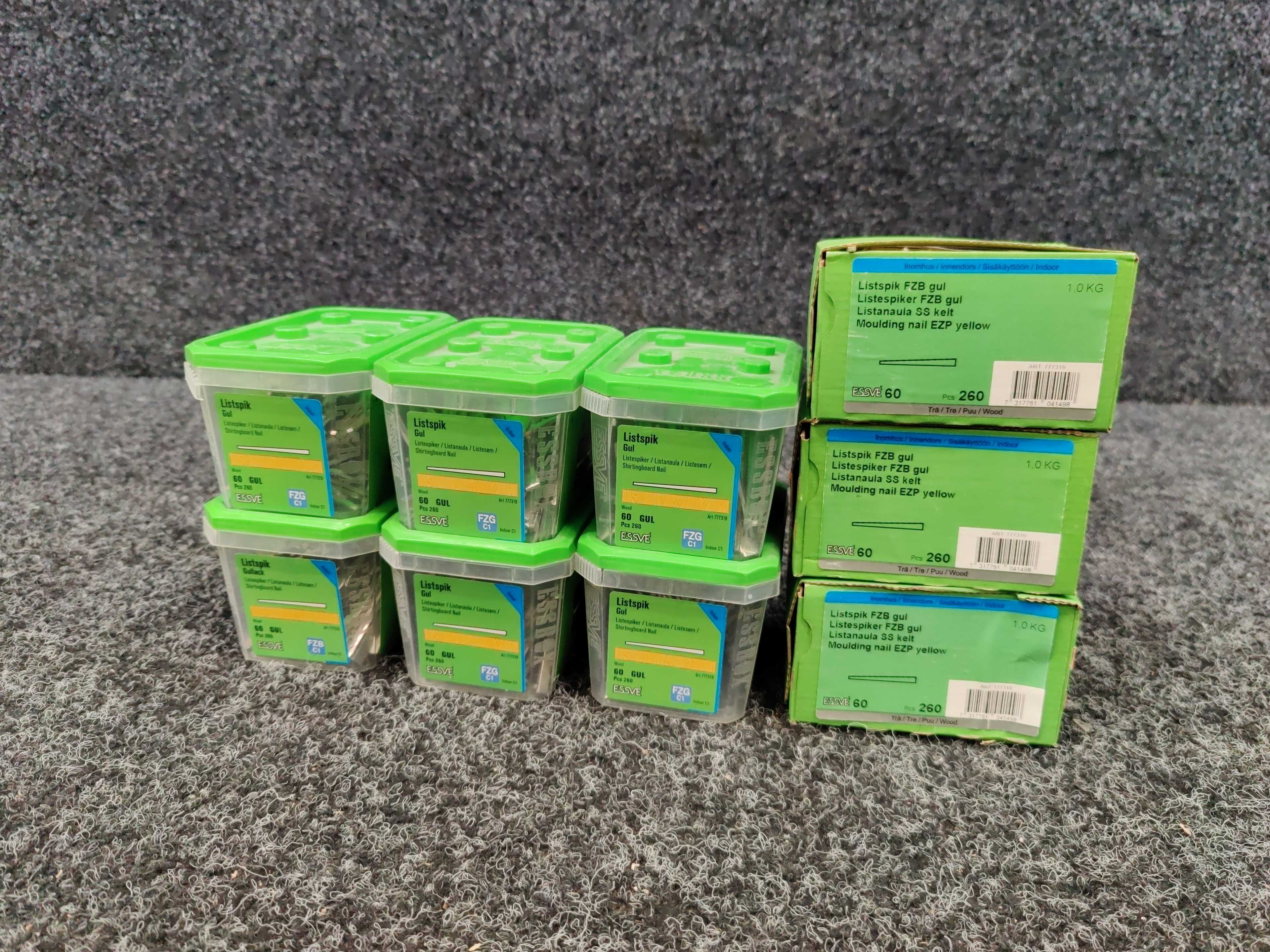 9 st Förpackningar Listspik 60 Gul, Essve.