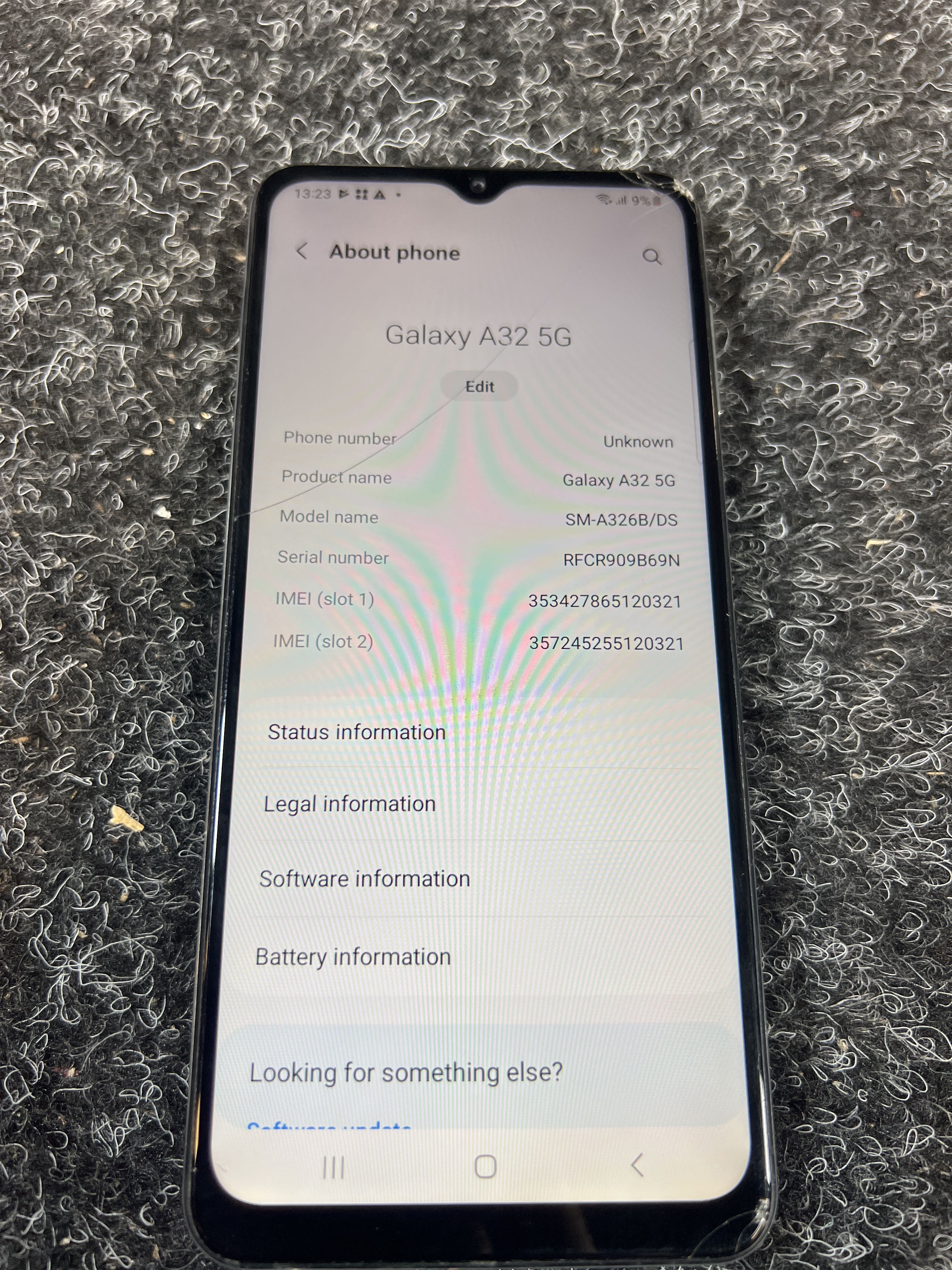 Galaxy A32 skärmen har spricka, se bild