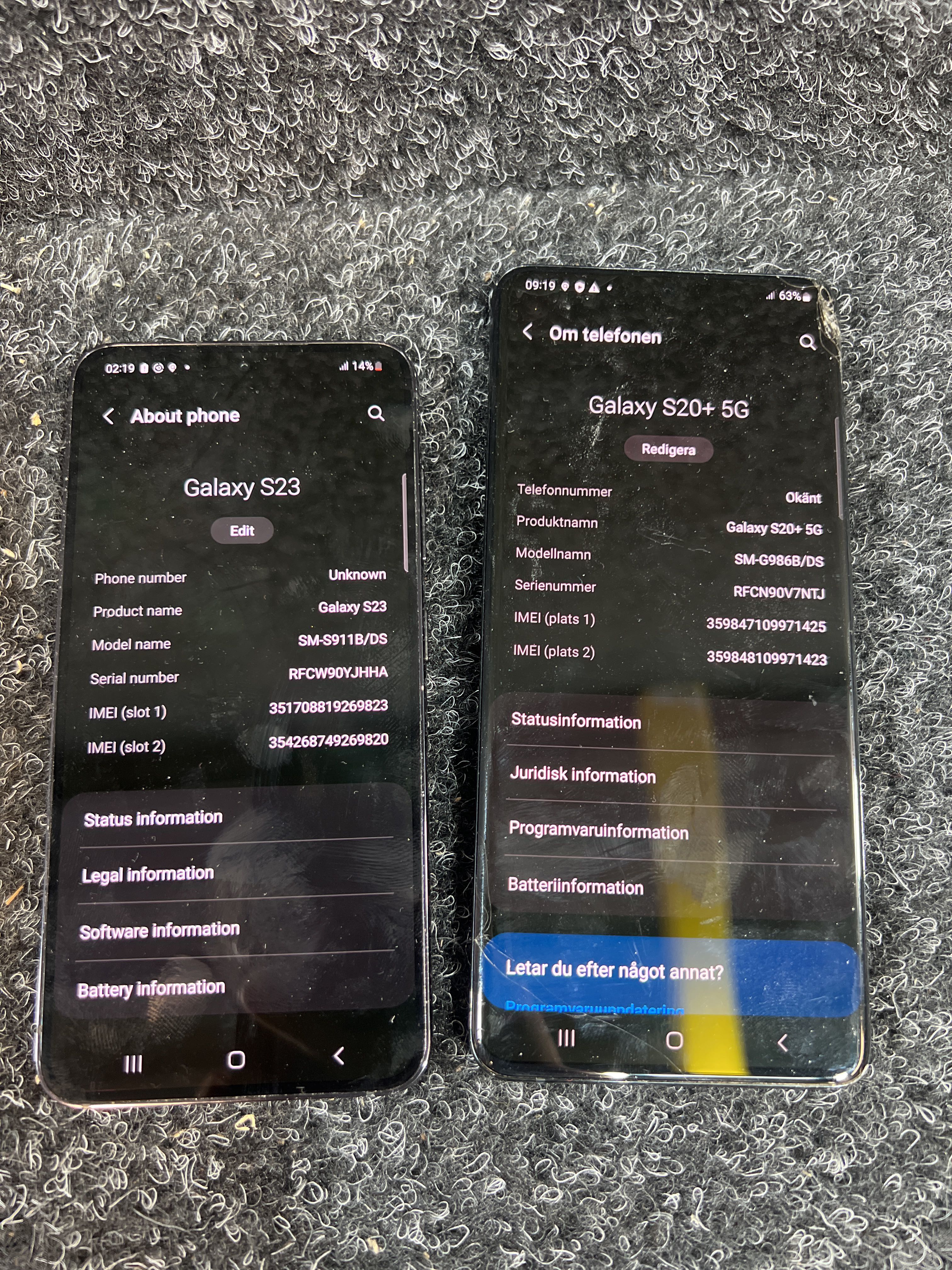 Mobiltelefoner 2 st - Samsung Galaxy S23 och Galaxy S20+ 5G