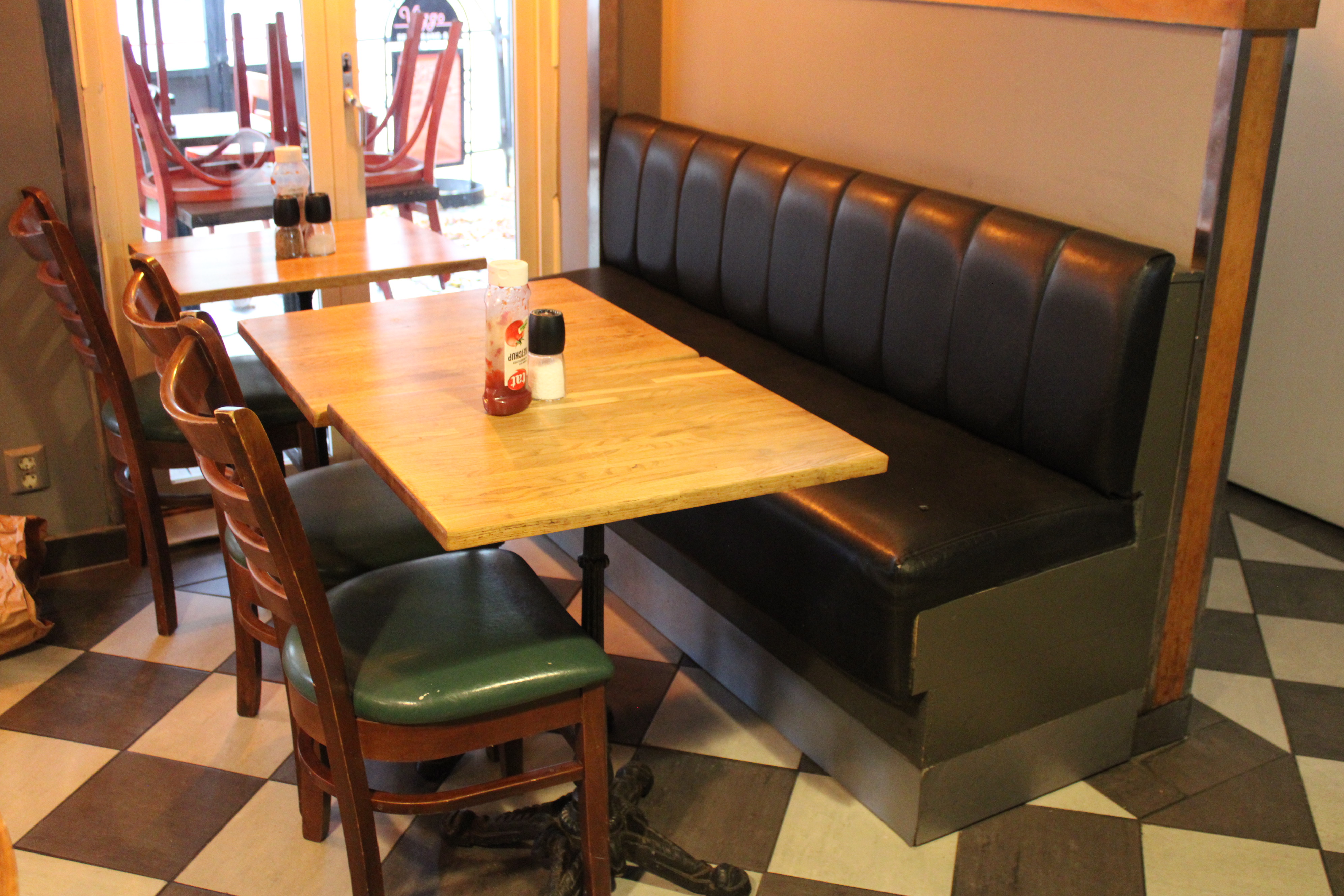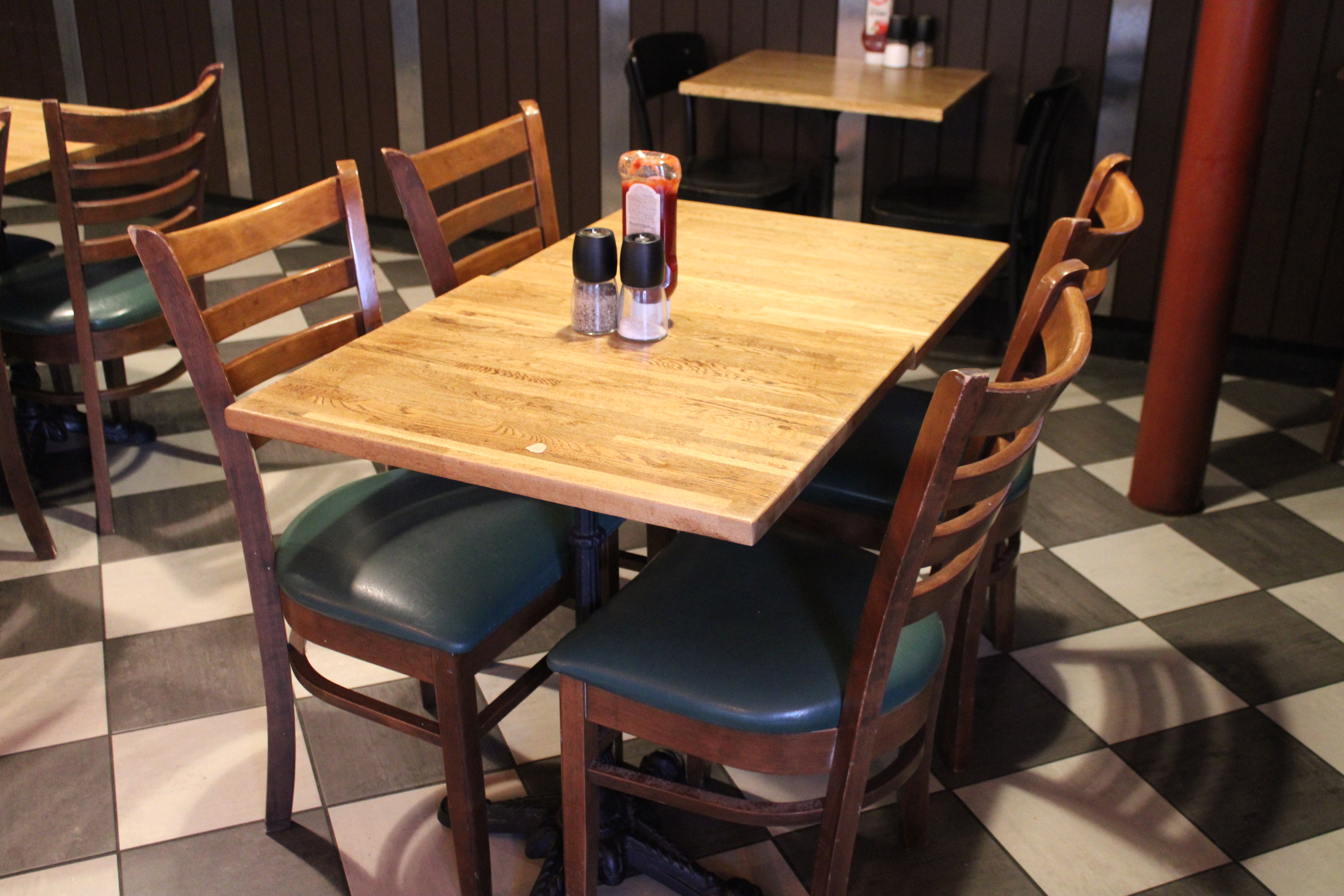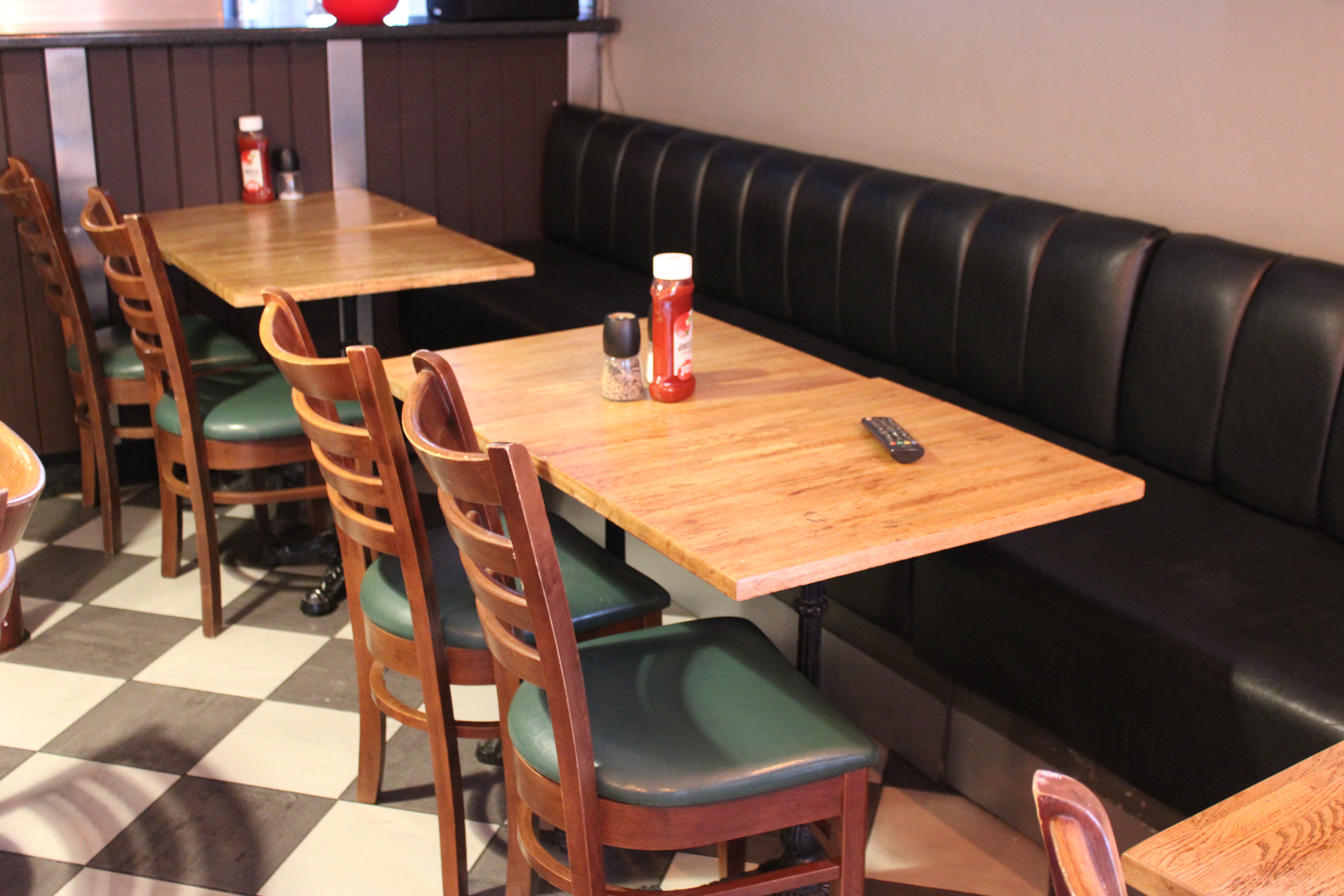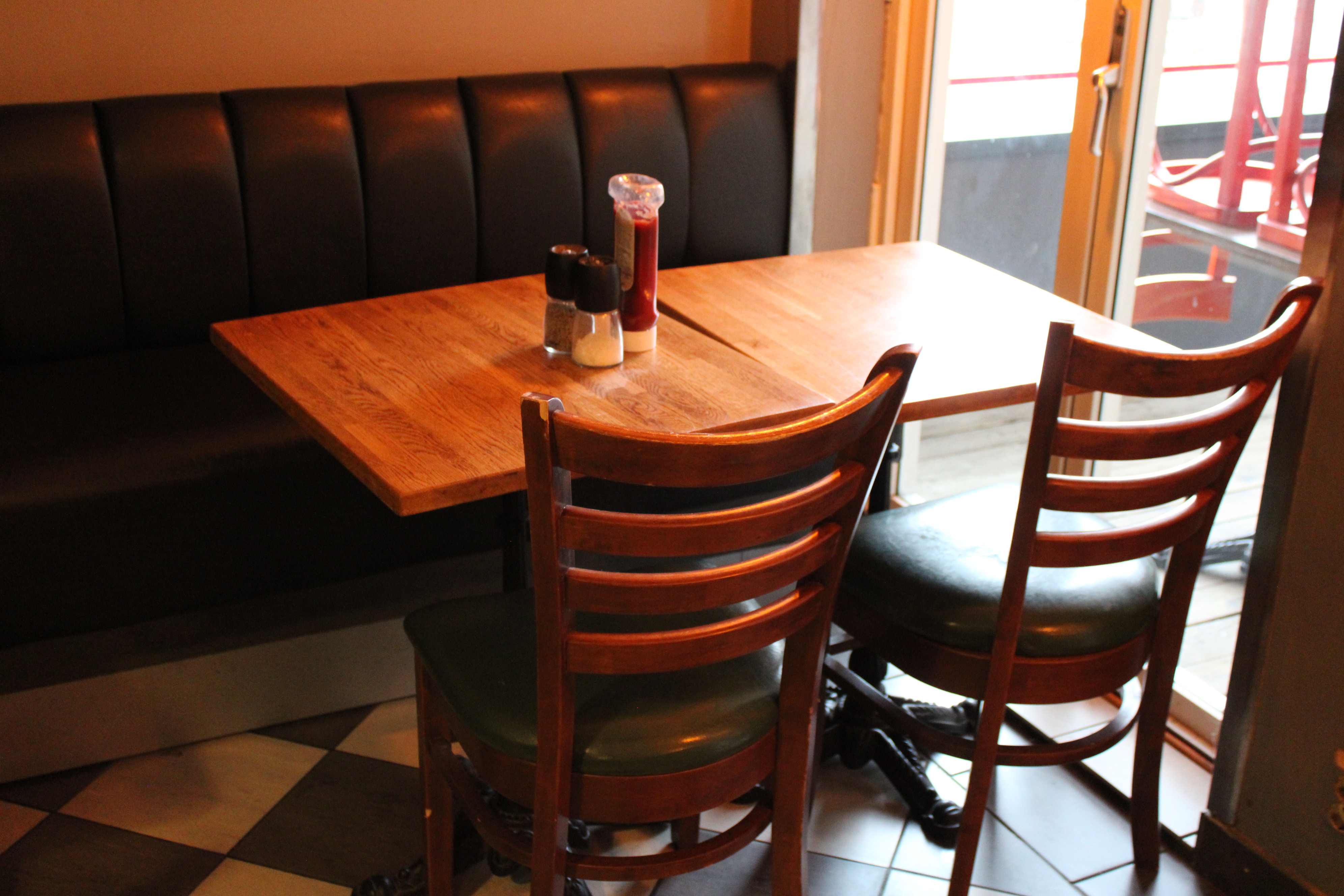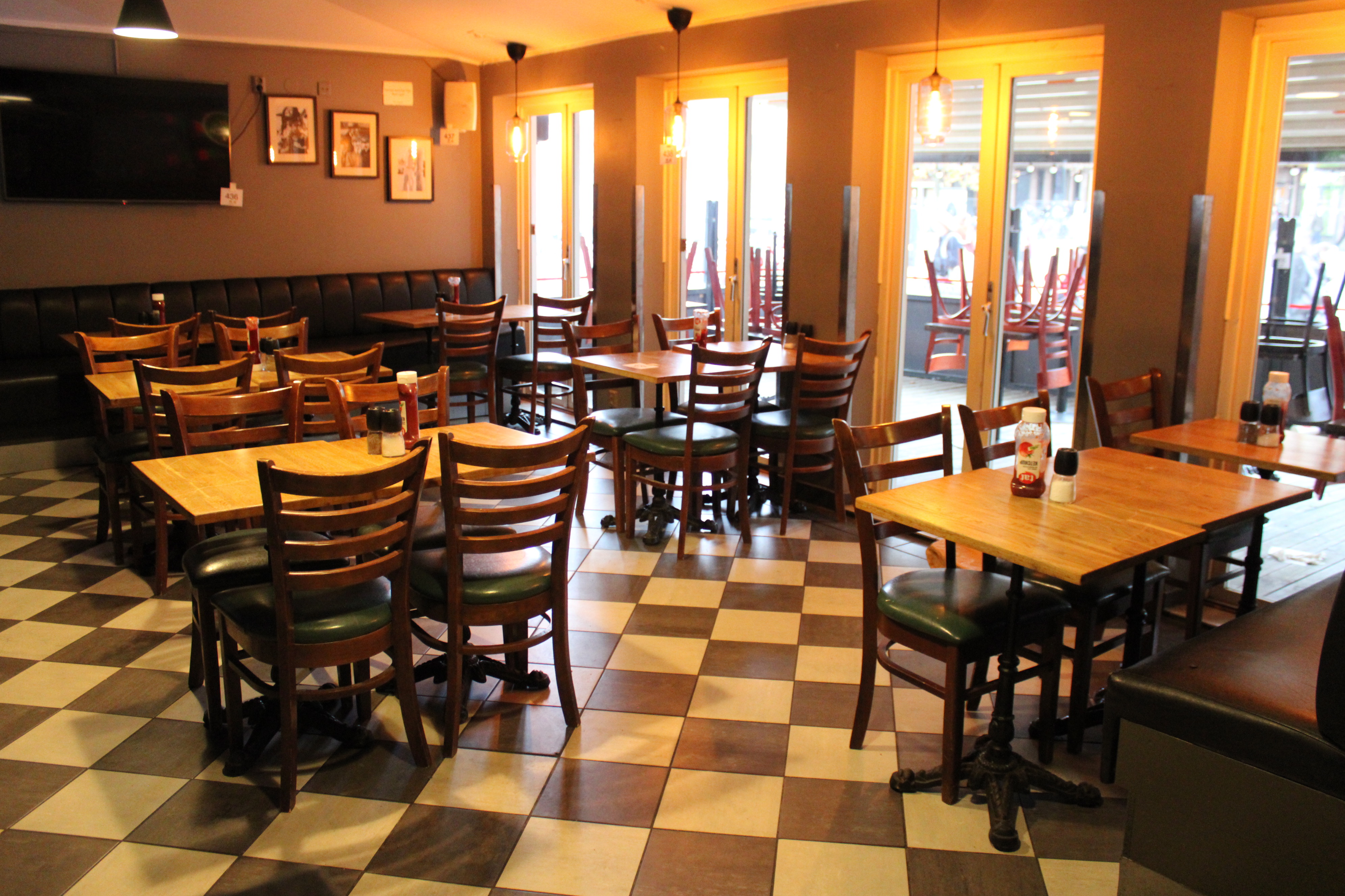 Möbler i serveringen (16 bord, 23 stolar, 3 soffor)