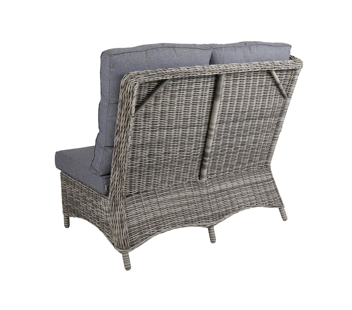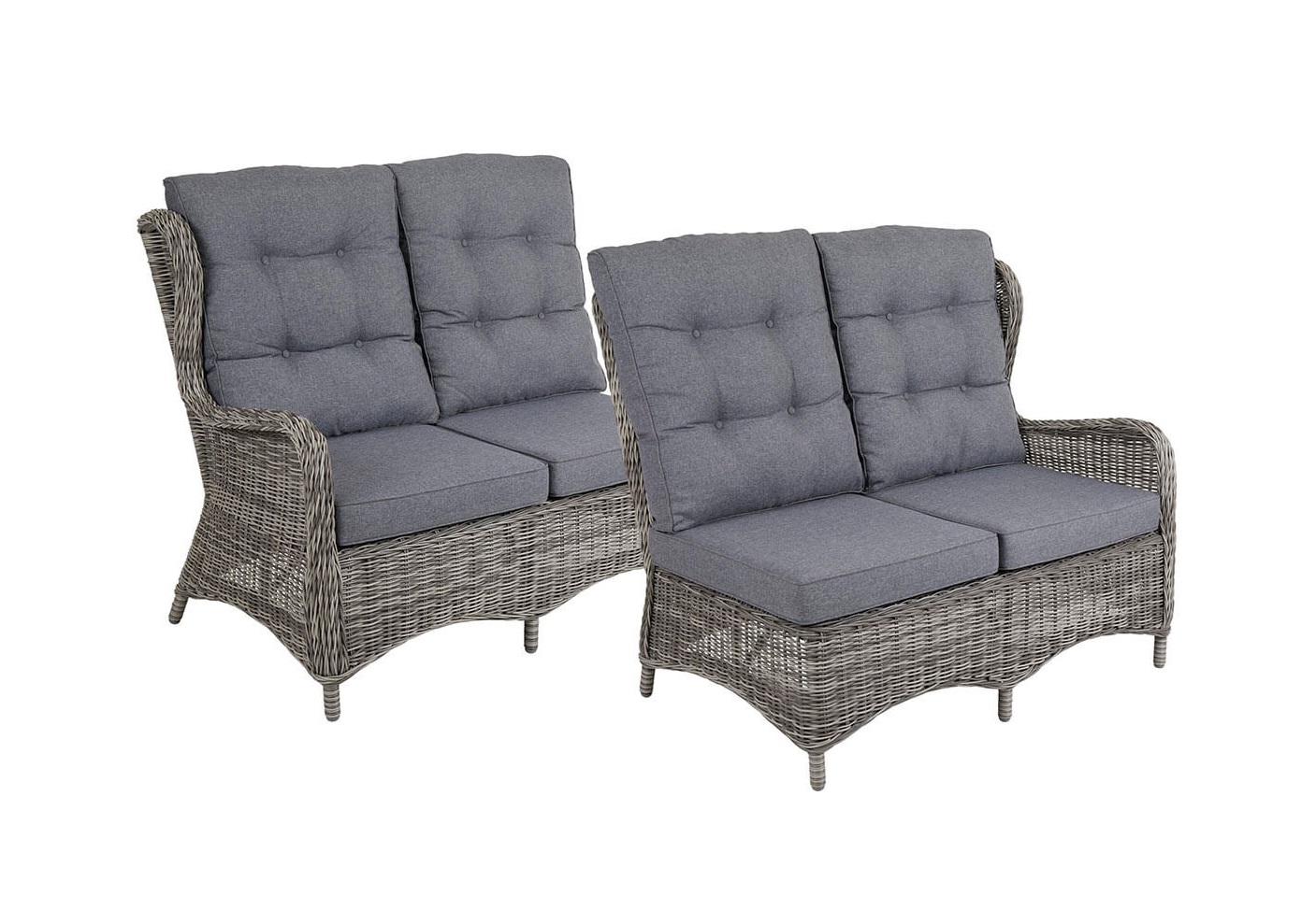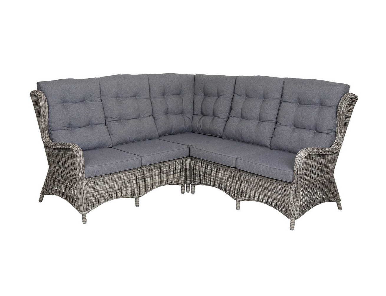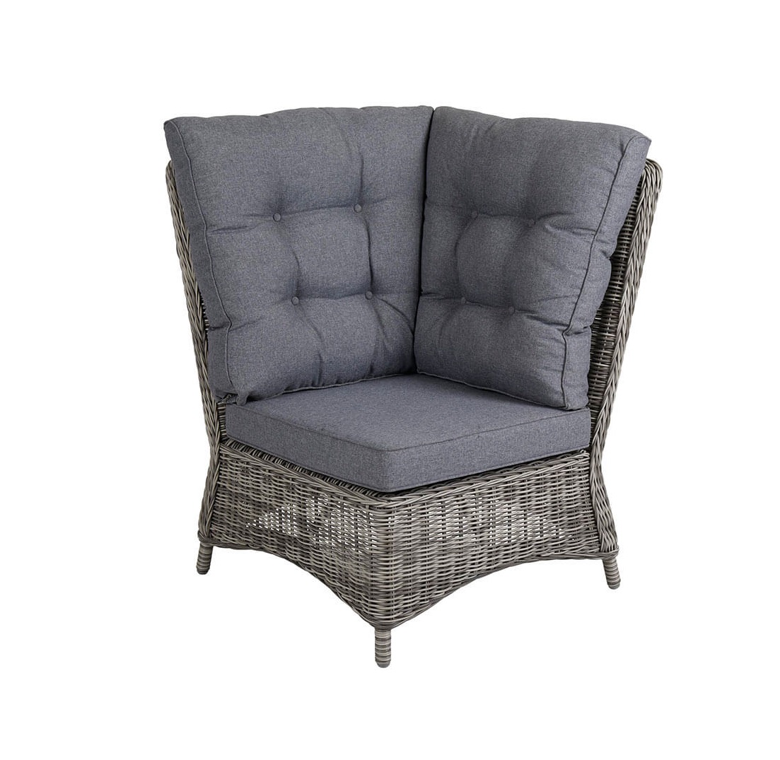 Trädgårdsserien Rosita från Brafab är tillverkad av en aluminiumstomme med en mycket naturtrogen konstrotting, samt grå dynor i polyester.