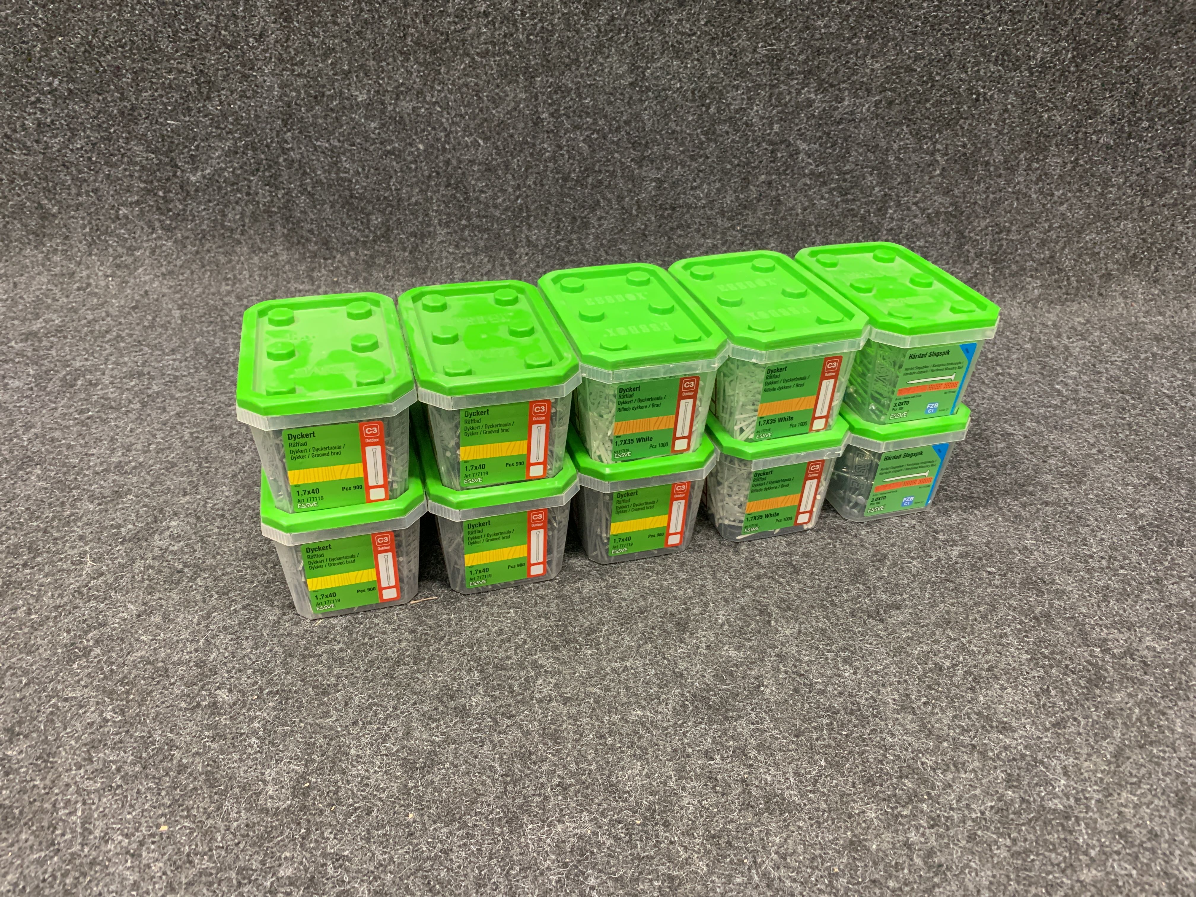 10 st Förpacknignar Dyckert och Slagspik, Essve i olika dimensioner & storlekar enligt bilder.