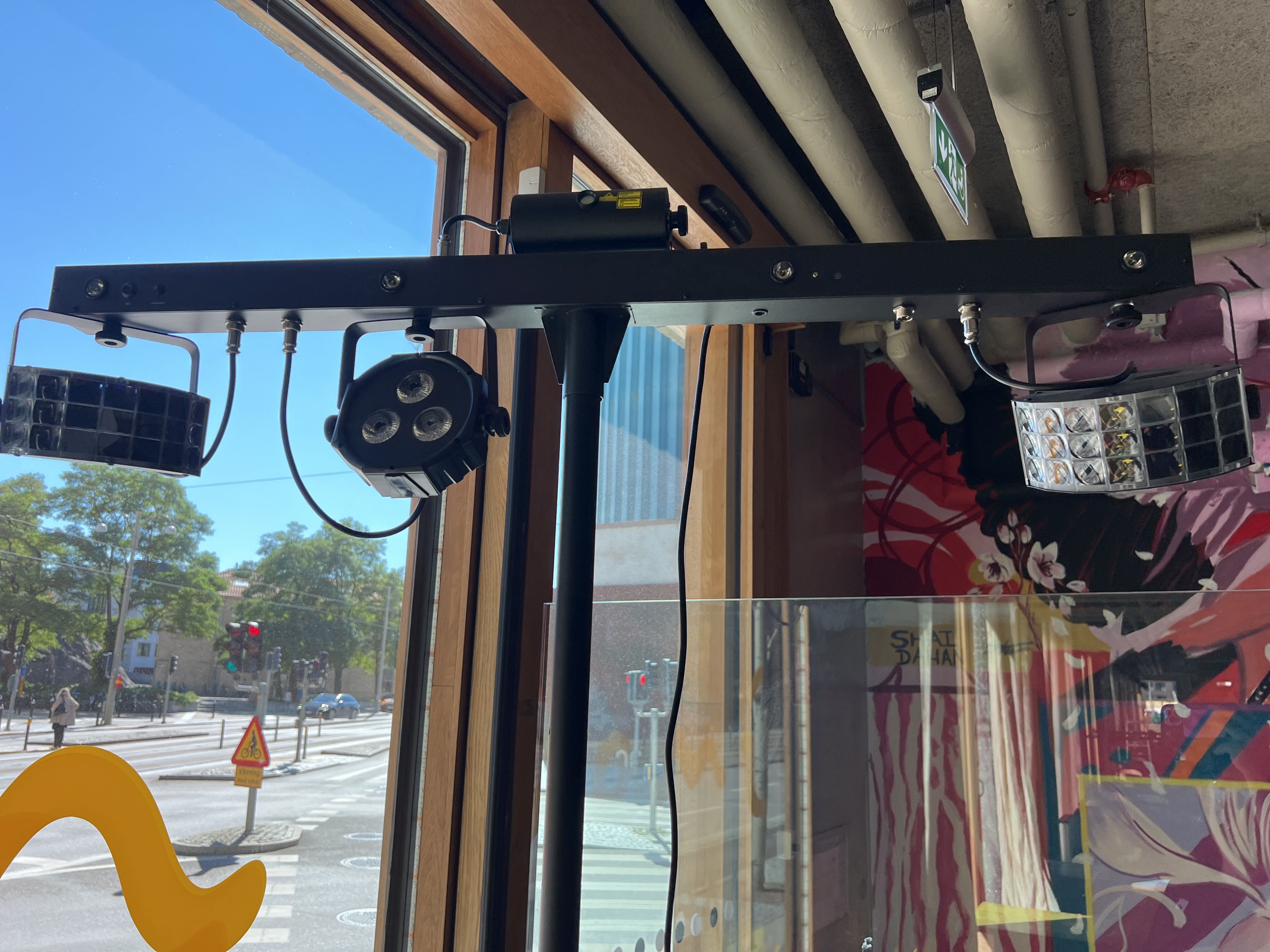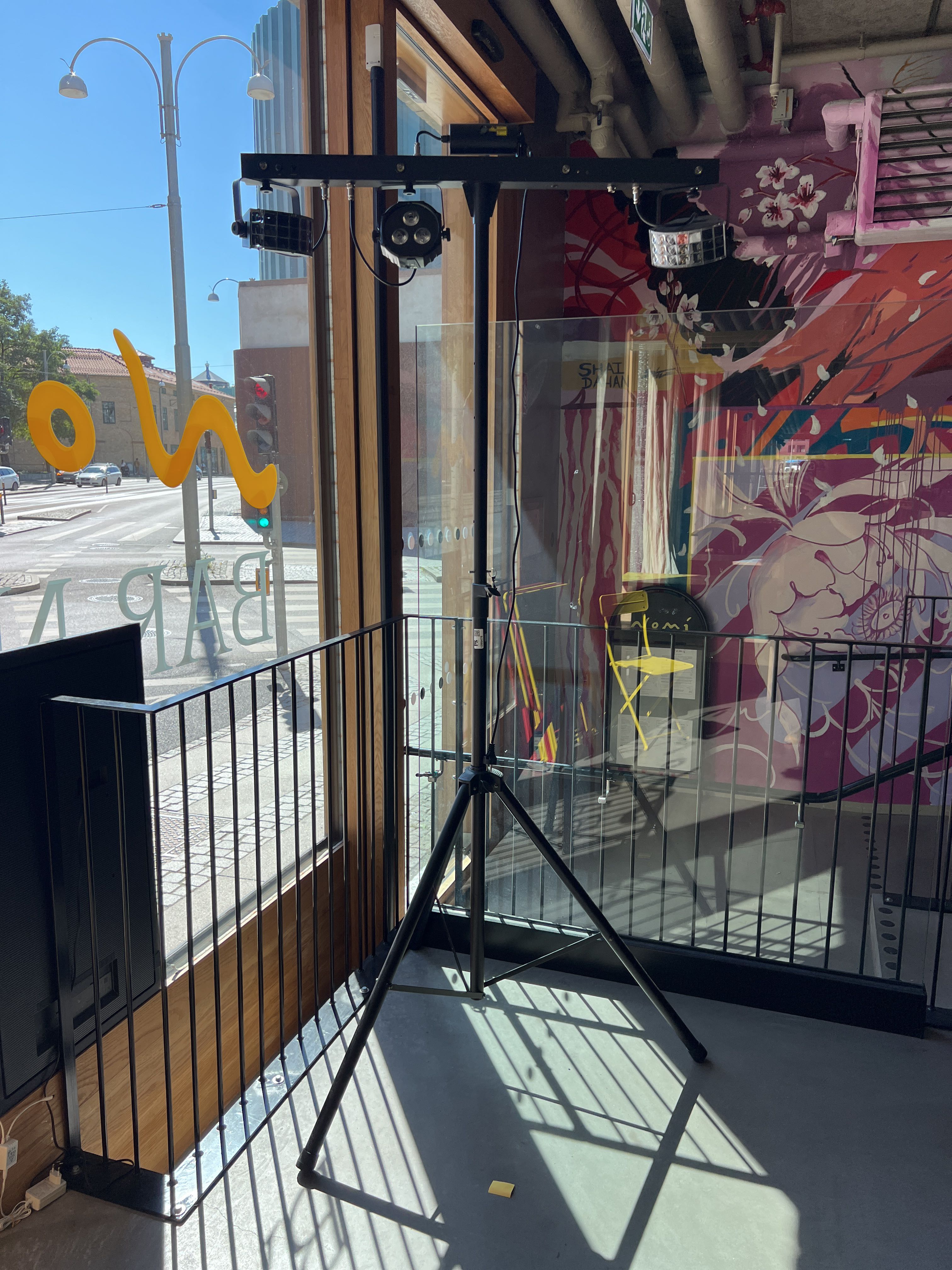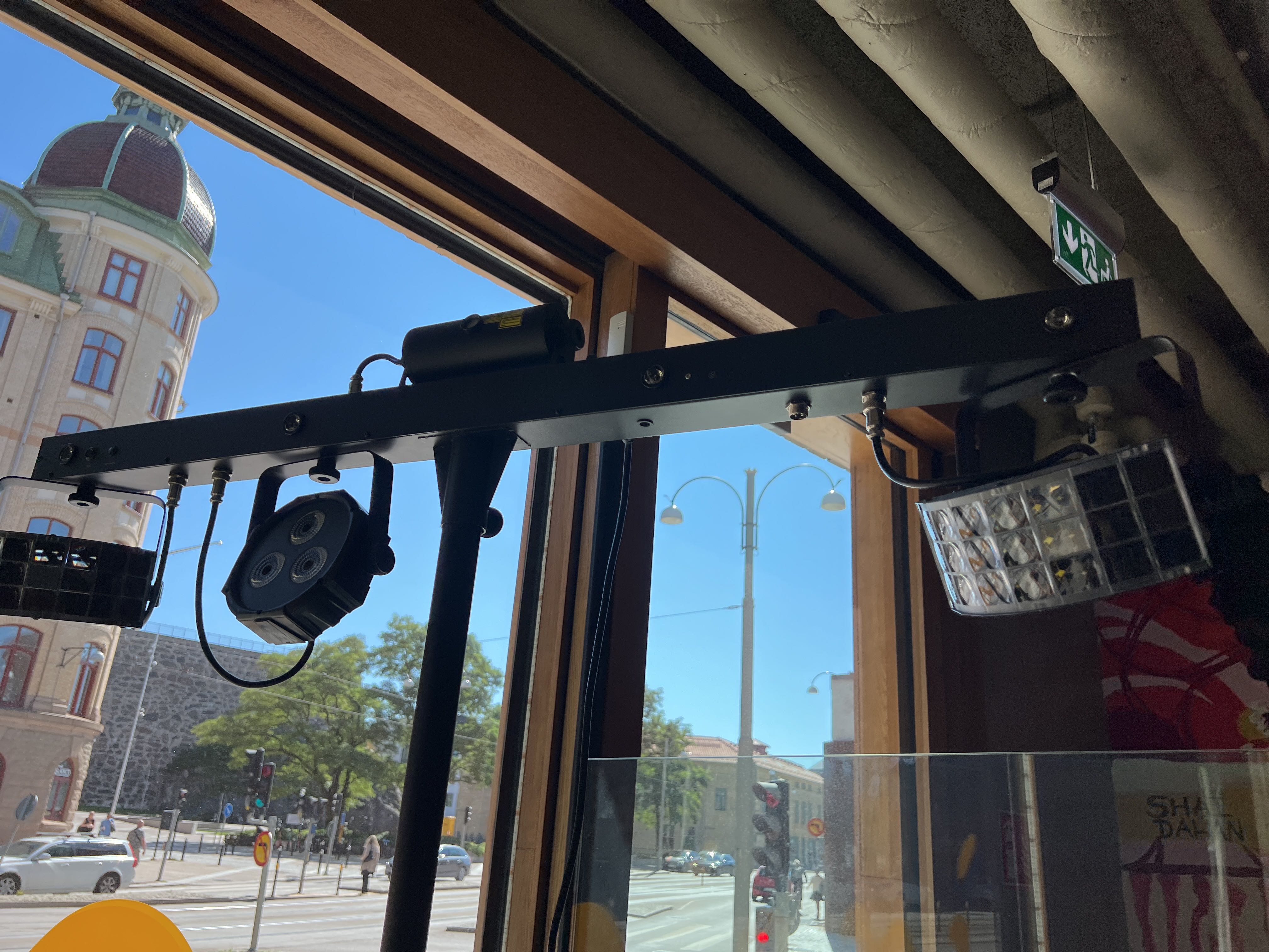 Effektbelysning för DJ- eller scenbruk, monterad på stativ.