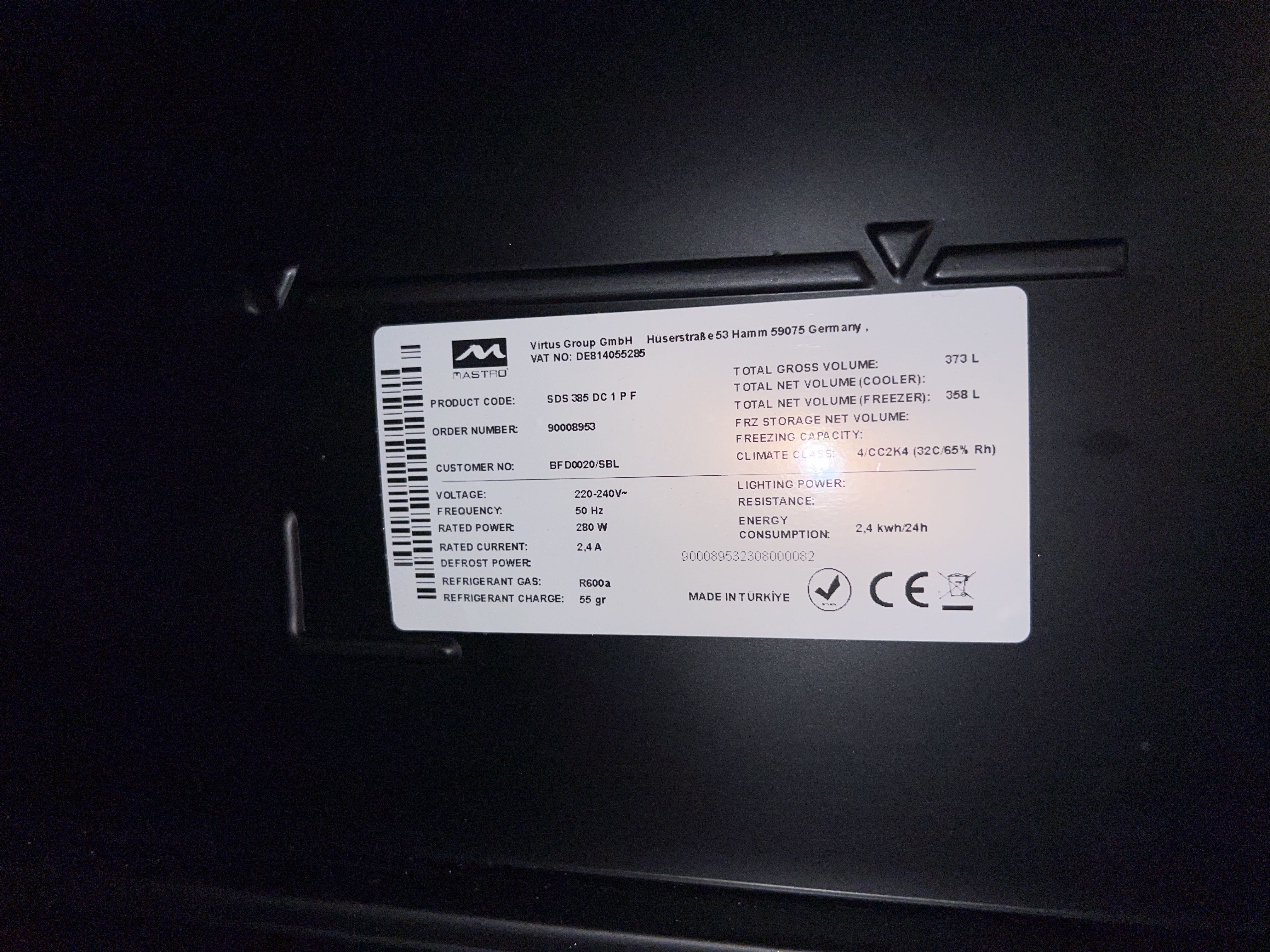 • Total volym: 373 L