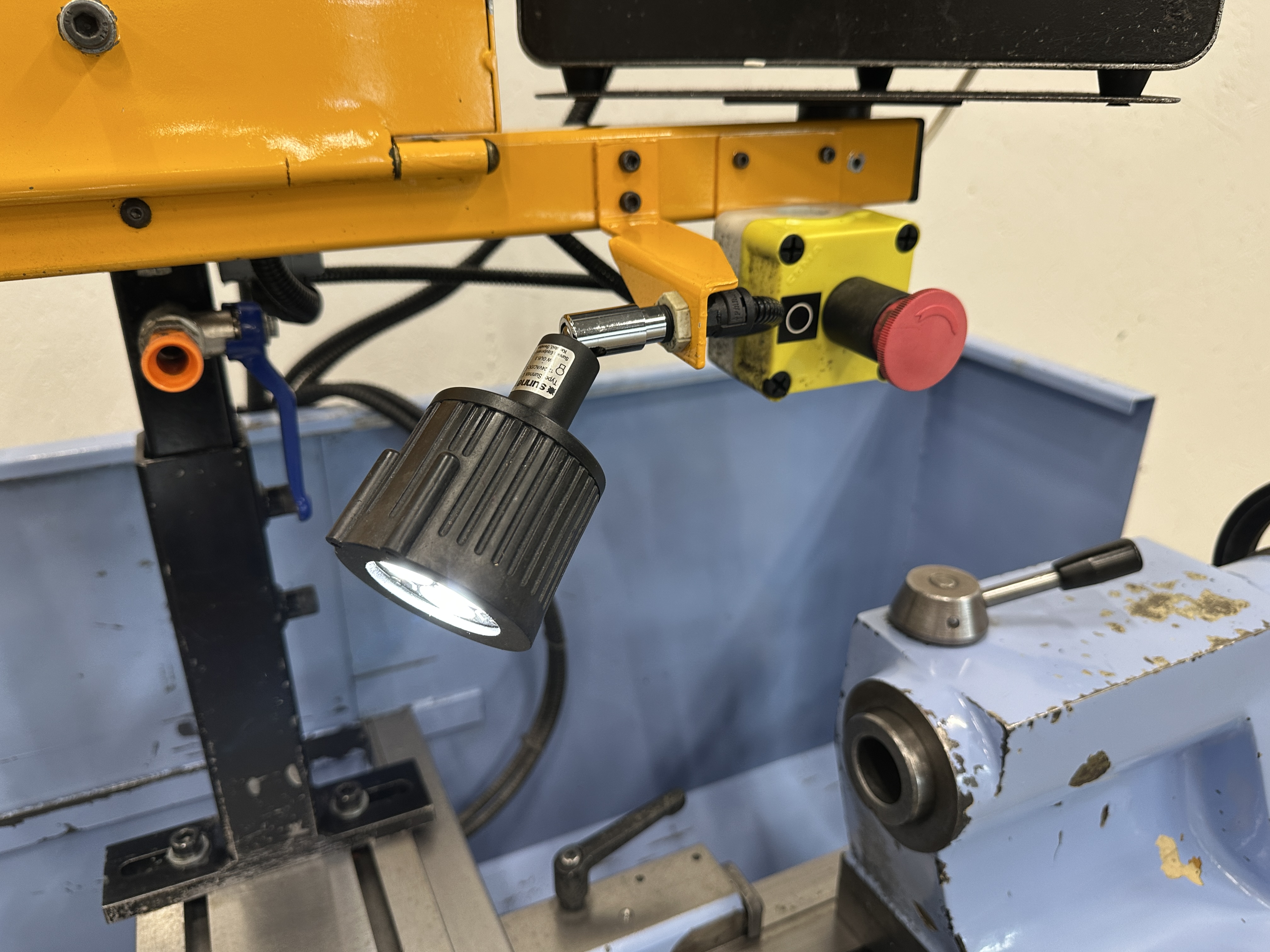 Skydd över tvärslid med arbetsbelysning