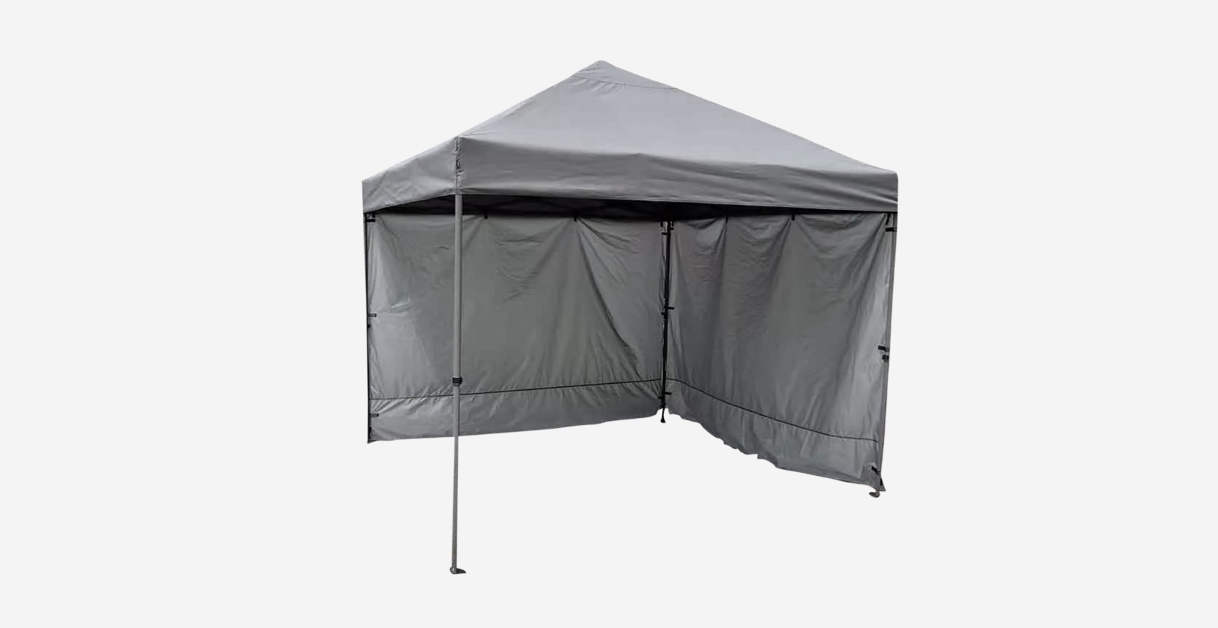 En paviljong ska stå pall för nordiskt klimat – och samtidigt passa in i miljön och ihop med övriga möbler. 170 grams behandlat polyestertyg med tejpade sömmar håller regnet borta. Stommarna är rejäla och stadiga samtidigt som paviljongen är tillräckligt enkel att resa för en person.