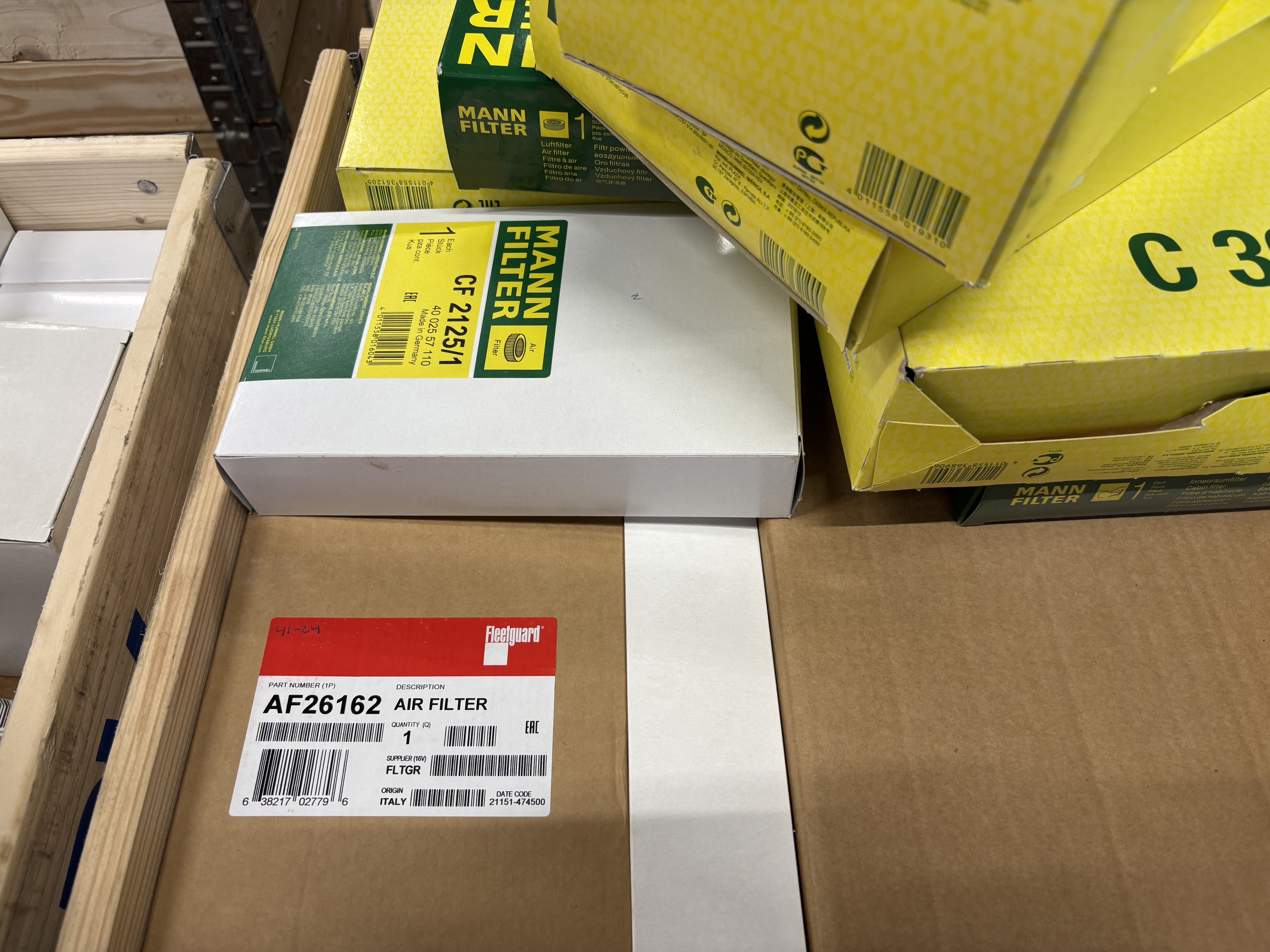 Filtren är nya och ligger i trälåda, vissa i flerpack