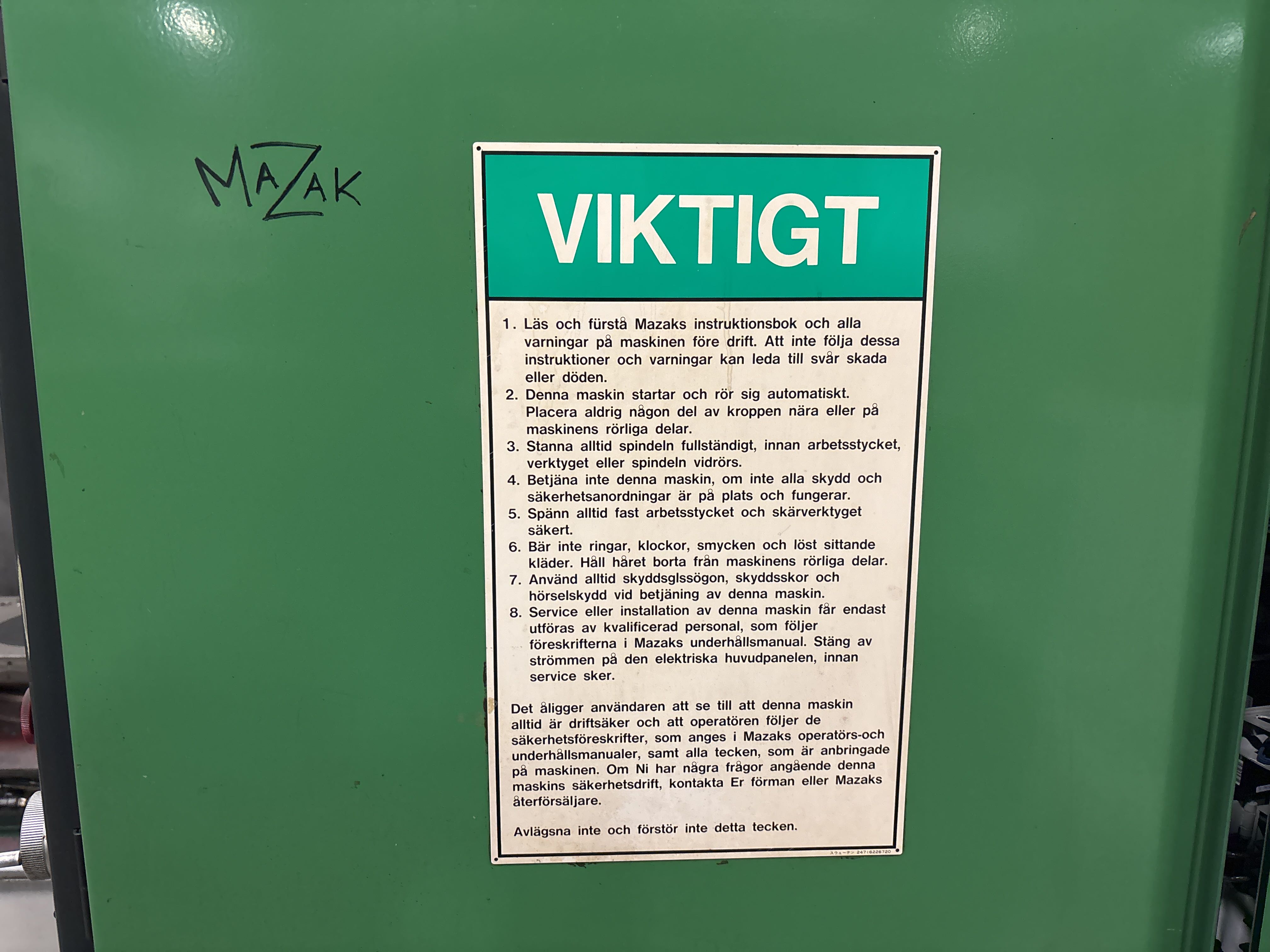 Märkplåt anger ”Mazak Quality Center”
