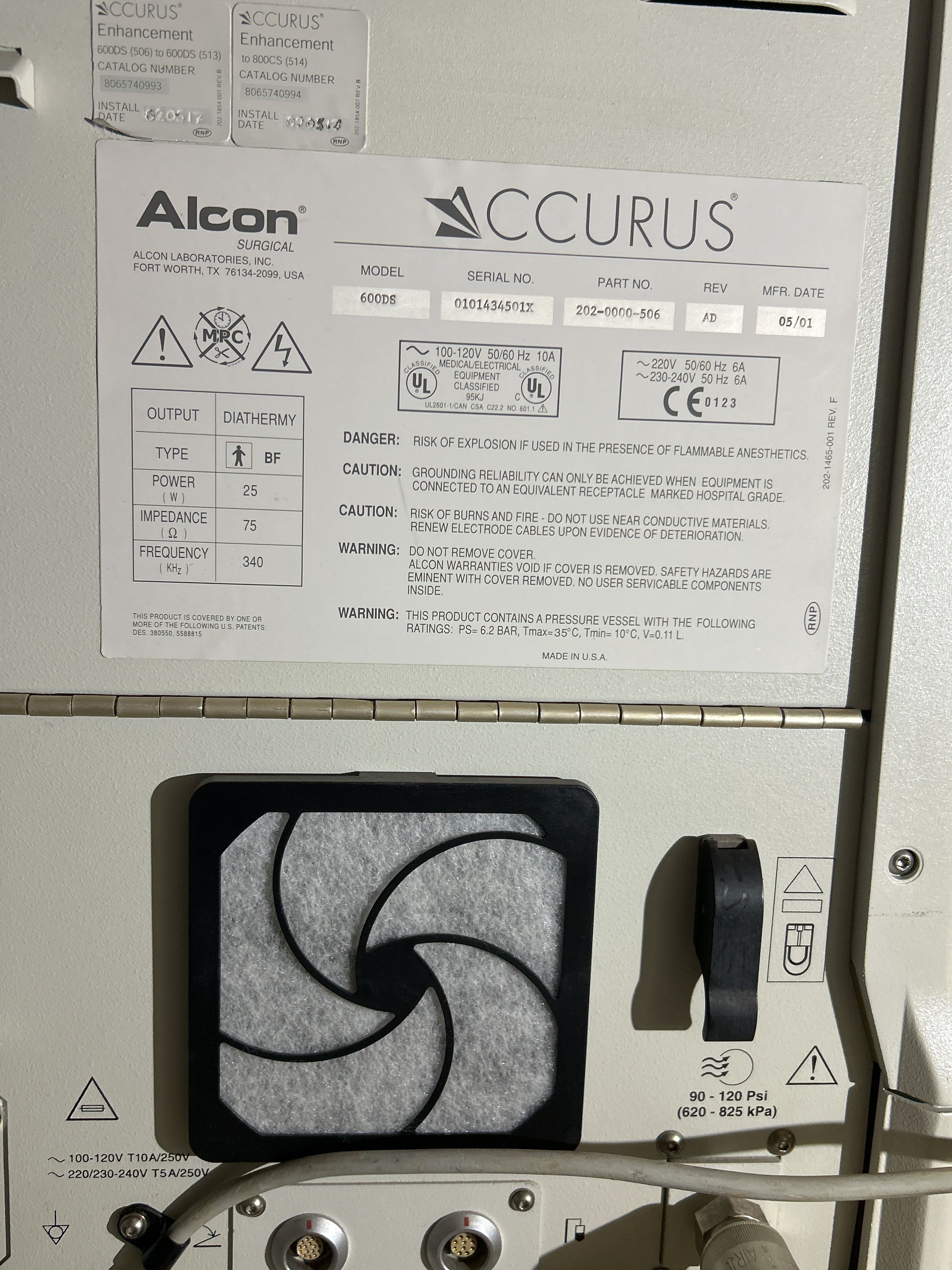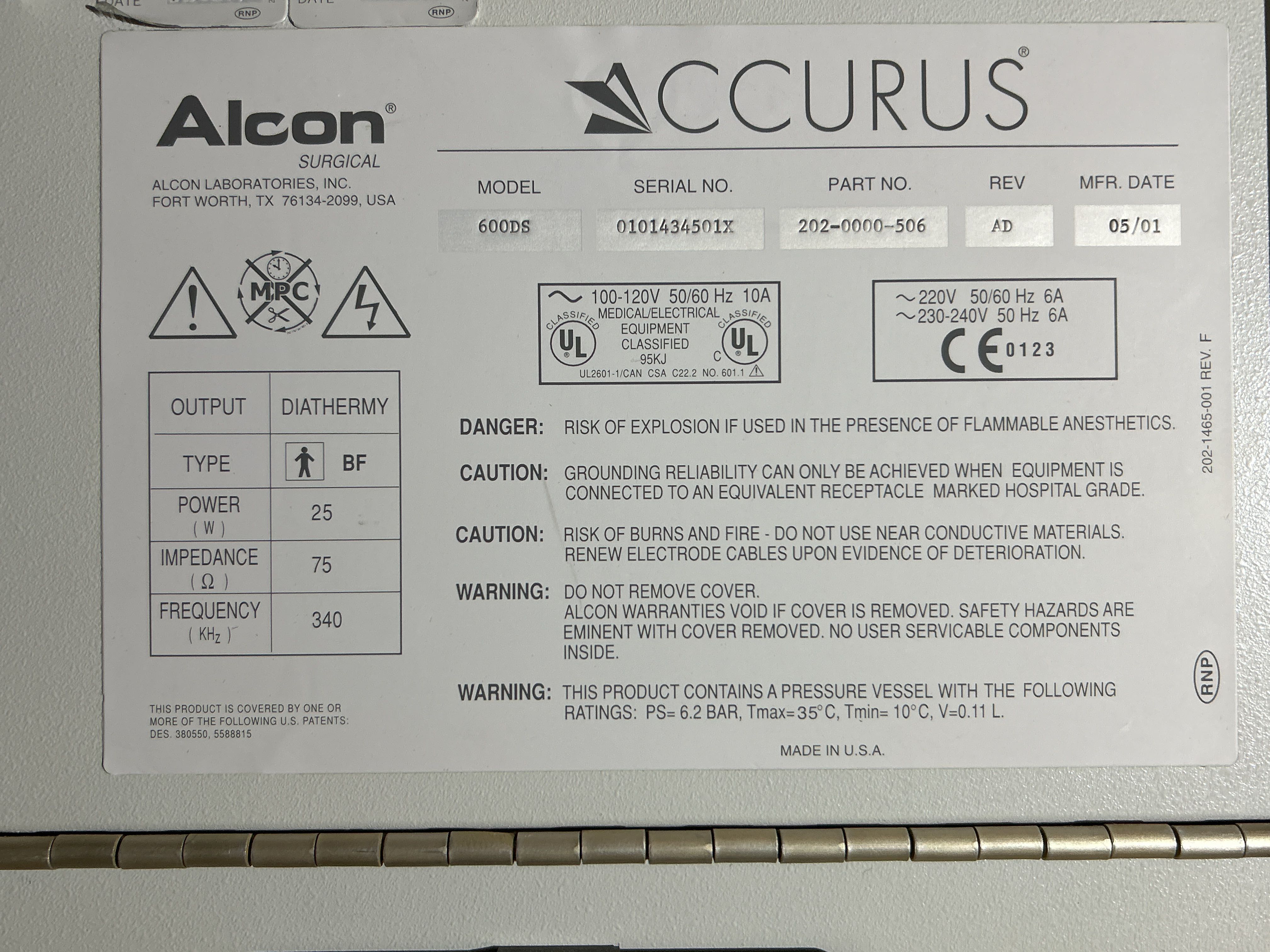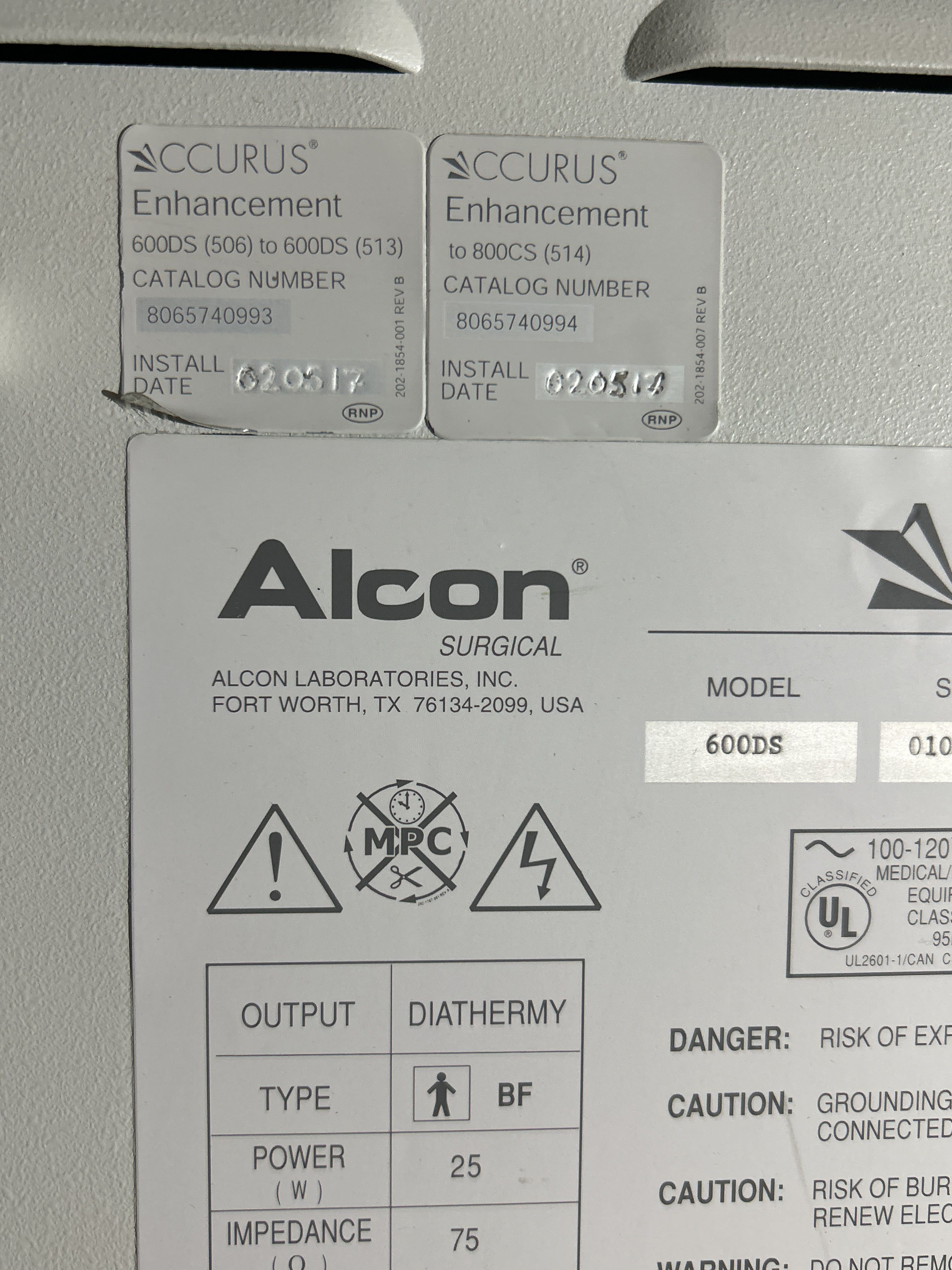 Specifikationer – Alcon Accurus 600DS