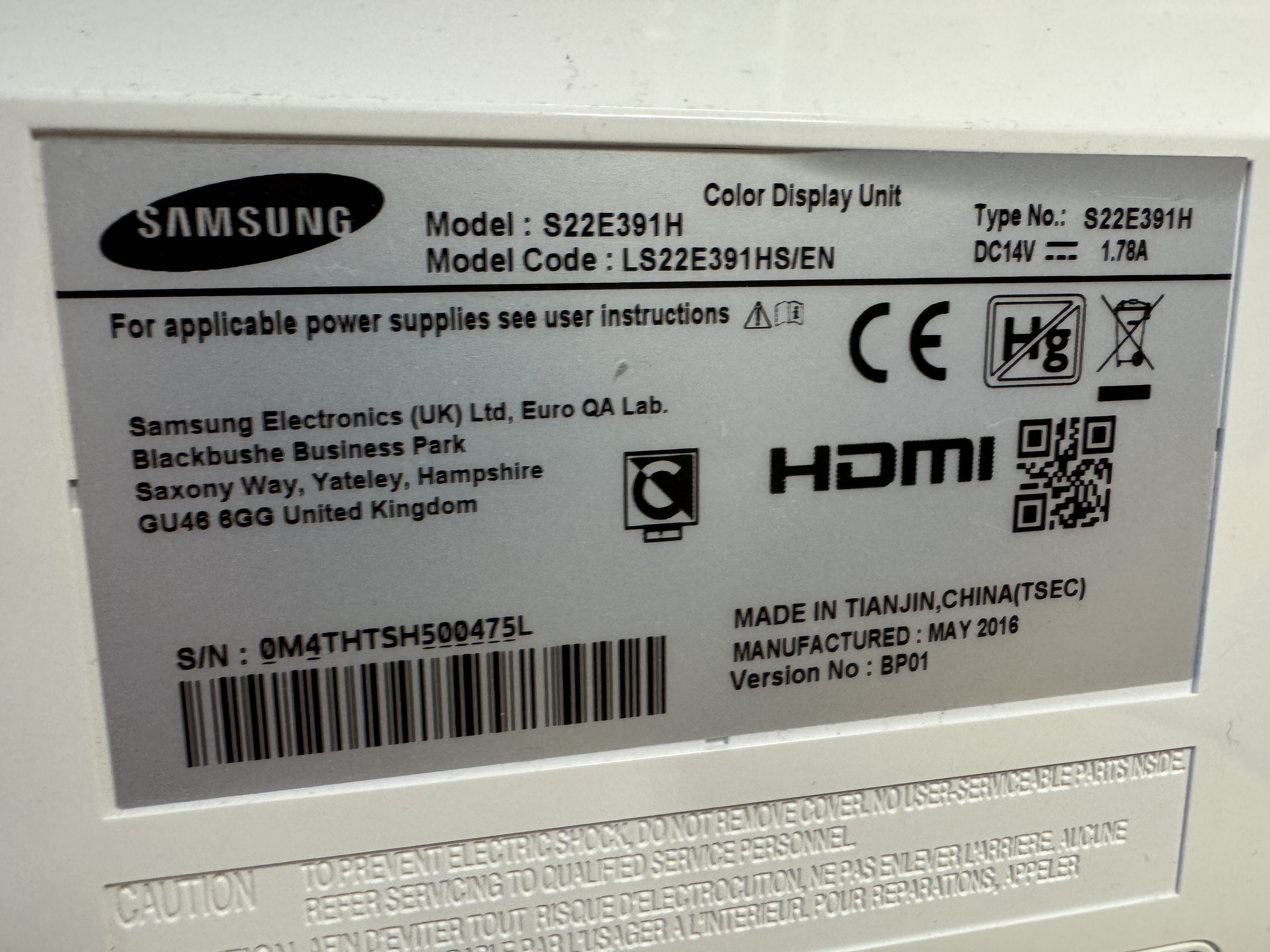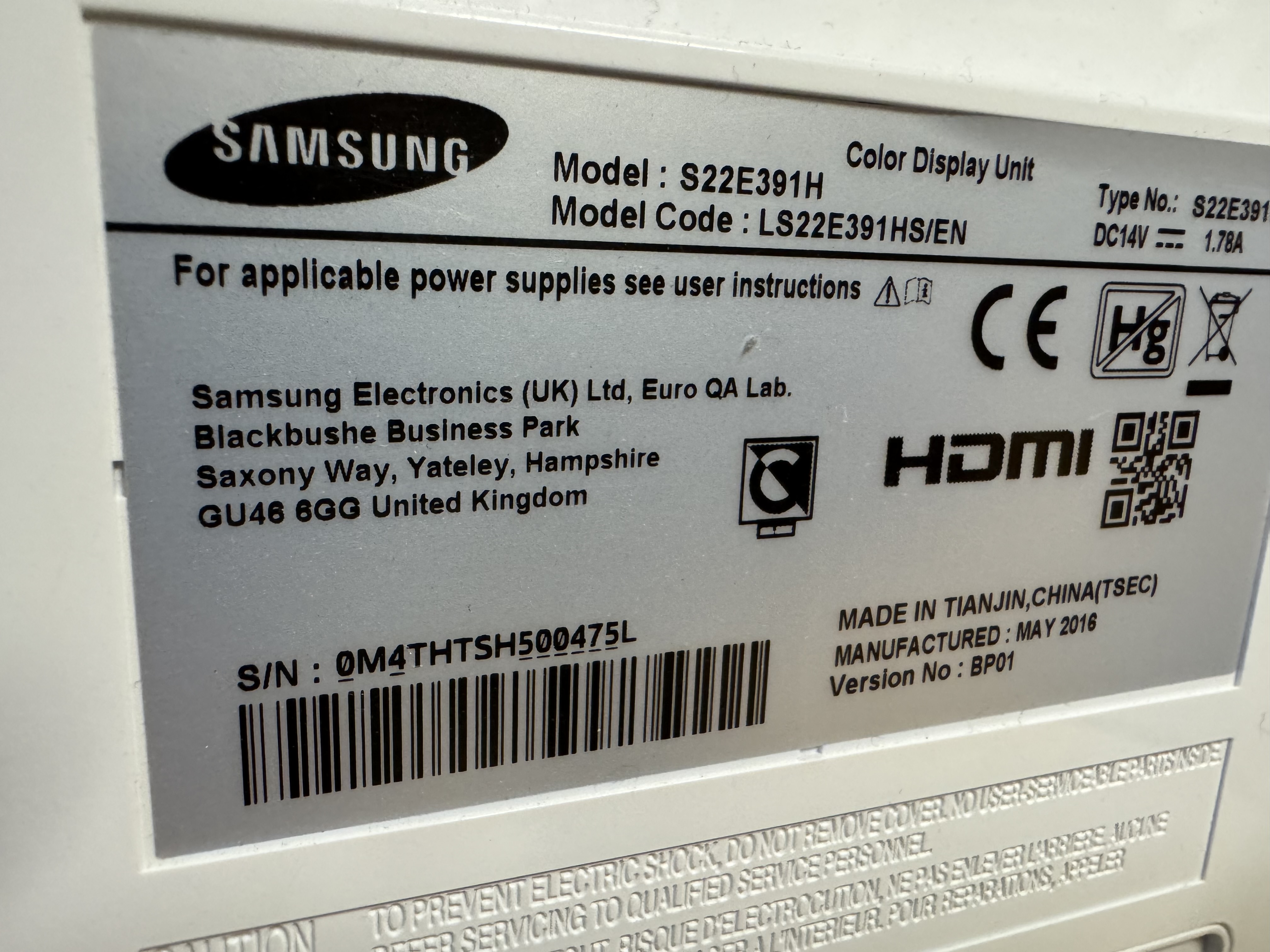 OBS: Samsung-skärmen saknar strömkabel.