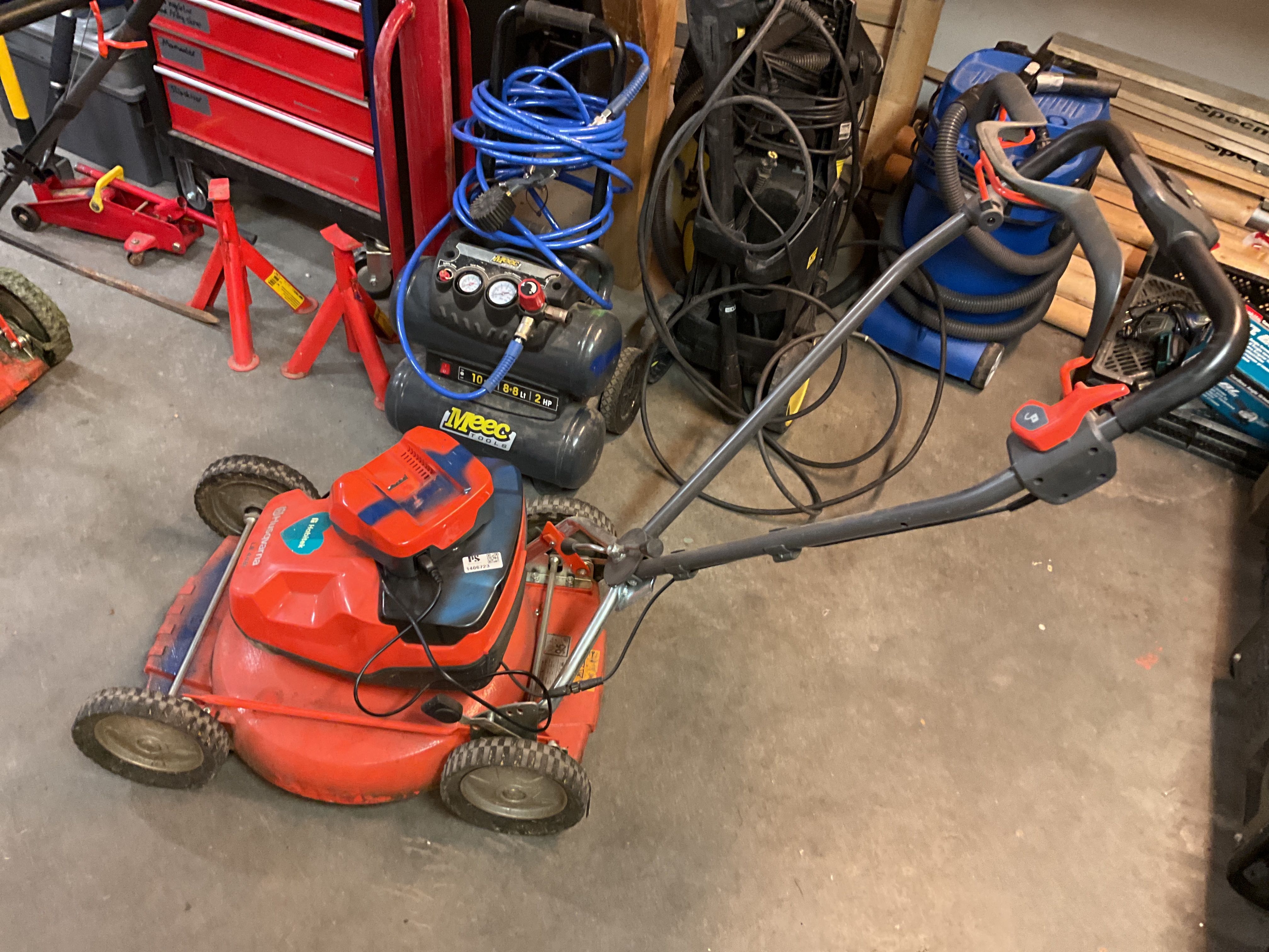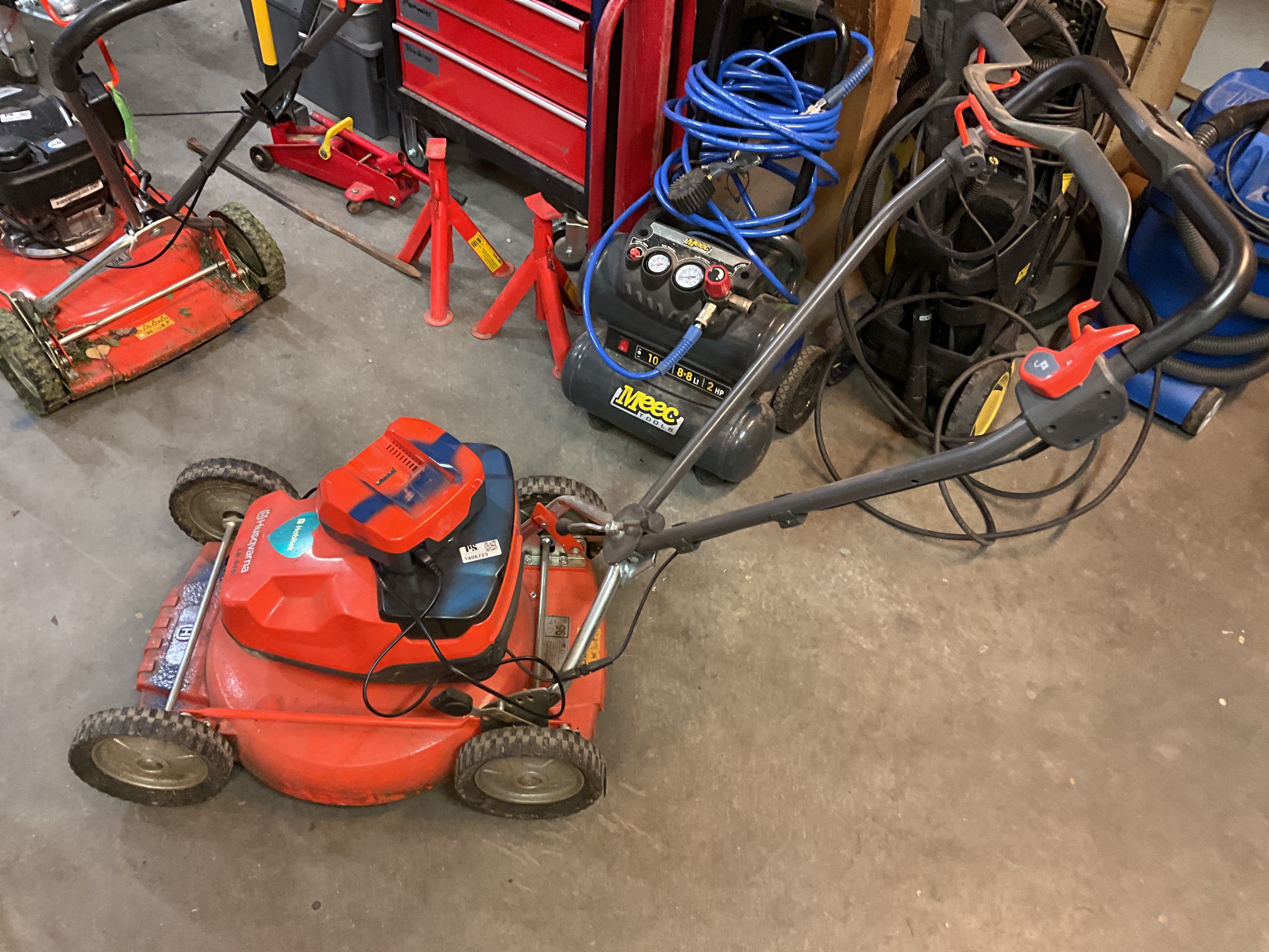 Auktionen innehåller: Mängder med diverse trädgårdsmaskiner, verktyg, gräsklippare, slangvindor m.m