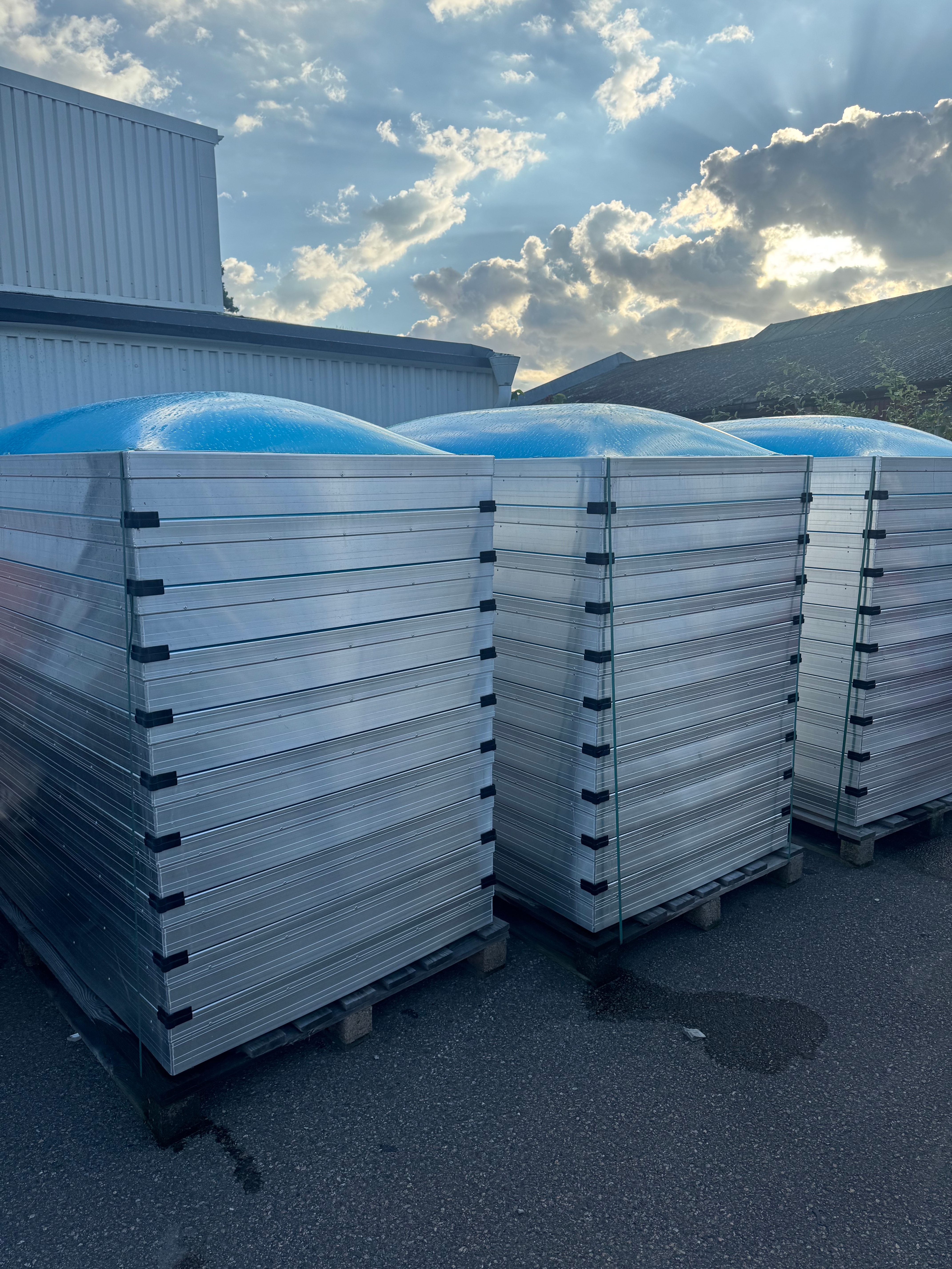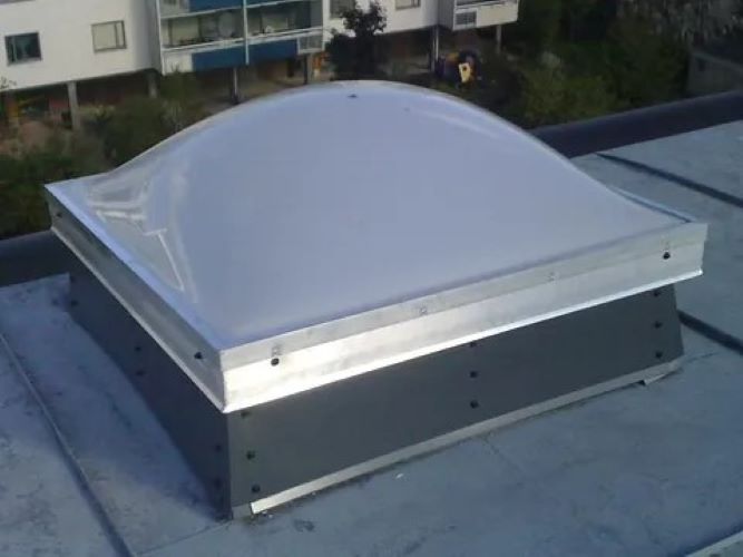 Modern takljuskupol i acryl med en svetsad aluminiumram. Kupolen levereras välvd.