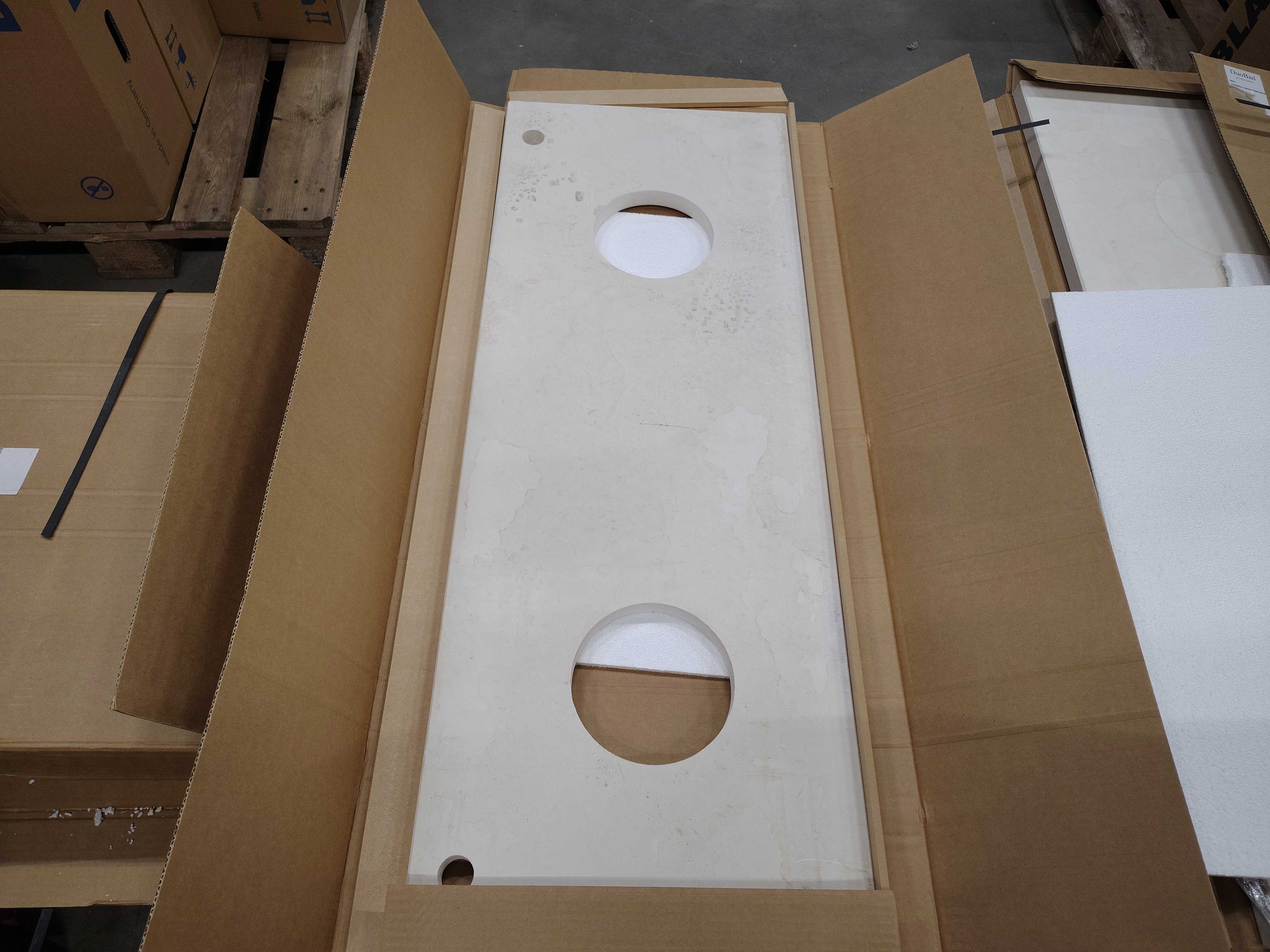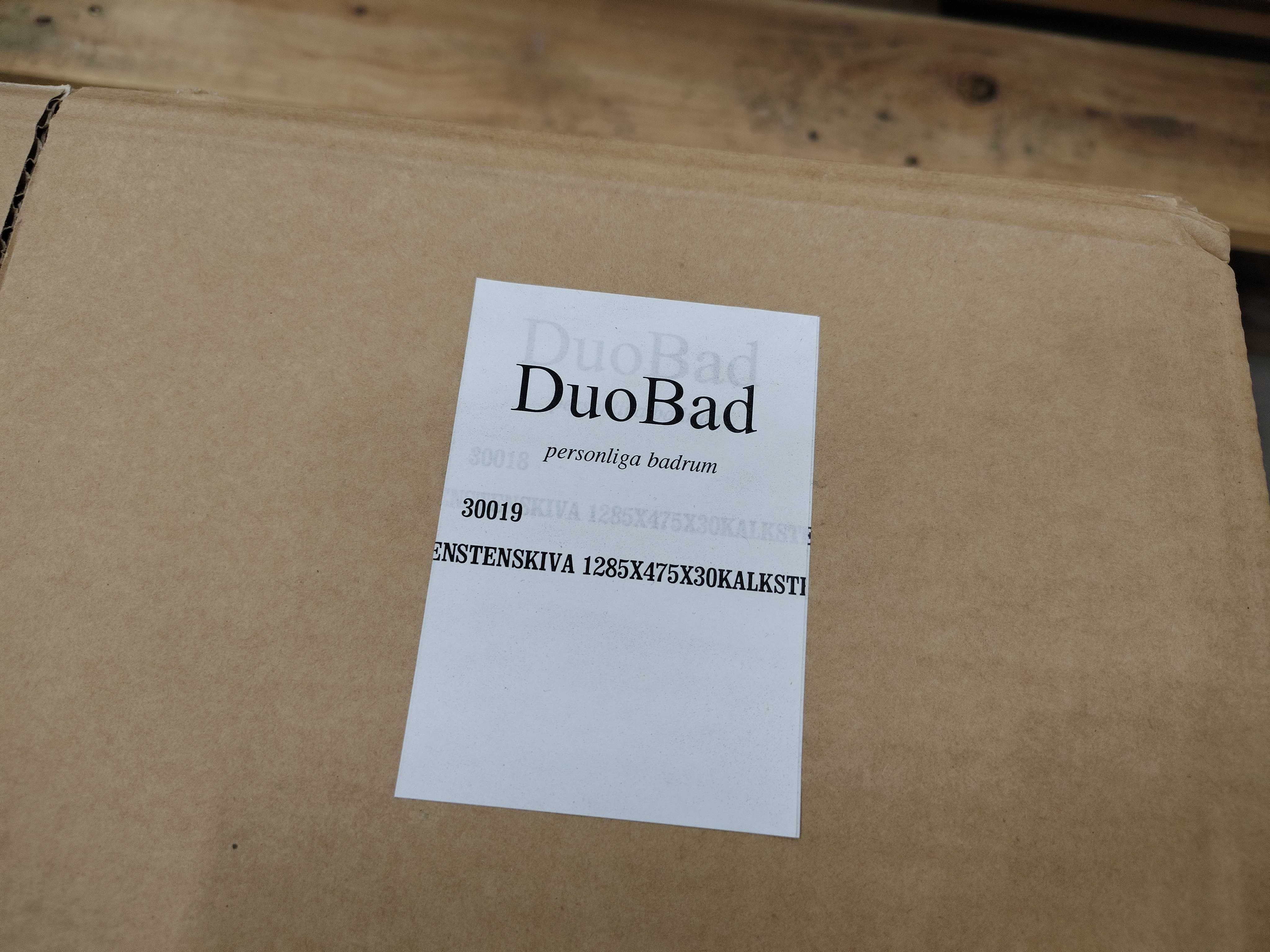 Stenskiva i kalksten från DuoBad. Passar utmärkt som bänkskiva i badrumsmiljö. Förberedd med hål för tvättställ och blandare.