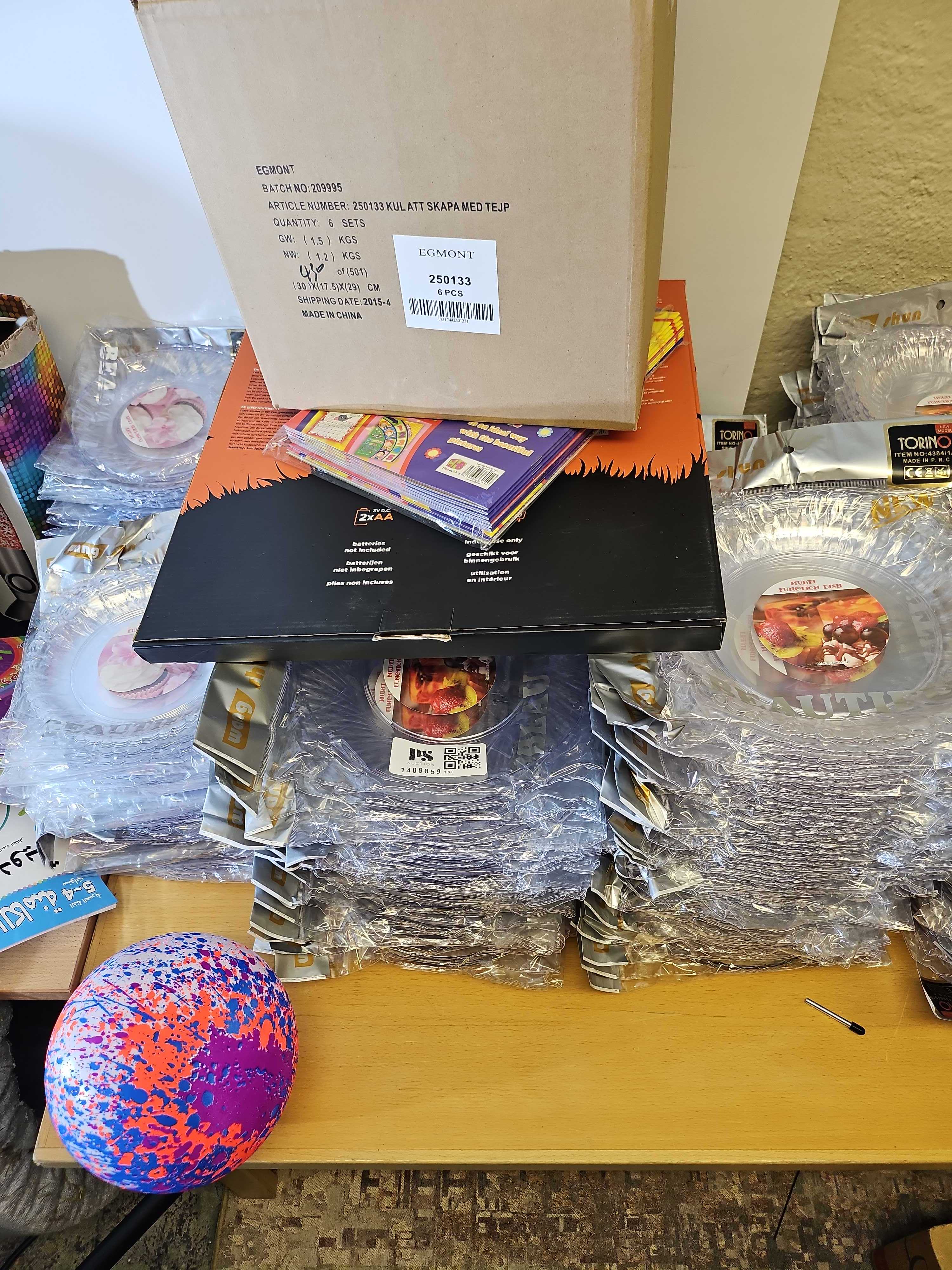 Här finns bland annat plasttallrikar, engångsartiklar, gardiner, kepsar, lampor, leksaker och vitvarudelar