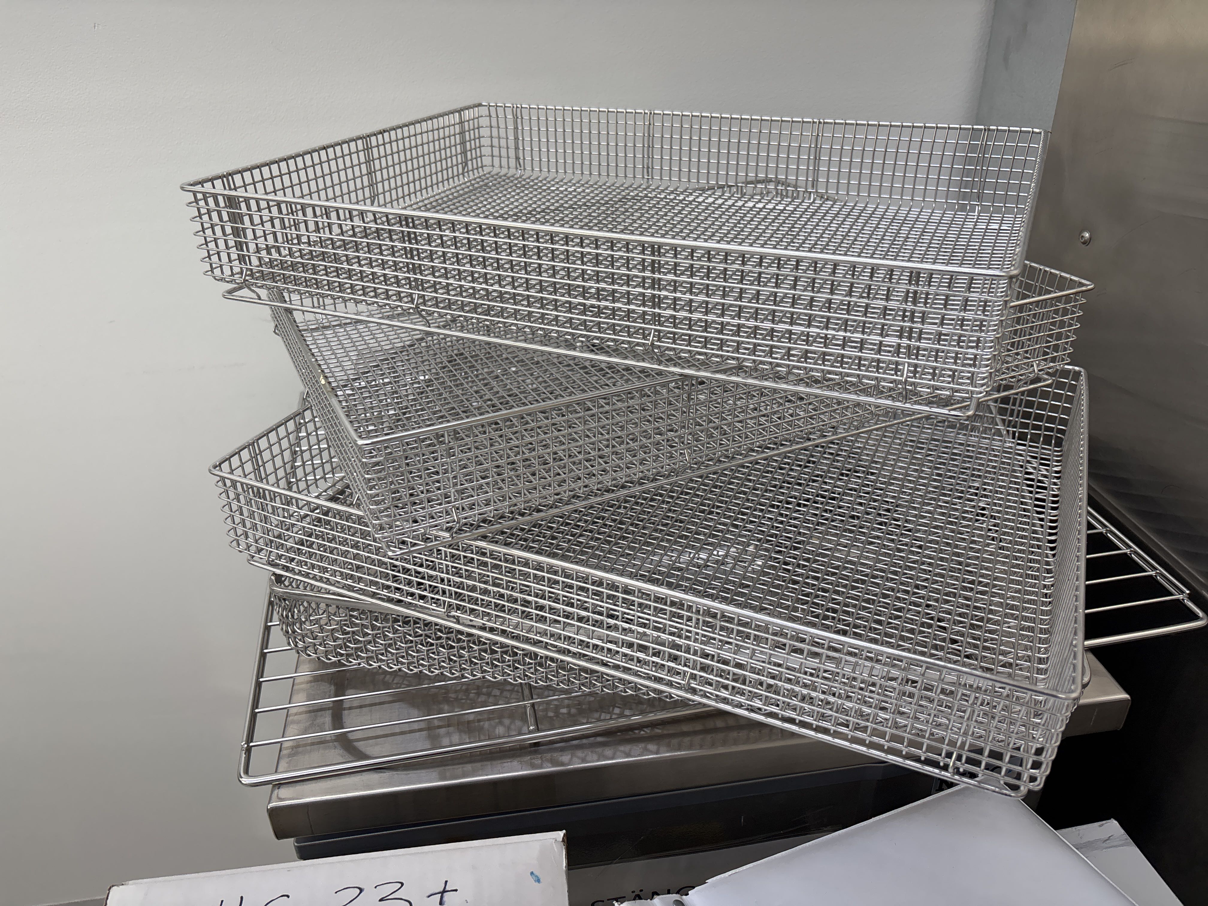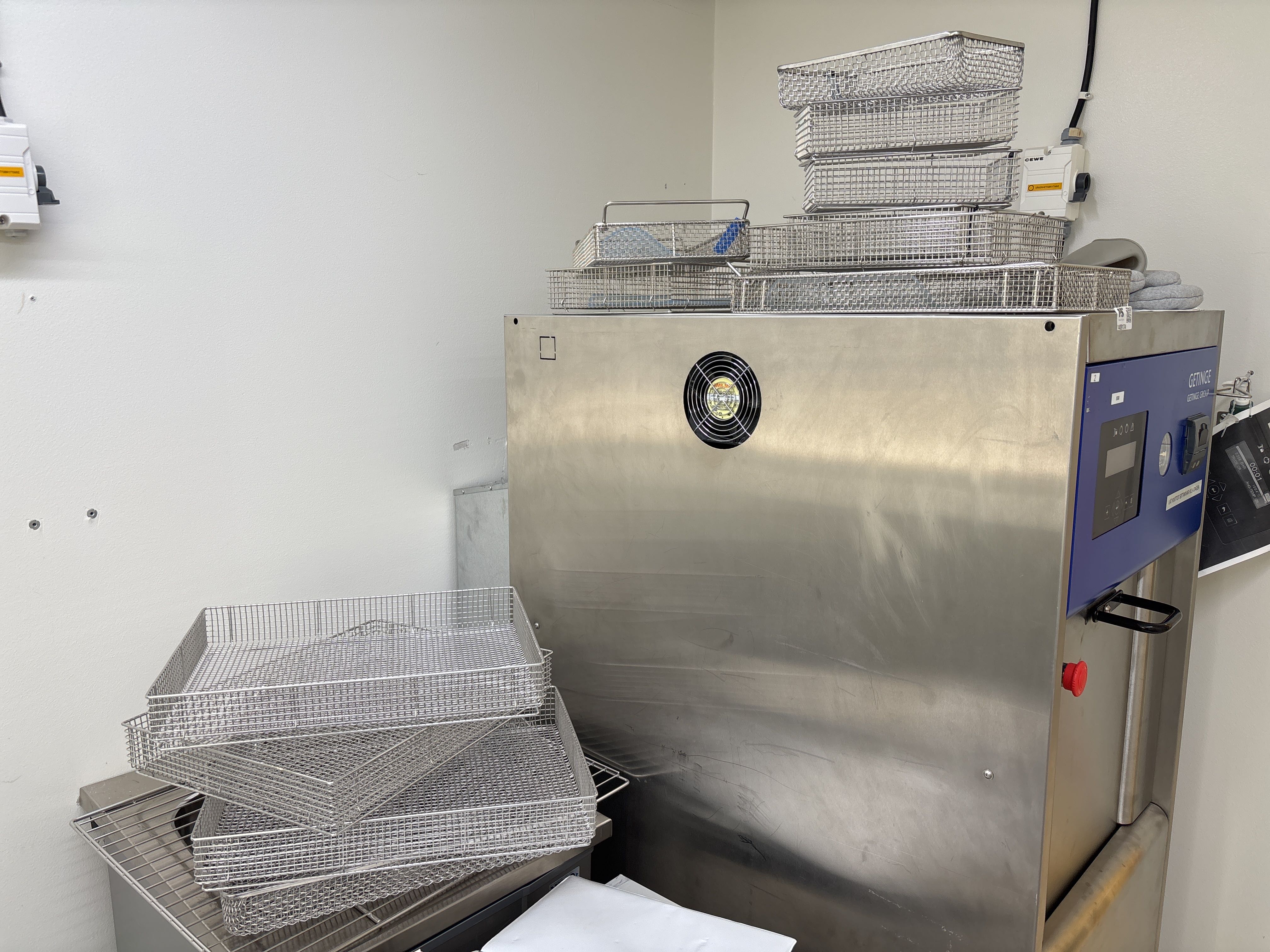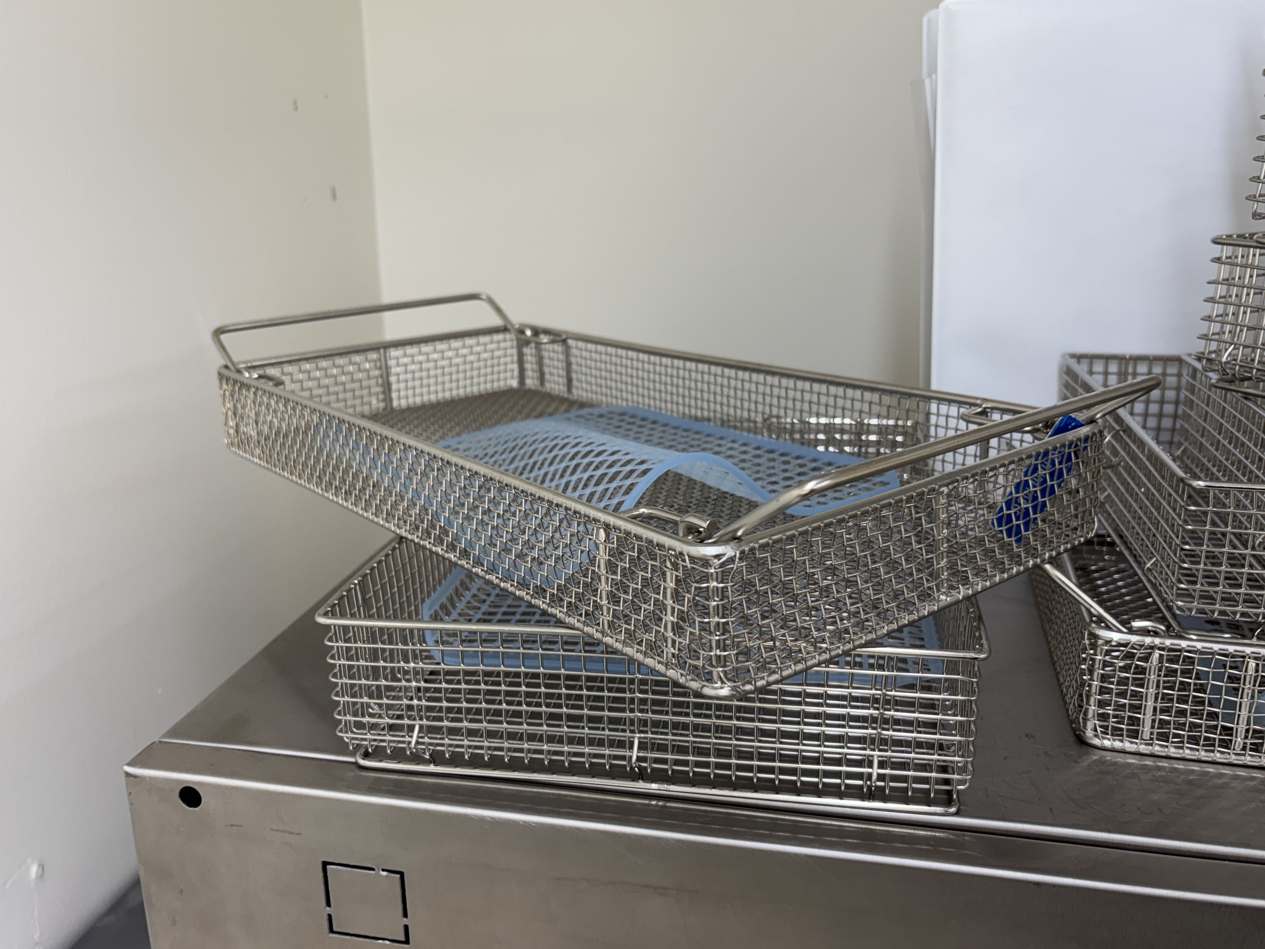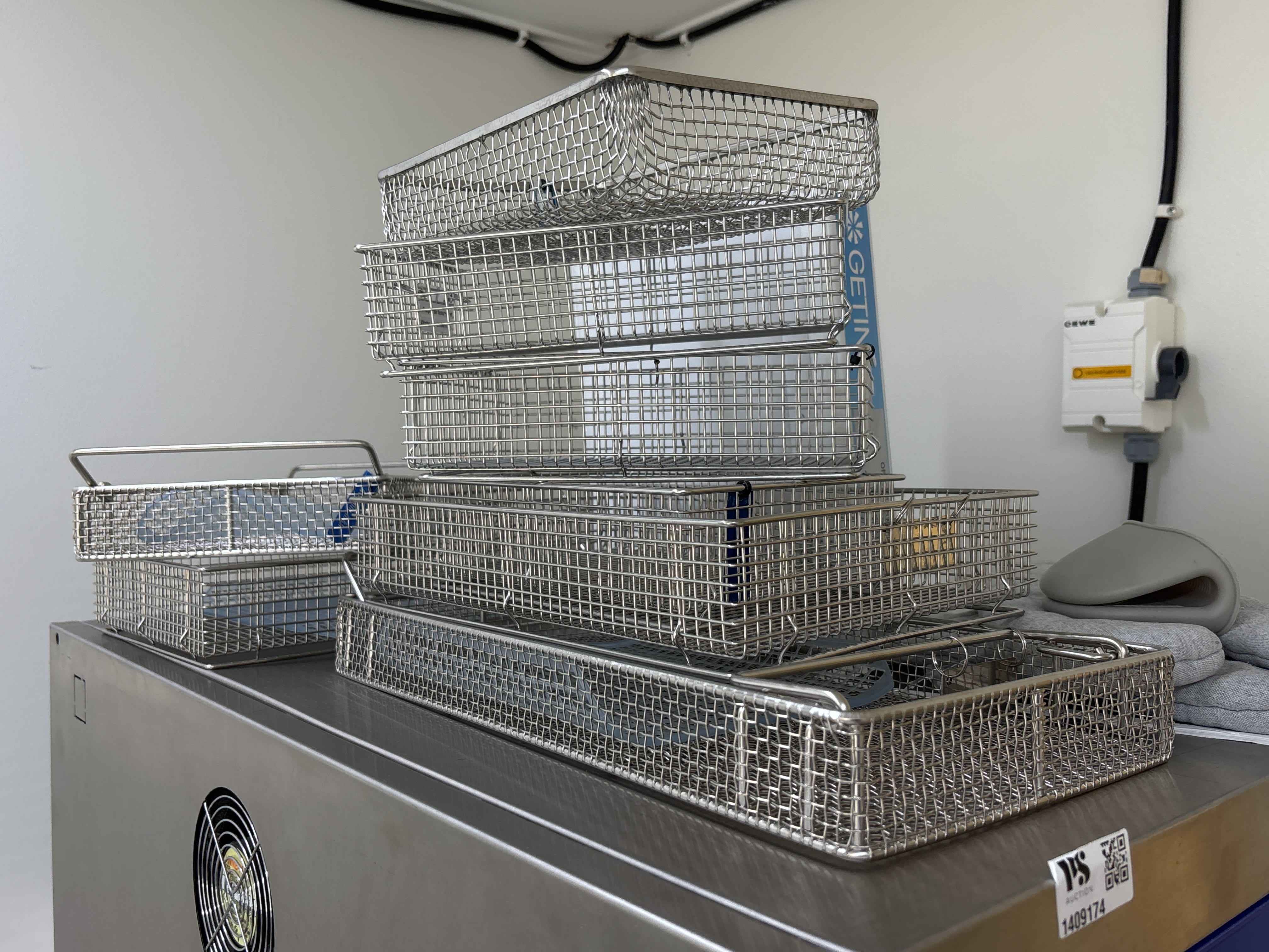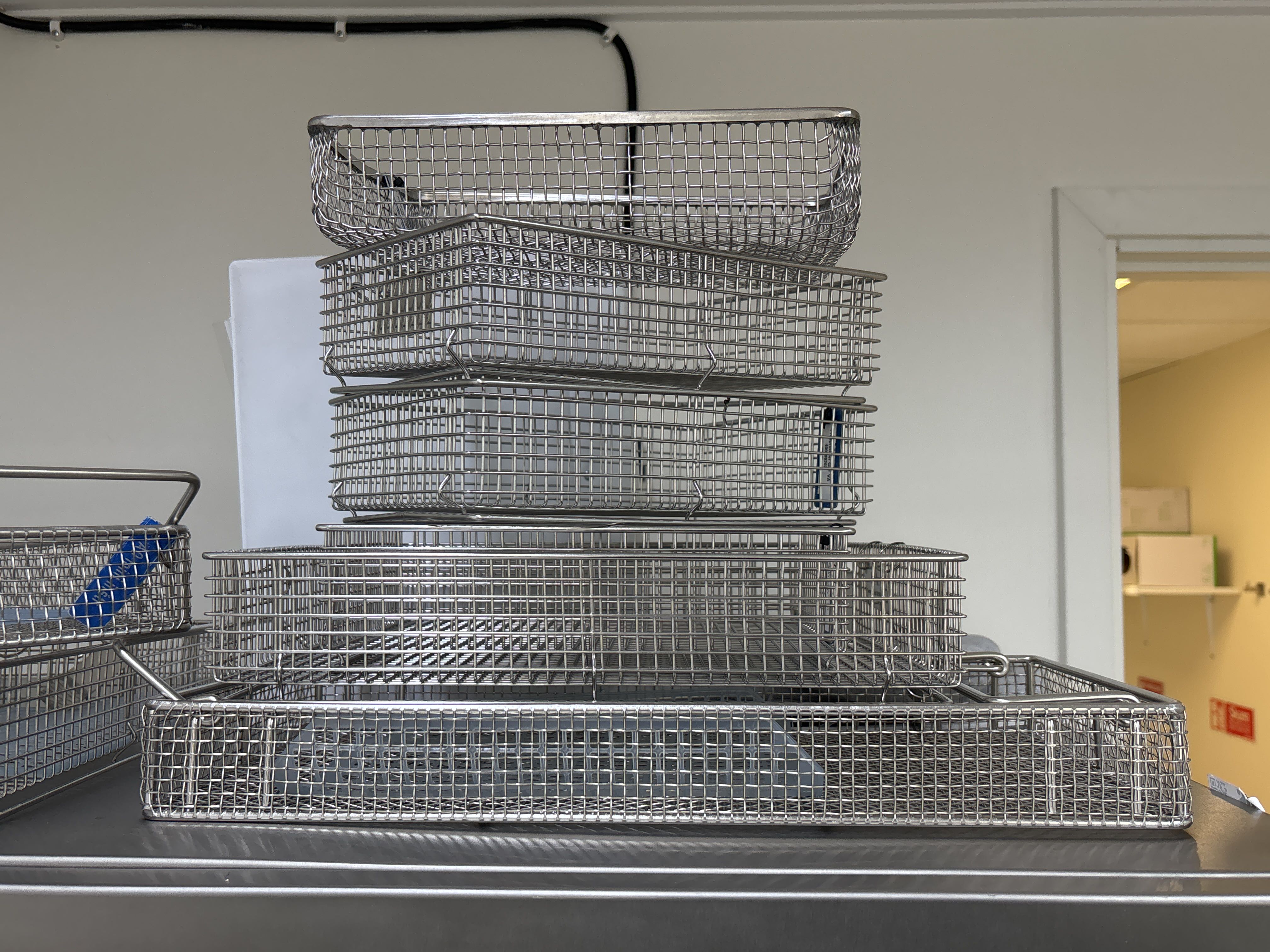 - Diverse metalltrådkorgar och dokumentation för autoklaven ingår.