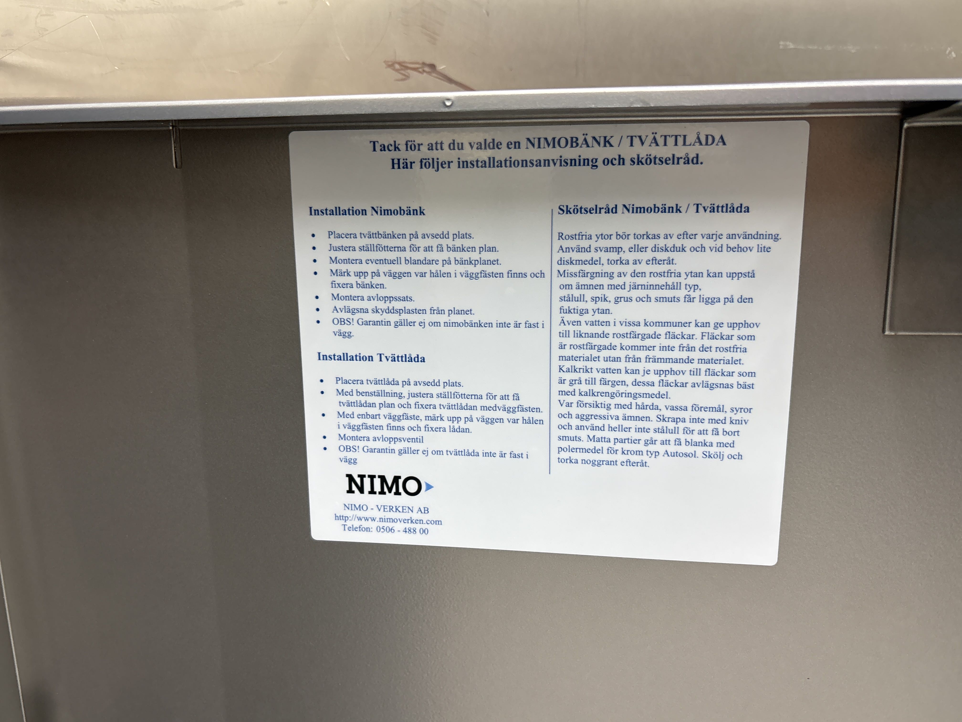 - Intilliggande tvättbänk från Nimo ingår.