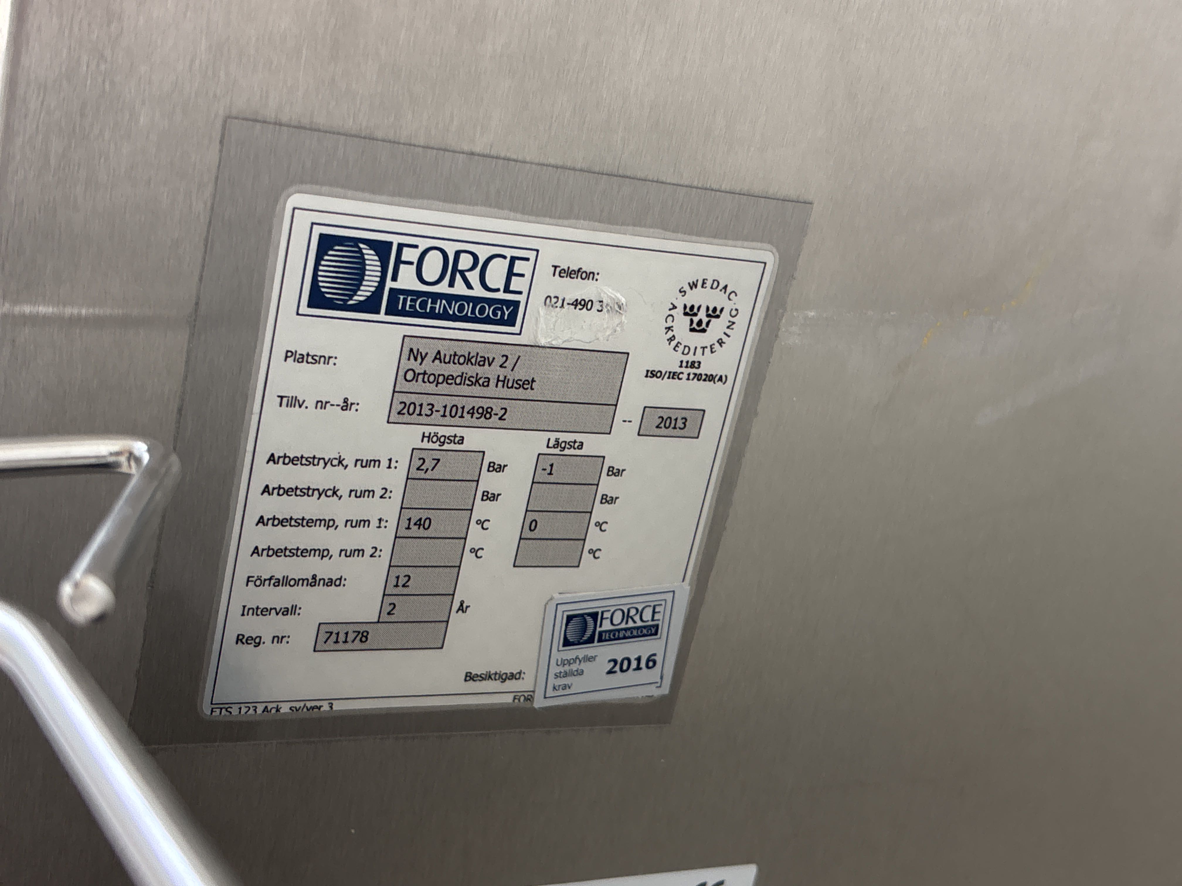 - Serienummer tryckkärl: 101948-2