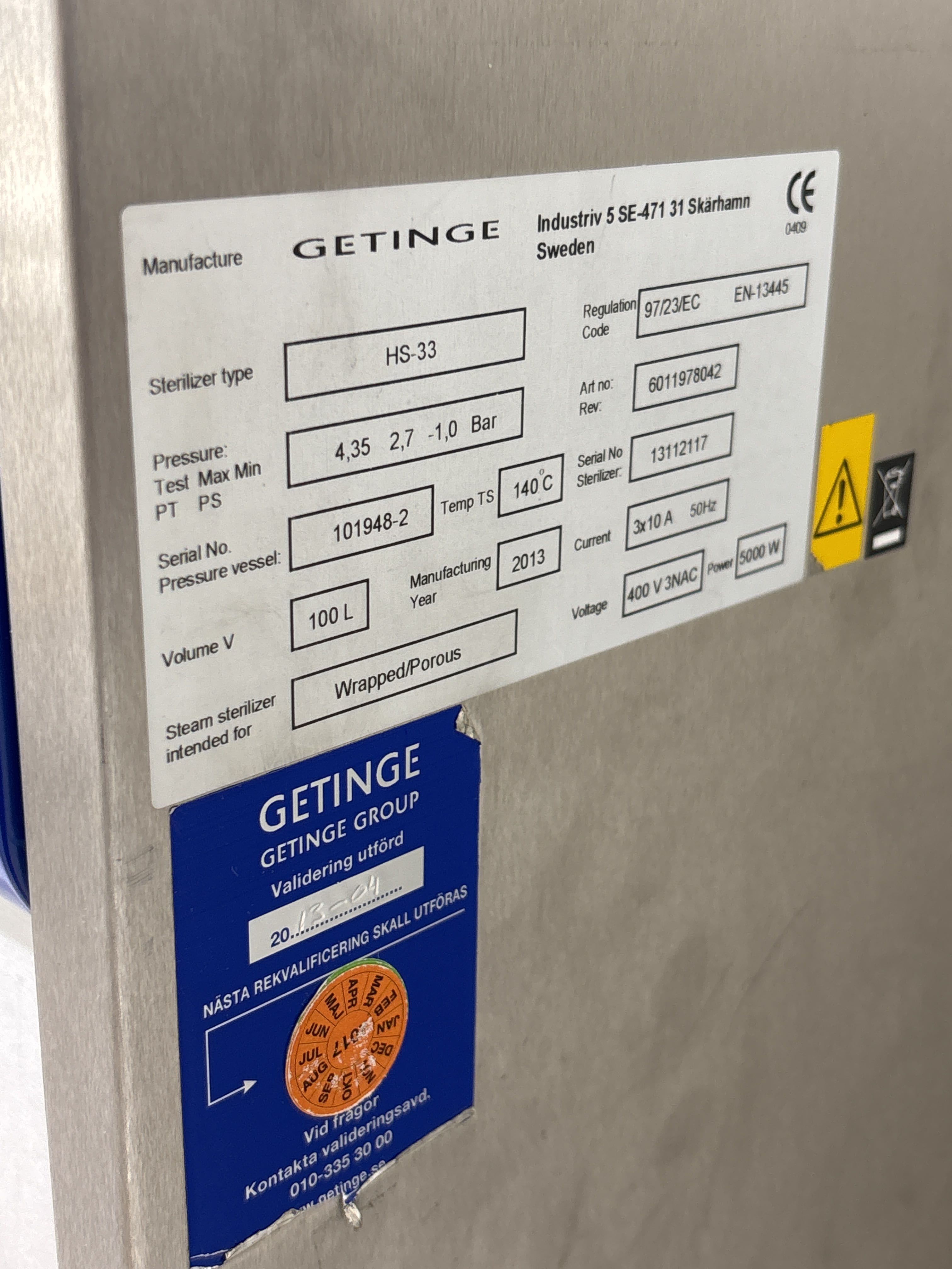 - Serienummer sterilisator: 13112117