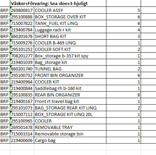 Detta parti omfattar diverse förvaringsprodukter och tillbehör - primärt ifrån varumärkena: Can-am, LinQ, Seadoo m.fl.