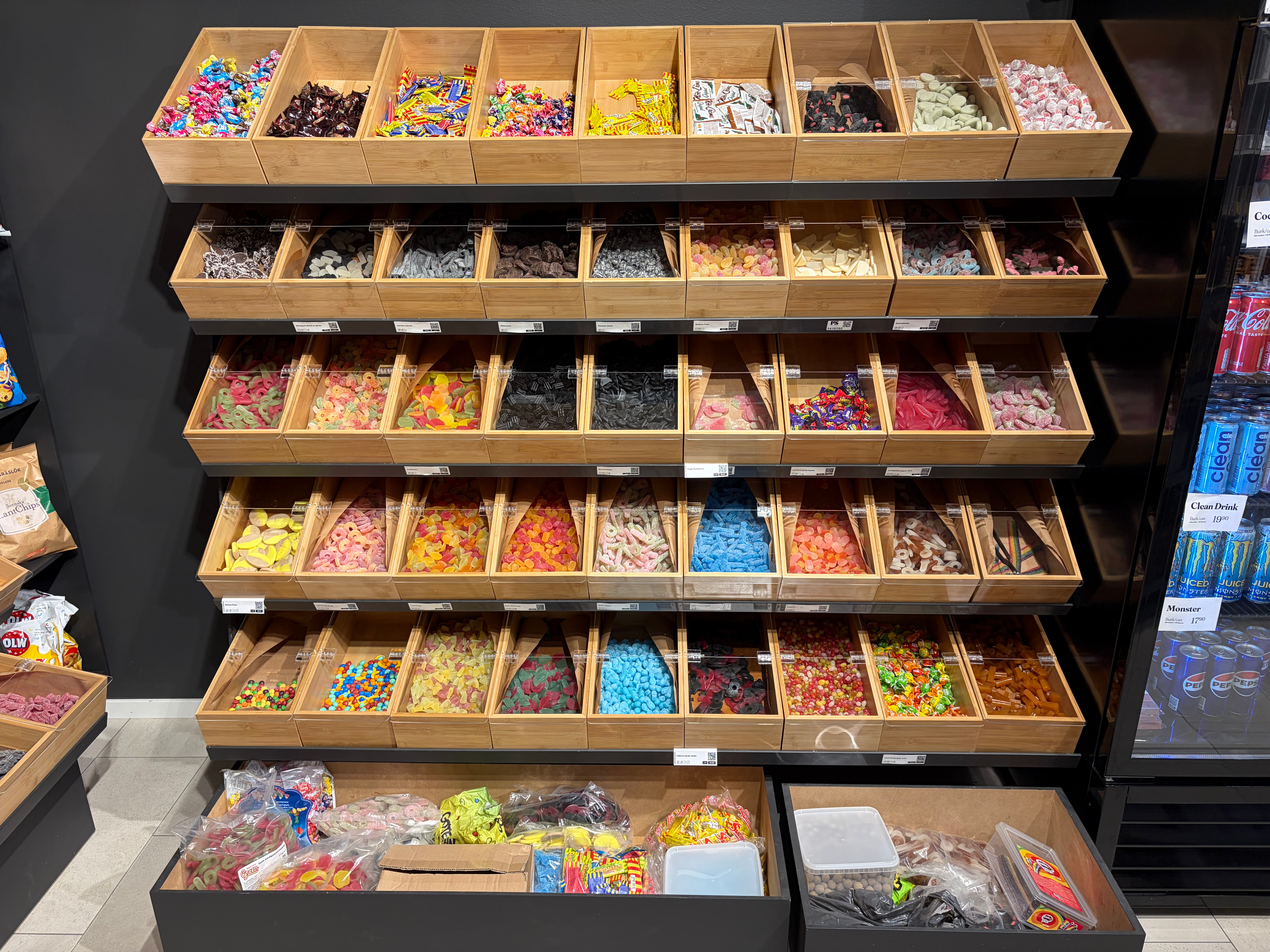 Även godis i lådorna under.