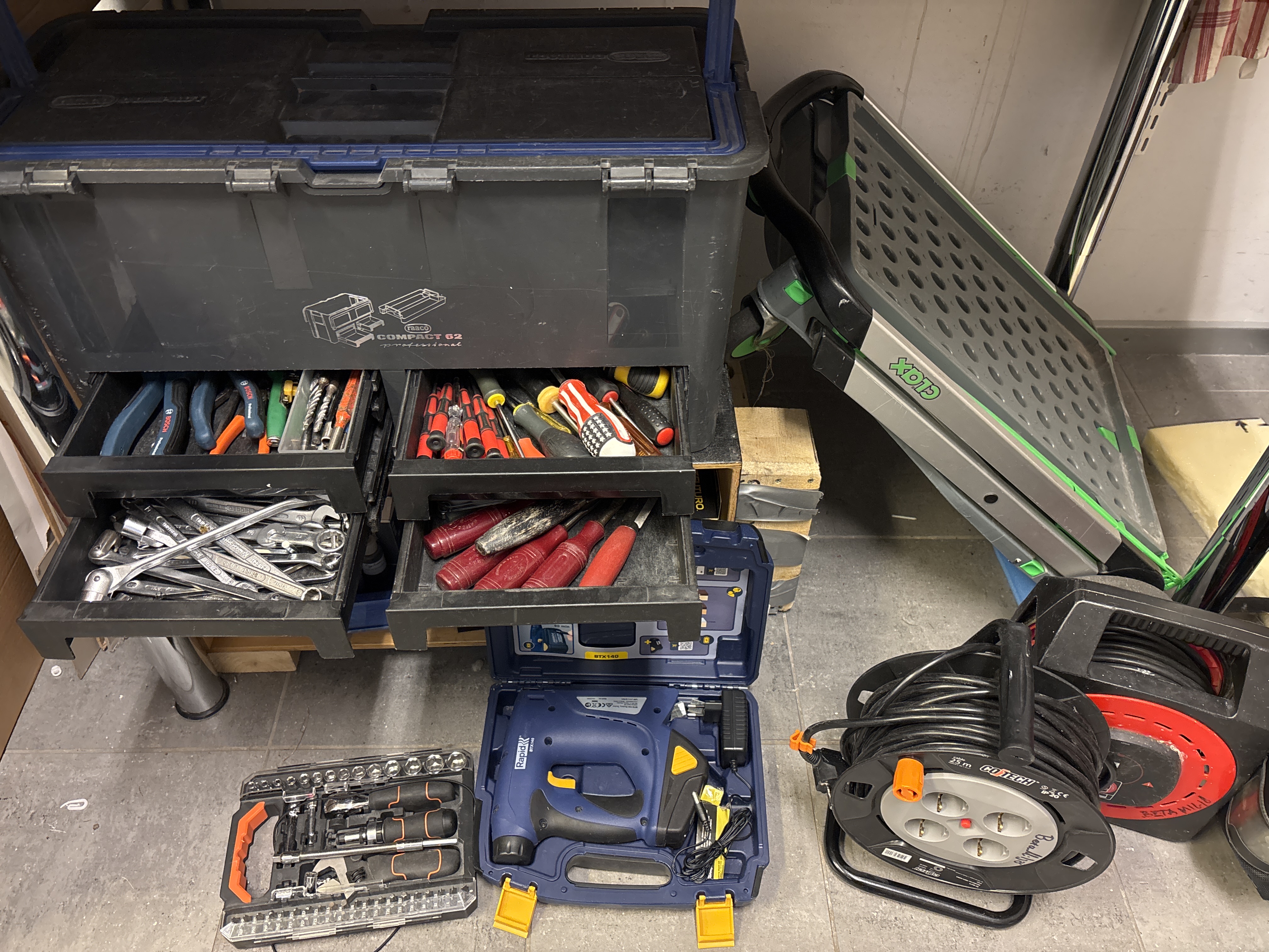Blandade handverktyg och beslag