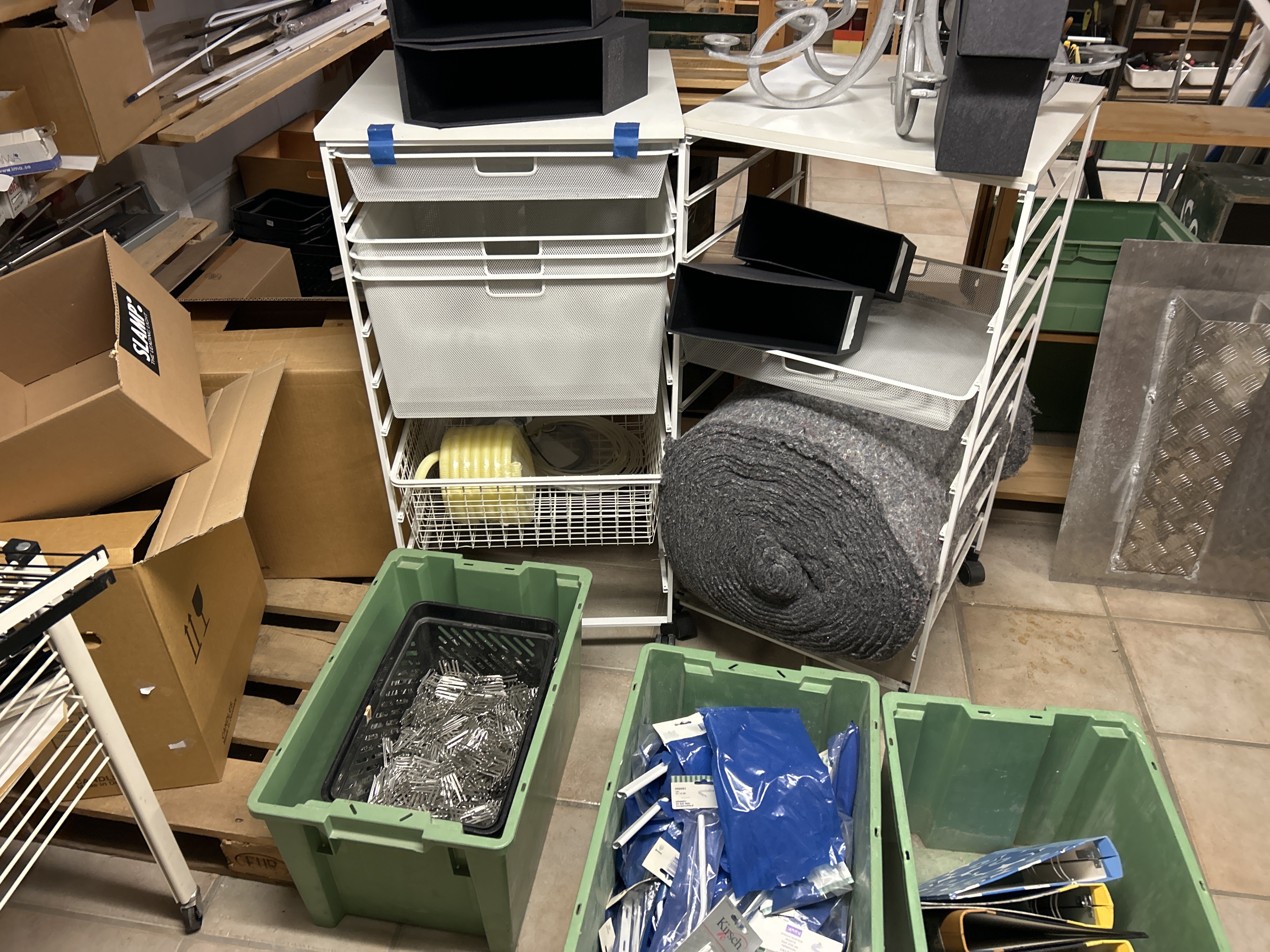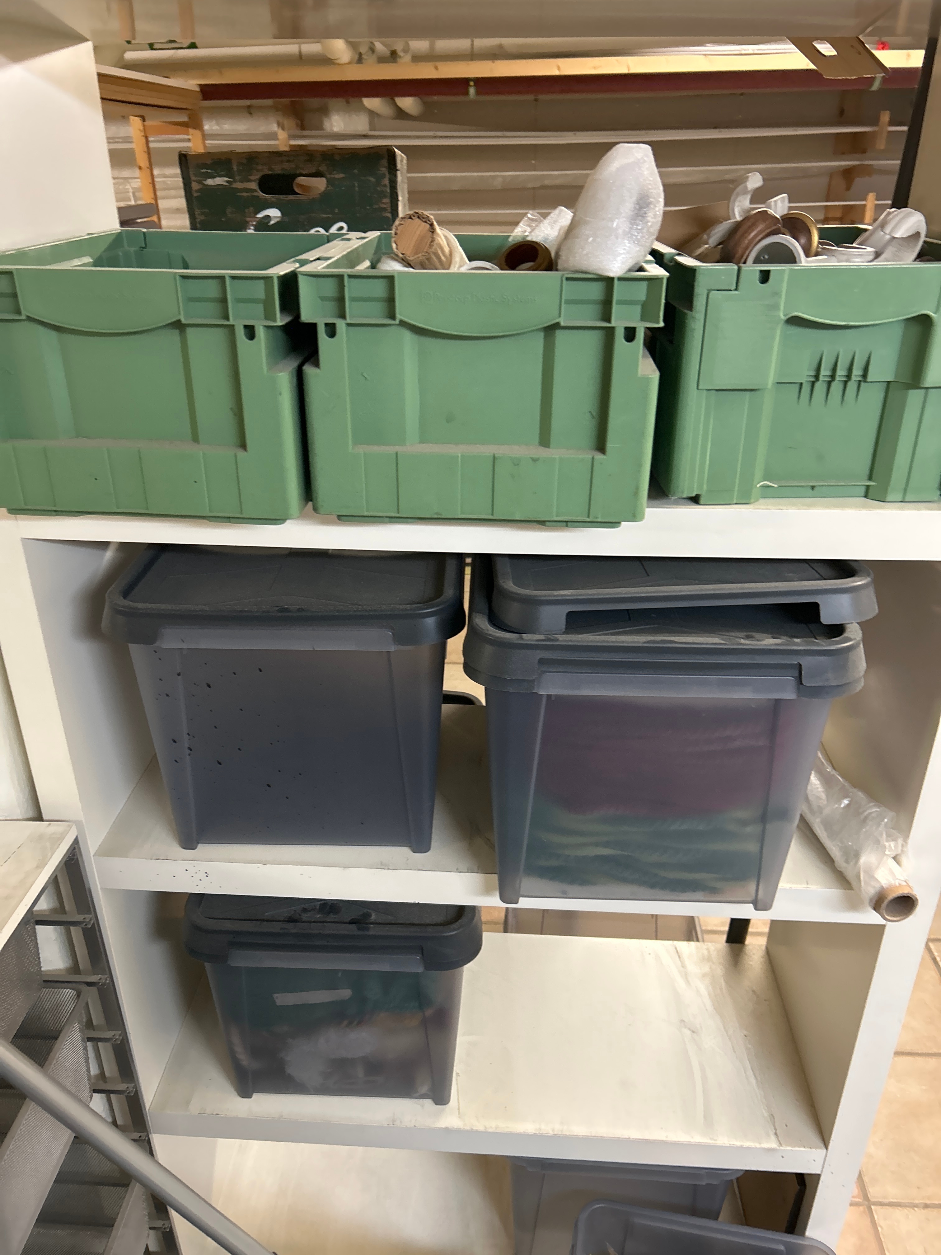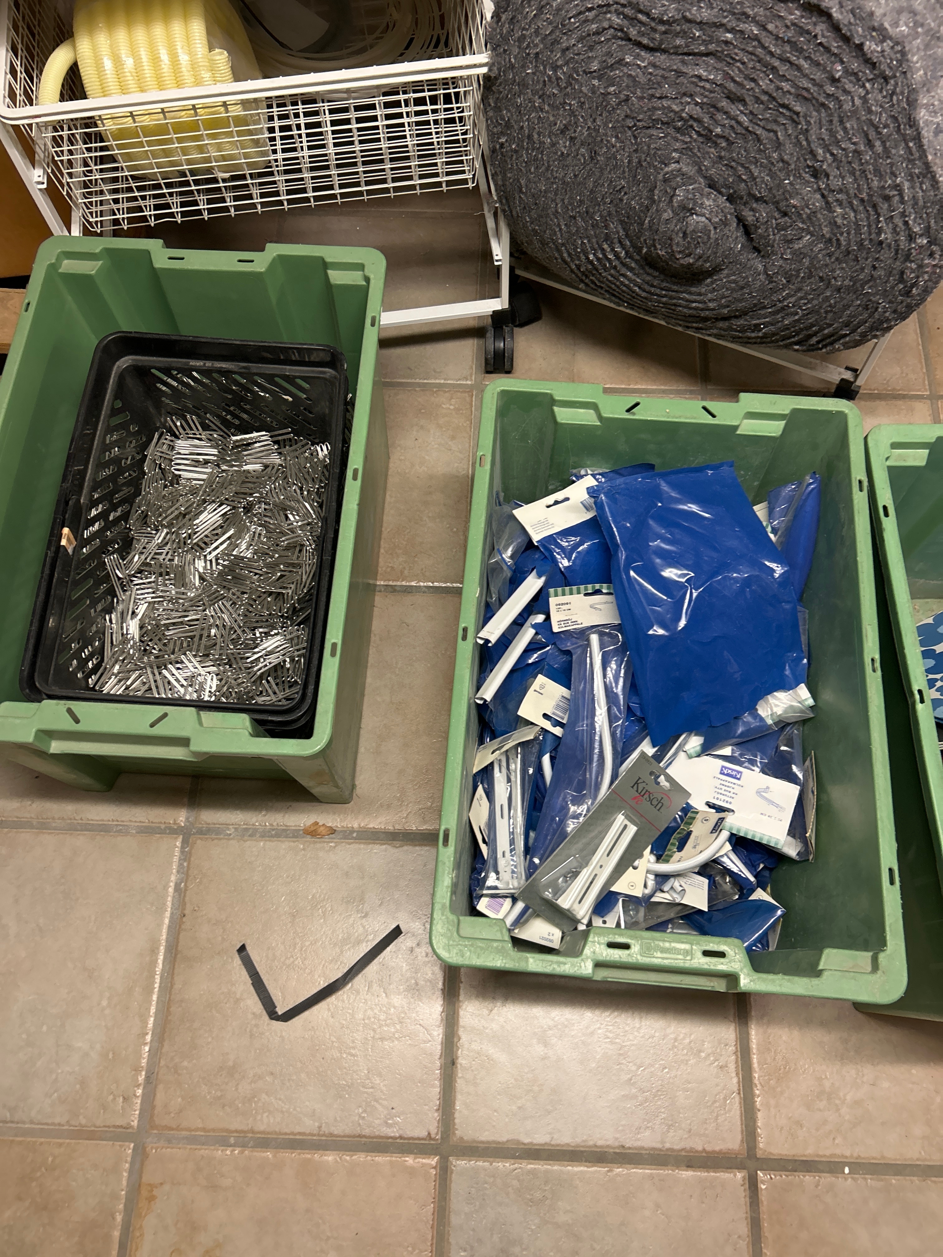 • Gardinskenor och gardintillbehör i plastbackar