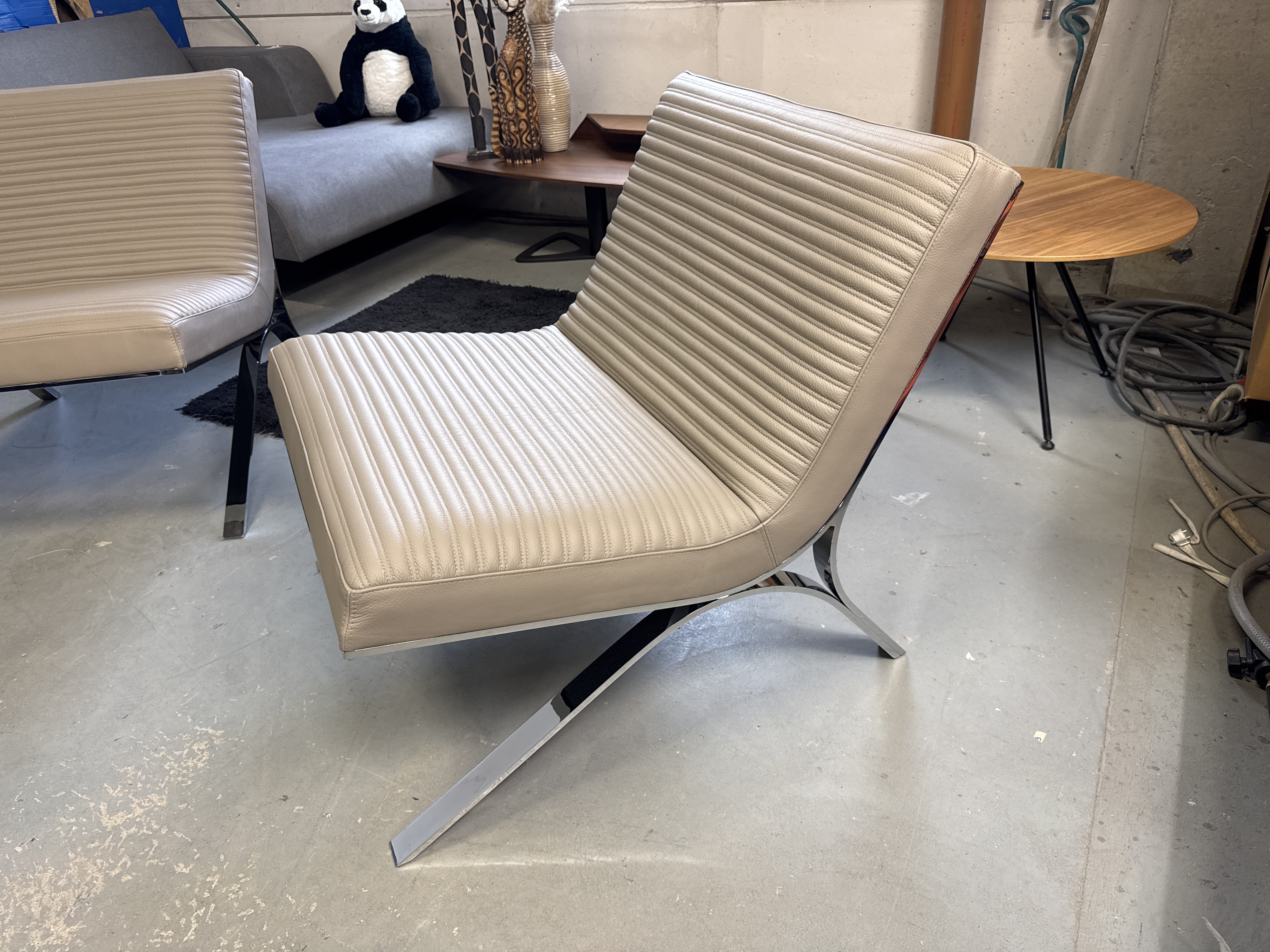 Upptäck skooline fåtölj i beige/krom– en modell i europeiskt läder, formgiven av Kolbrun Leosdottir design. En stilren och bekväm möbel som lyfter vilket rum som helst.