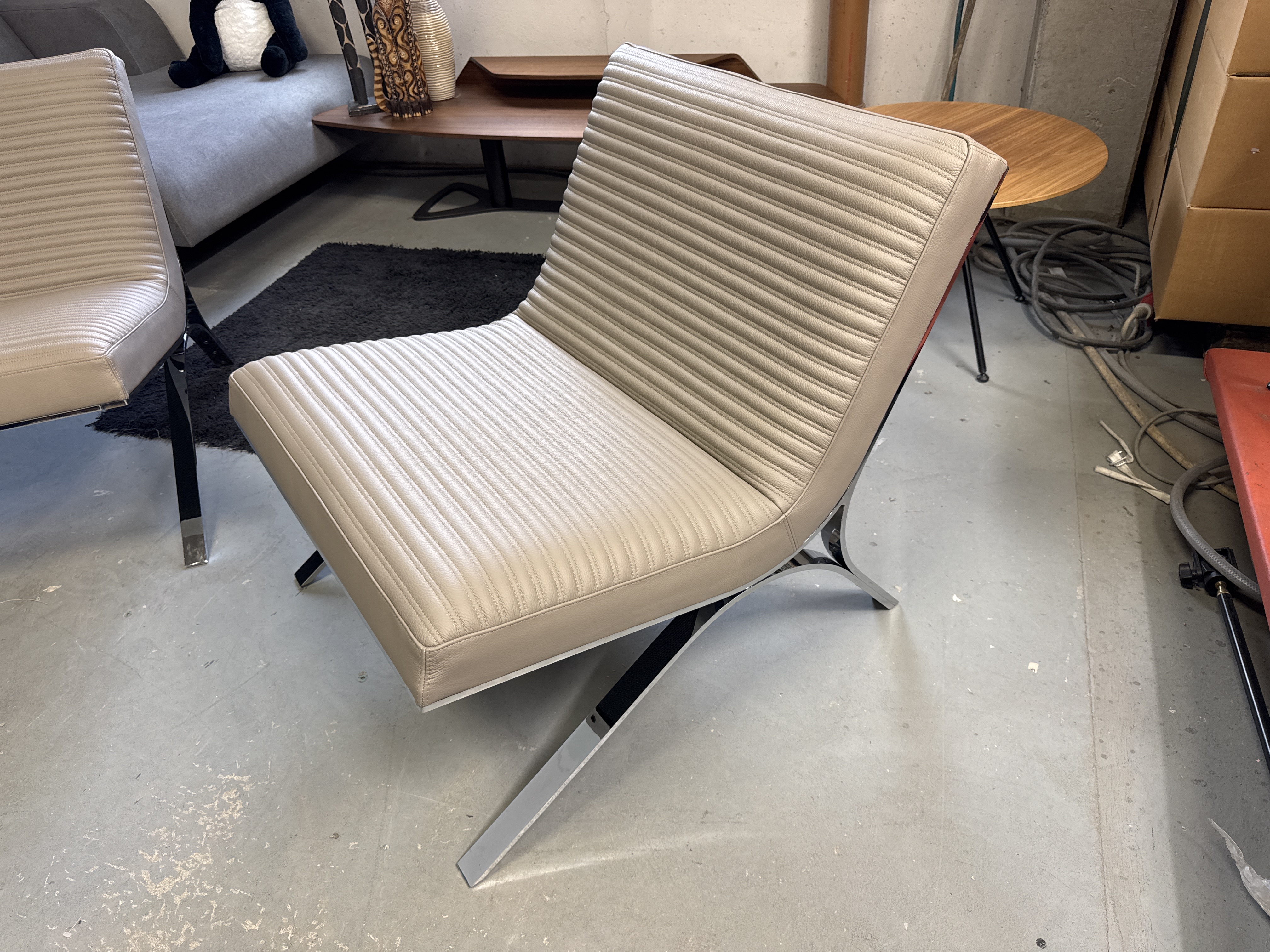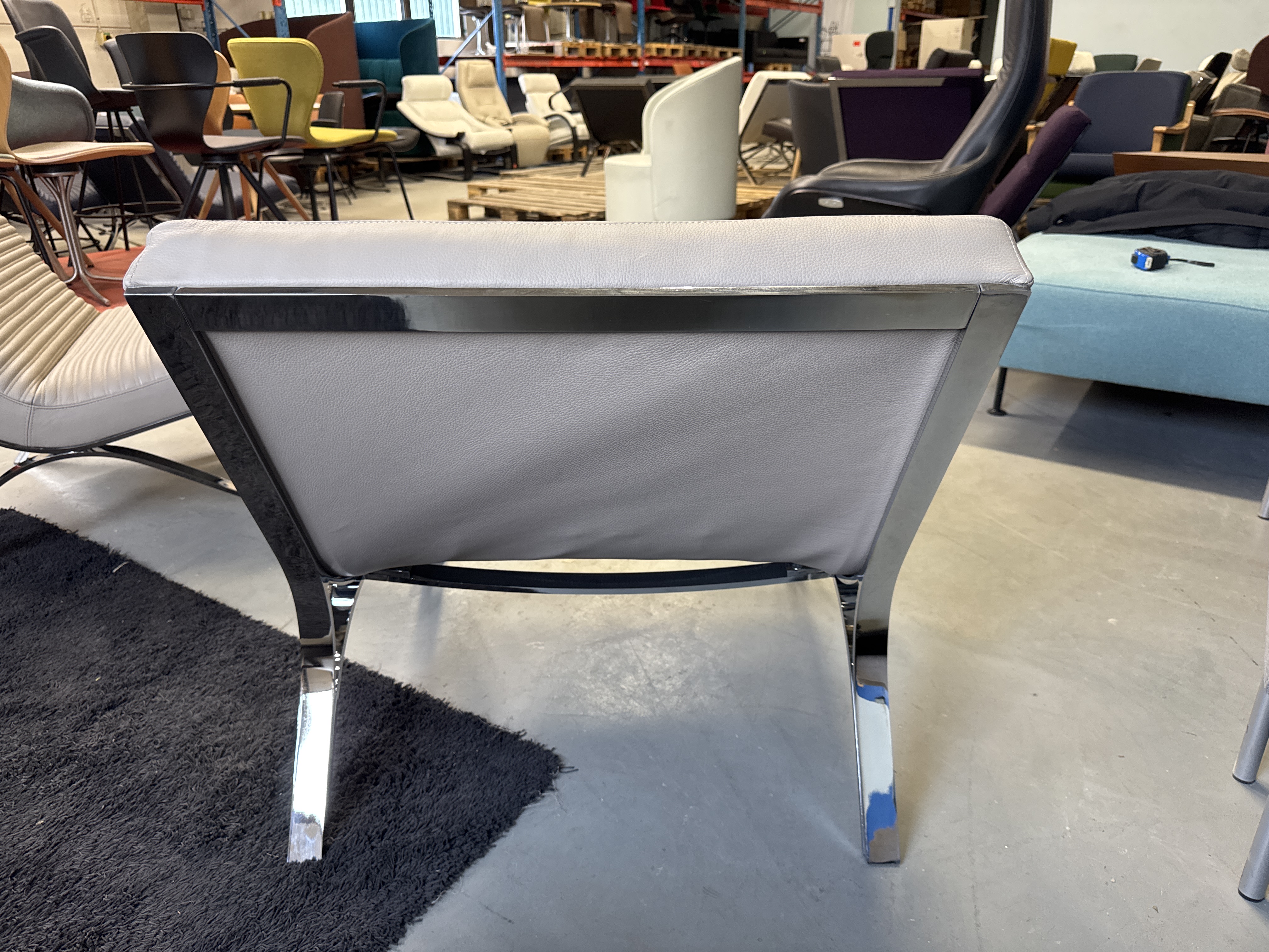 Skool Line i läder fåtöljer, krom / grå läder, 2 st