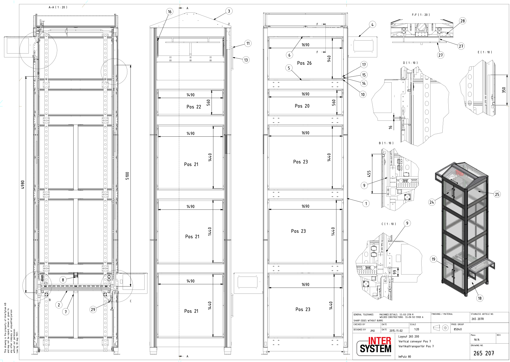 Typ: Vertikaltransportör / Höglagerhiss