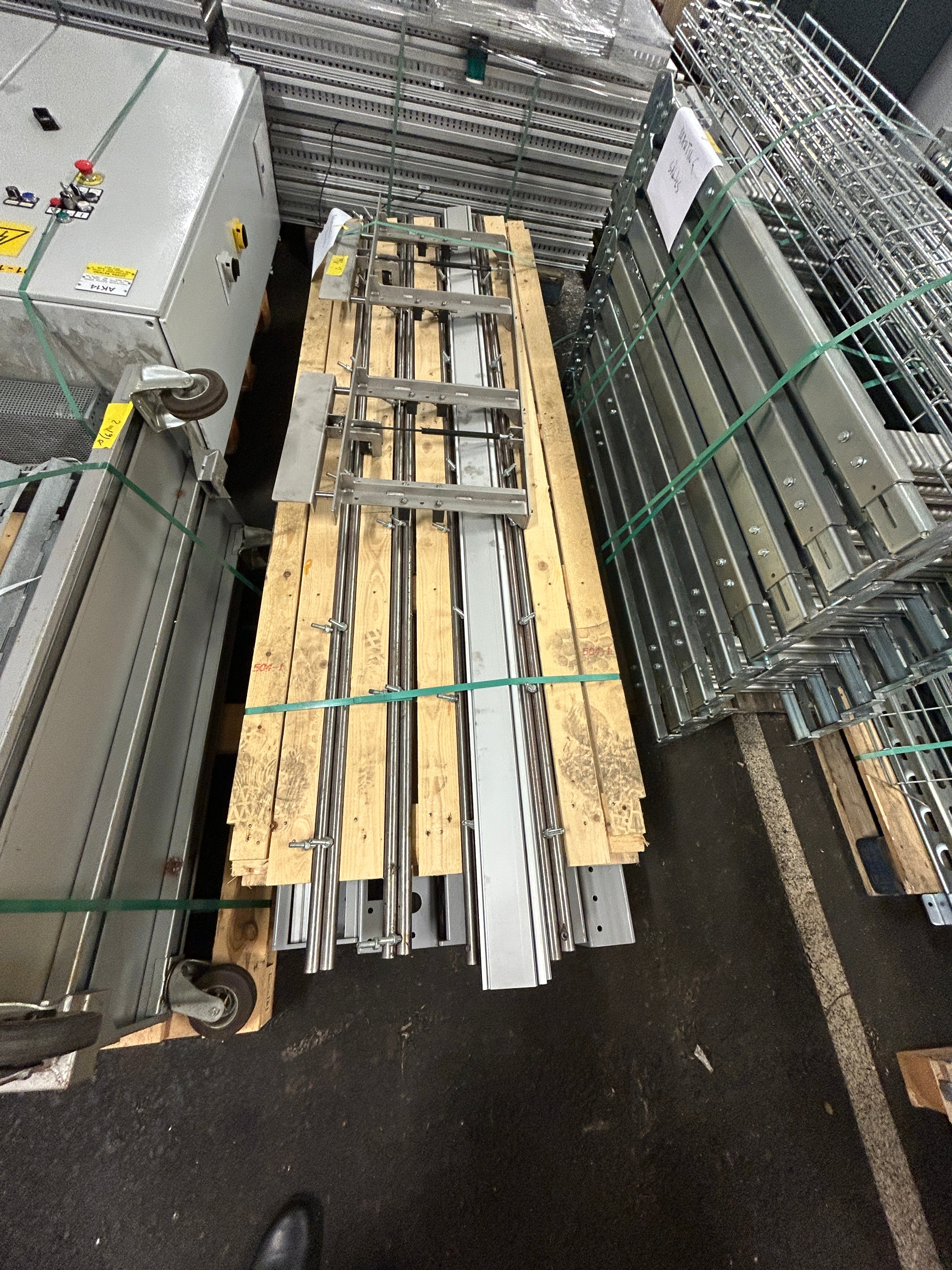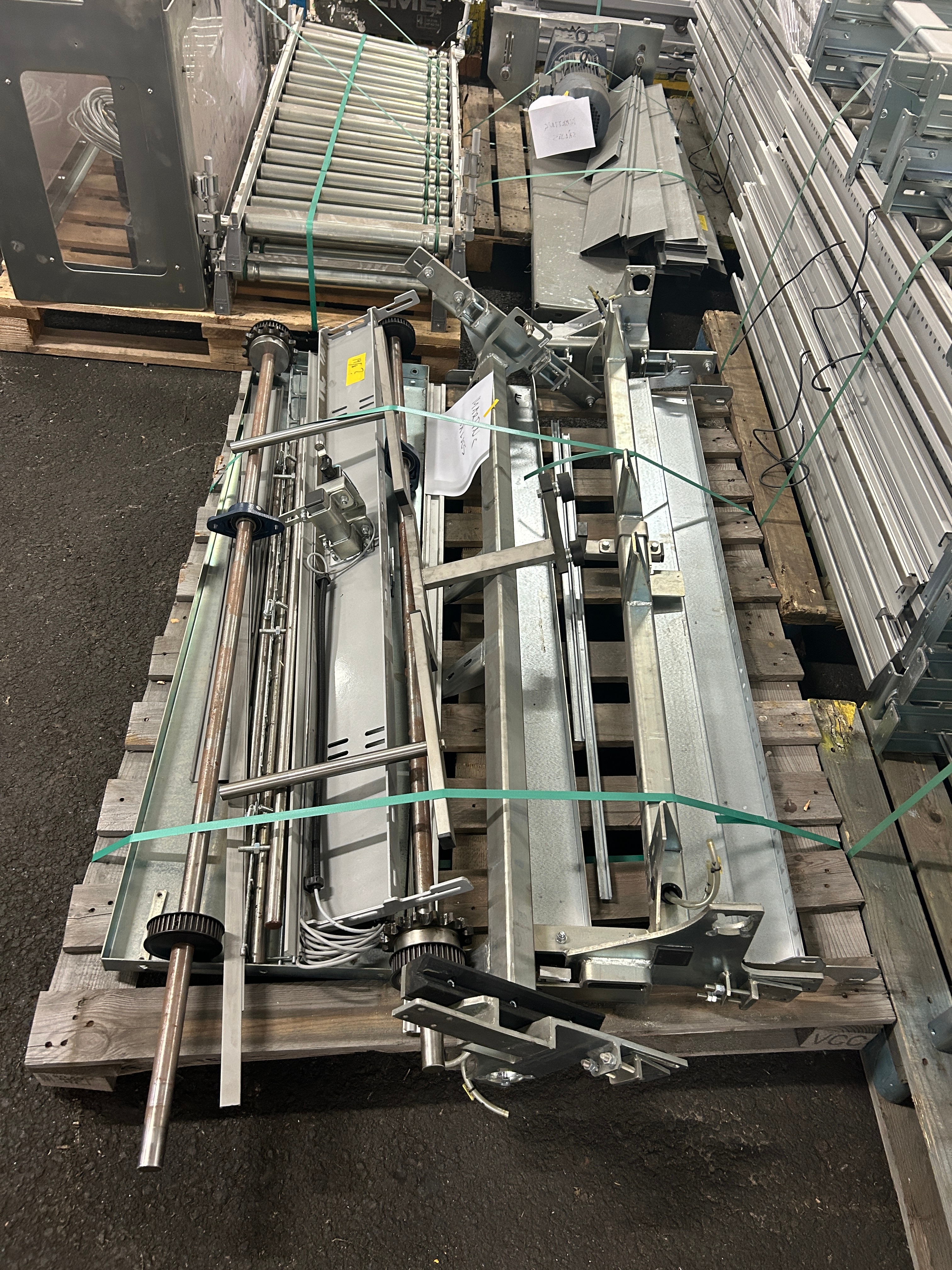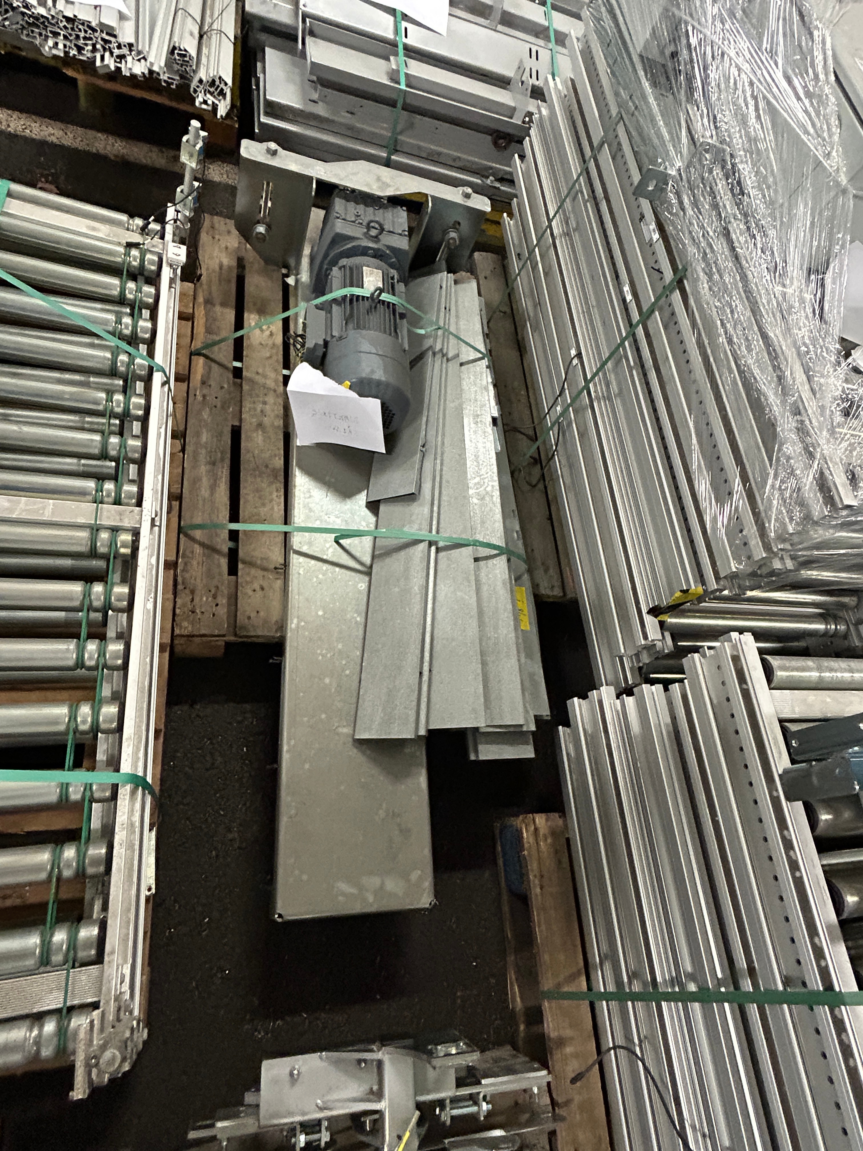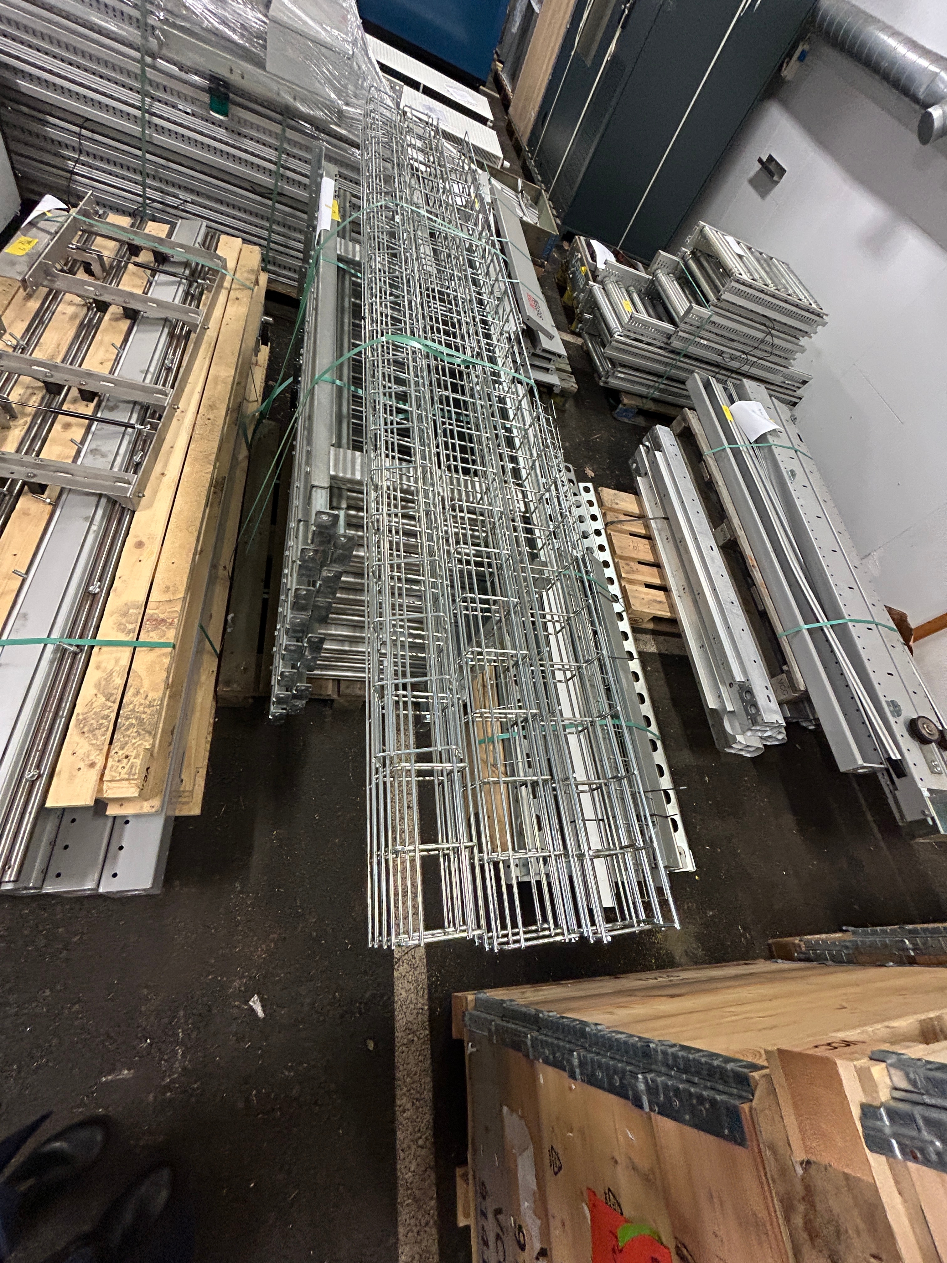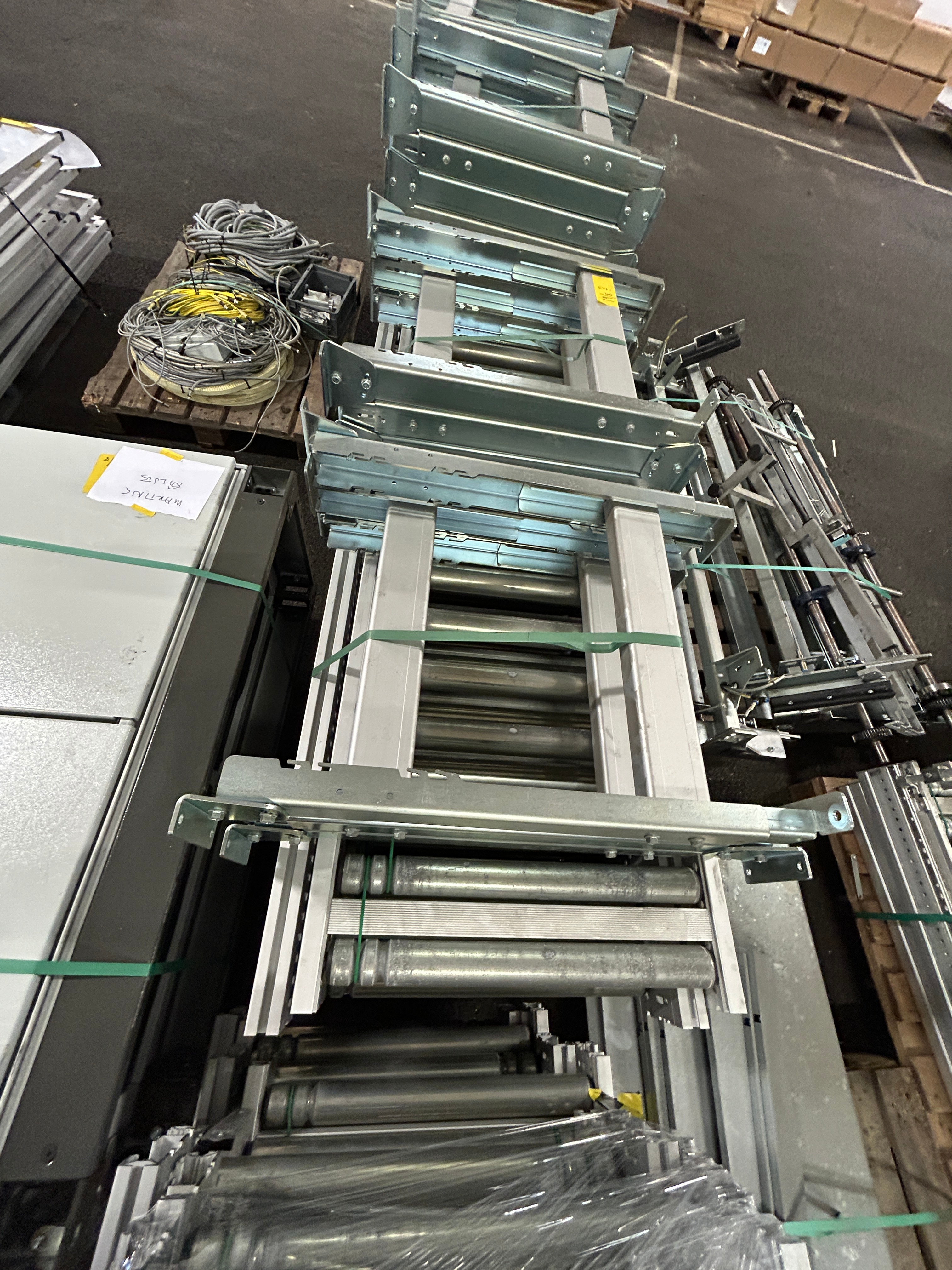 Hissen är demonterad i sektioner och samtliga komponenter är sorterade och märkta på pall för enkel transport och återmontering.