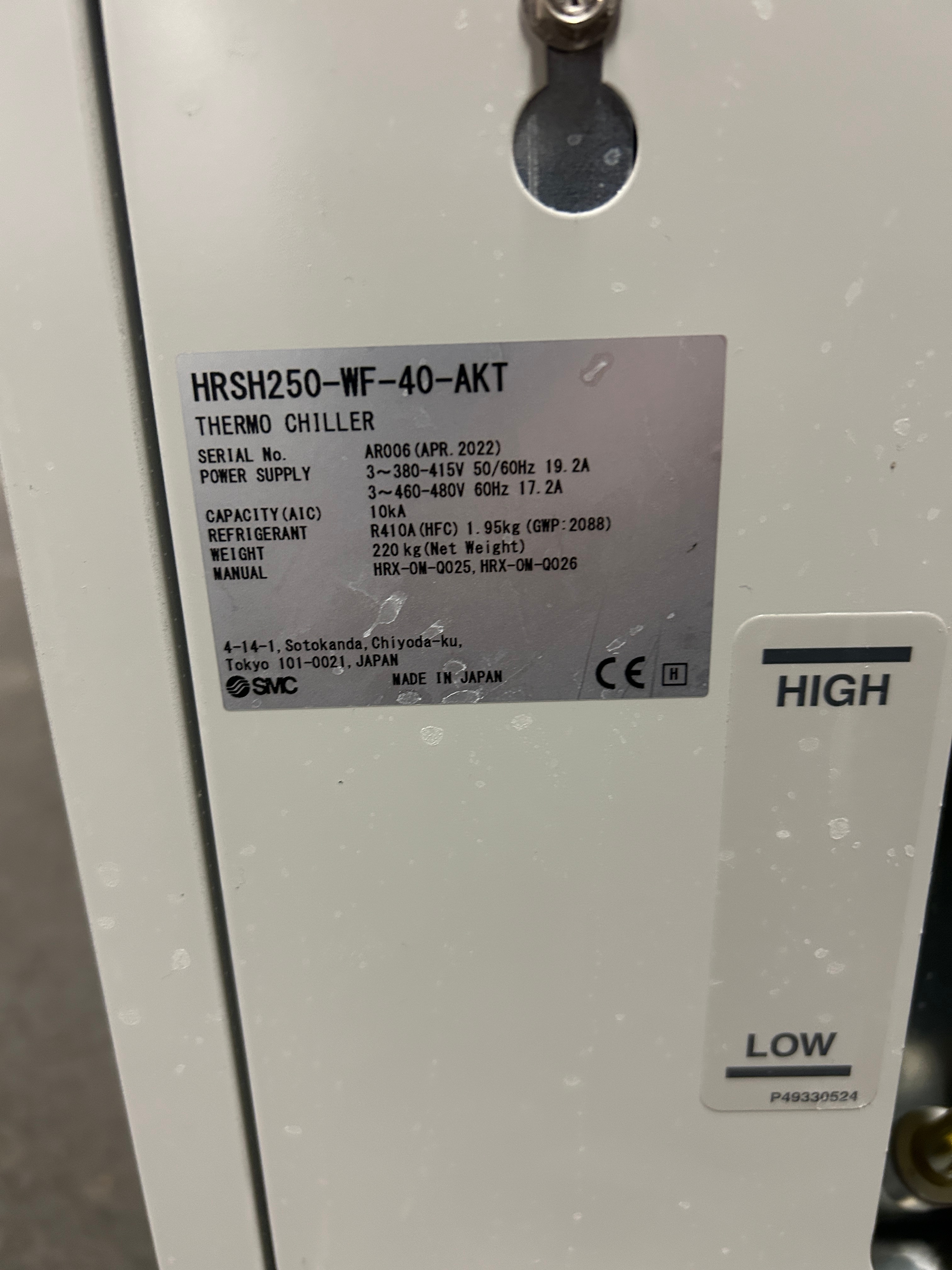 Industriell vätskekylare för laser – SMC HRSH250-WF-40-AKT – 2022