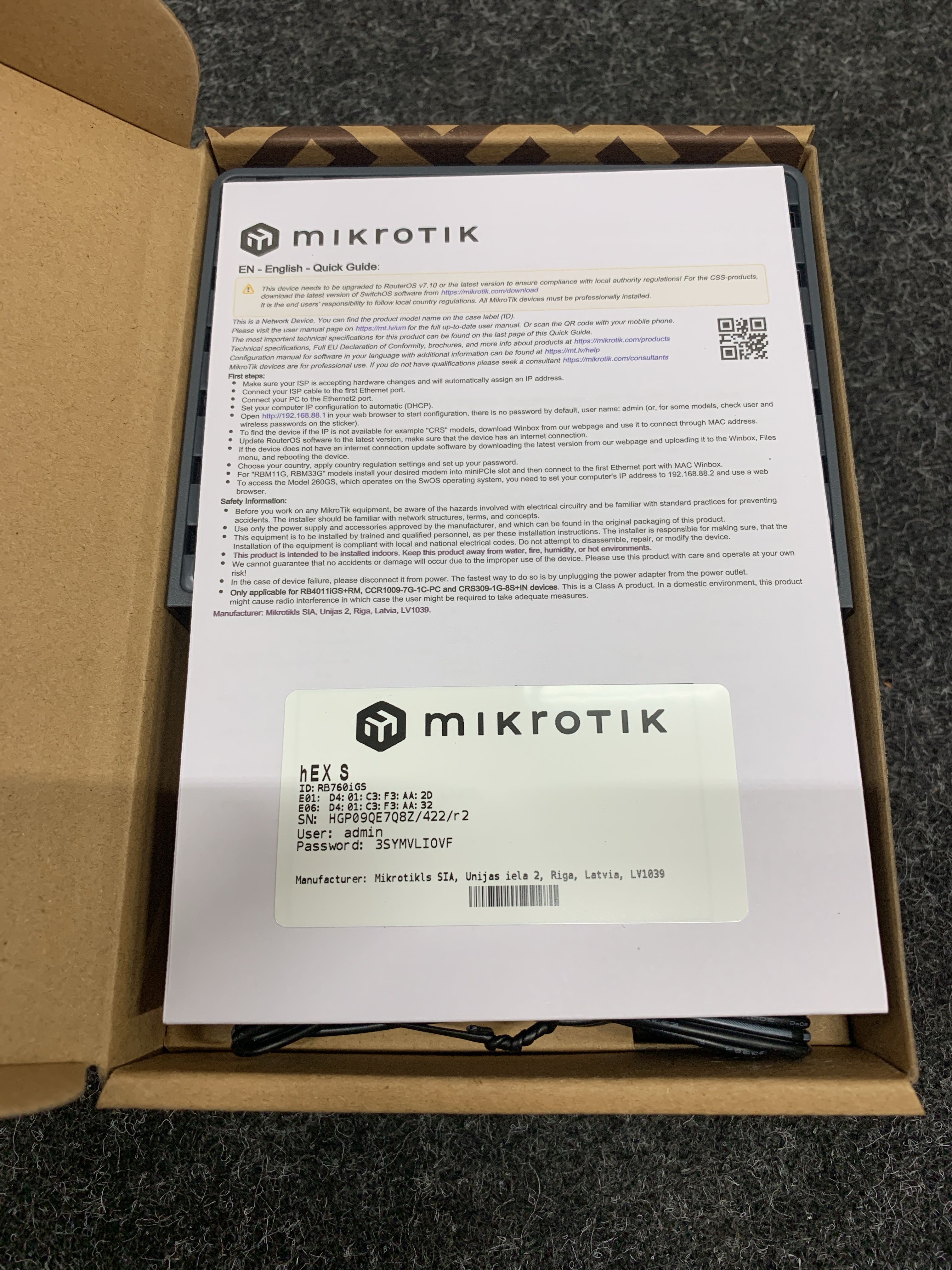 Router Mikrotik BOARD hEX S