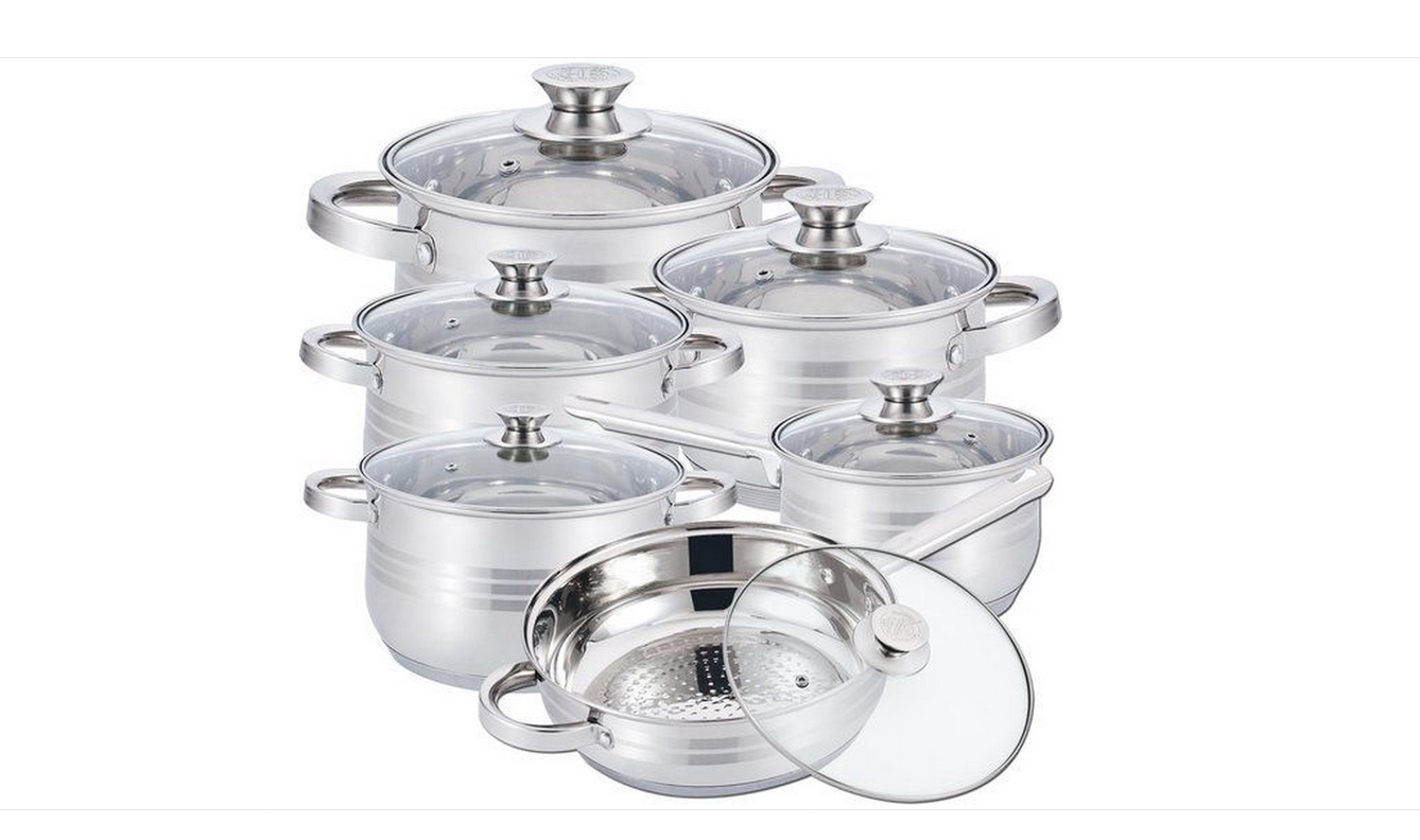 Kastrullset inkl stekpanna i rostfritt stål – 12-delars