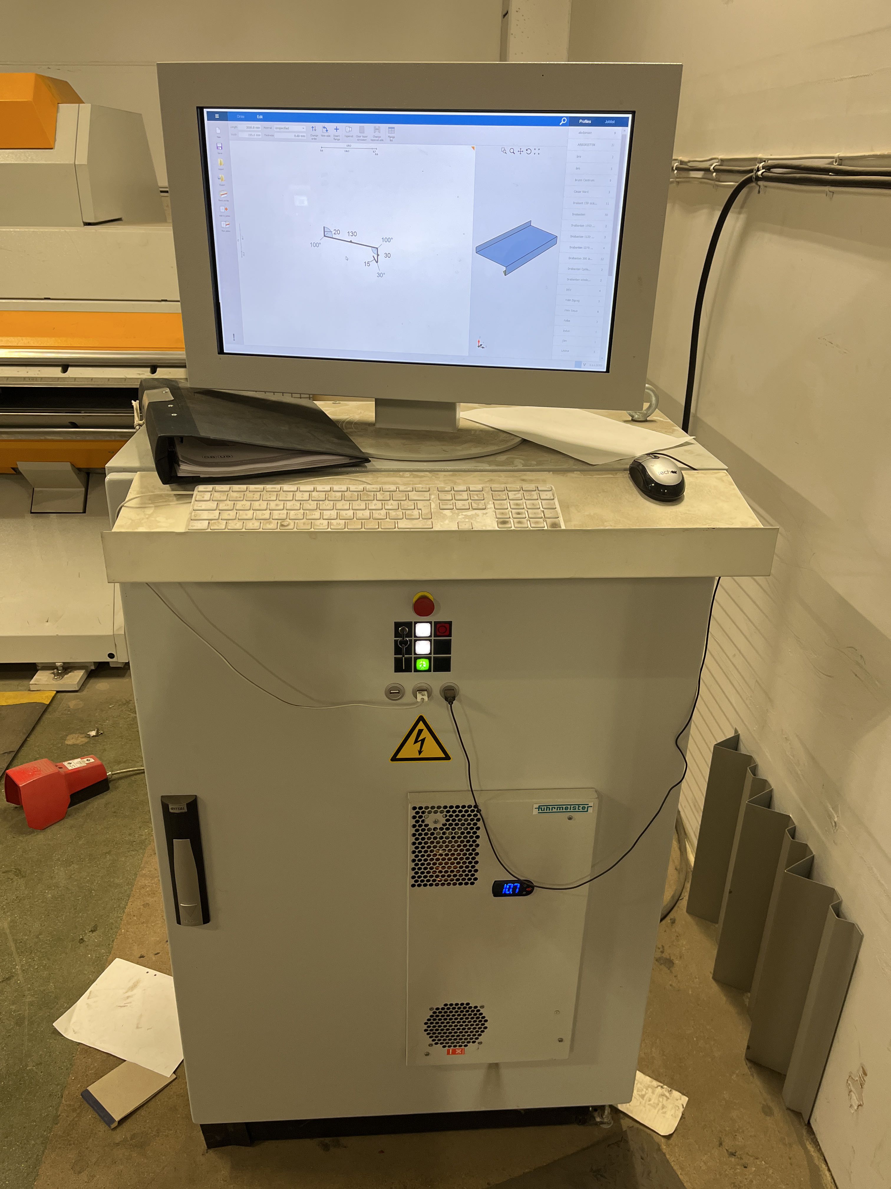 - Kantvikmaskin med styrskåp och skyddsstängsel. Avsedd för bockning av plåt med hög precision.