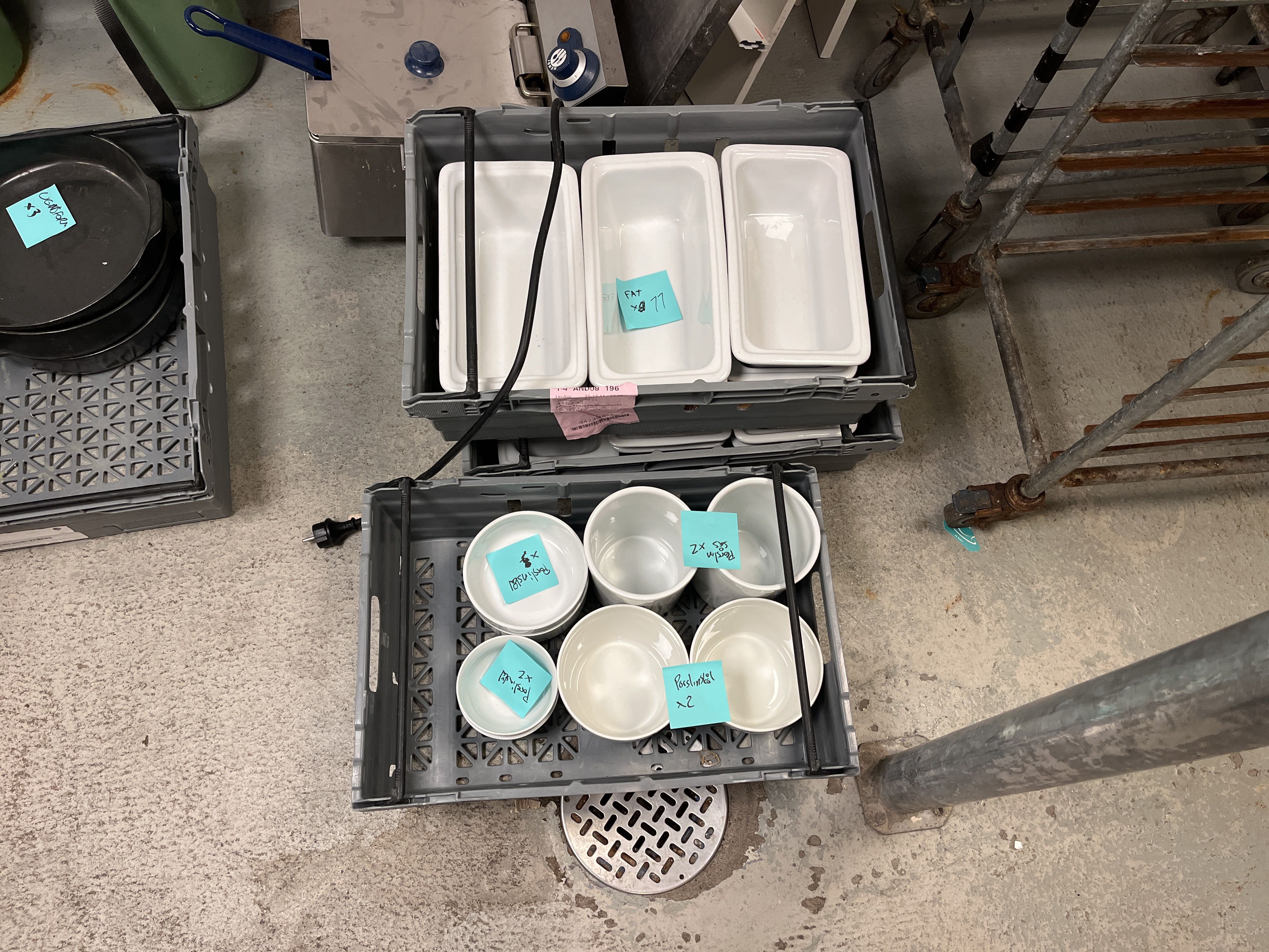 Bland objekten finns Robot coupe Automatisk Råsaftscentrifug, porslinsskålar, ugnsformar i gjutjärn, rostfria fat, multigrill, rostfria Gastrobleck, värmeskåp, kylbänk, Turbochef Bullet Snabbugn/Pizzaugn samt brödrost, med mera.