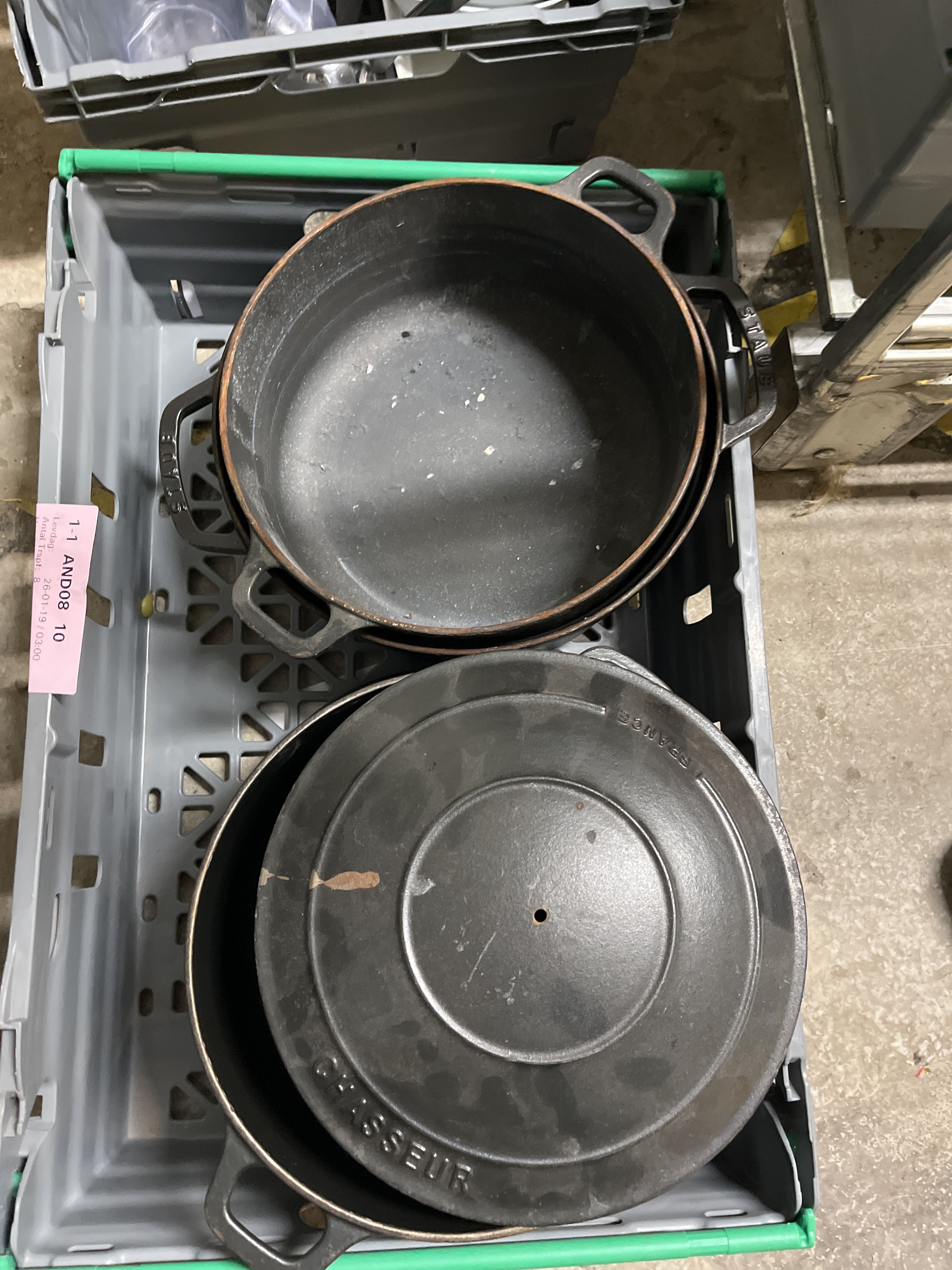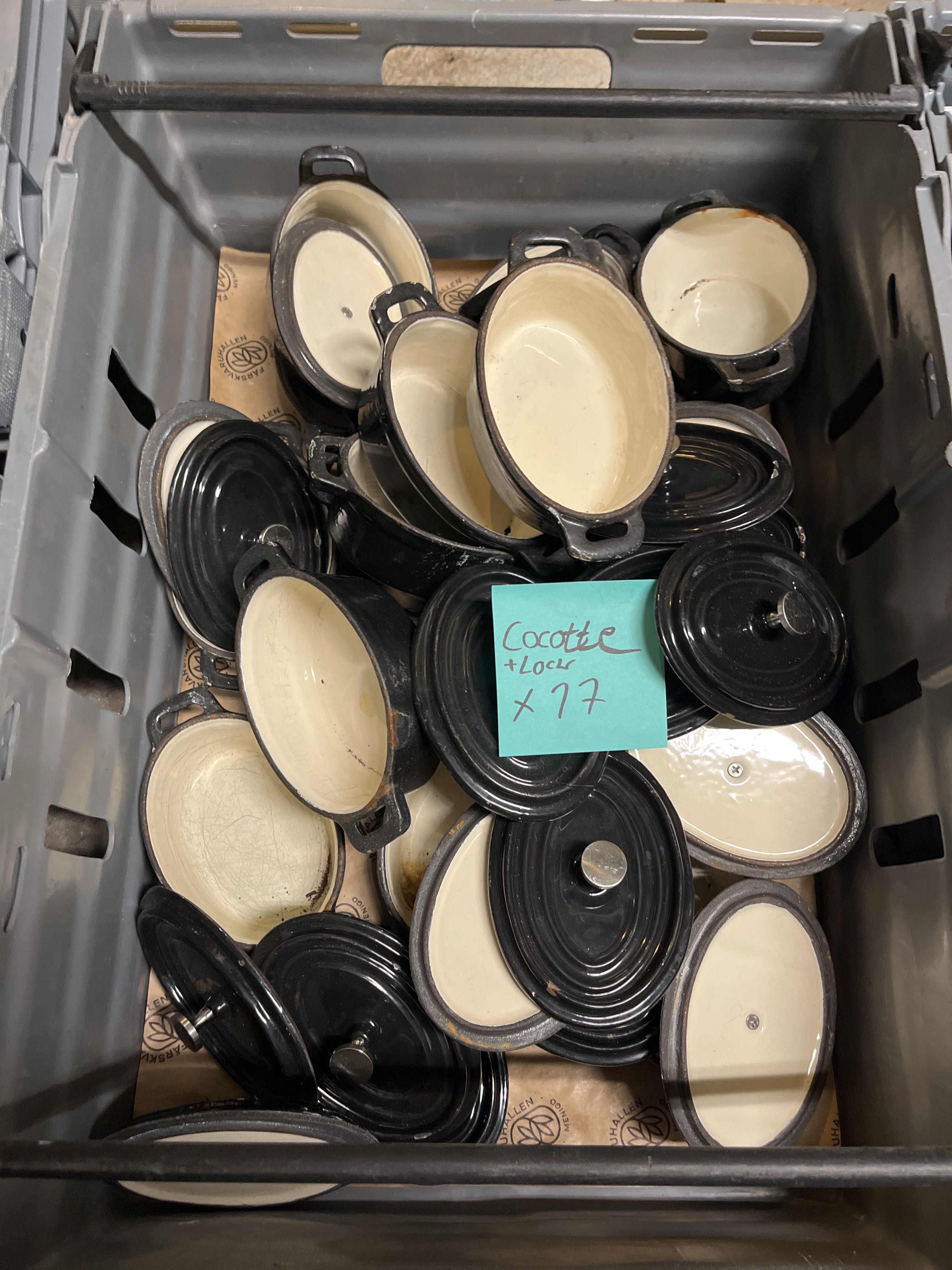 Bland objekten finns Robot coupe Automatisk Råsaftscentrifug, porslinsskålar, ugnsformar i gjutjärn, rostfria fat, multigrill, rostfria Gastrobleck, värmeskåp, kylbänk, Turbochef Bullet Snabbugn/Pizzaugn samt brödrost, med mera.