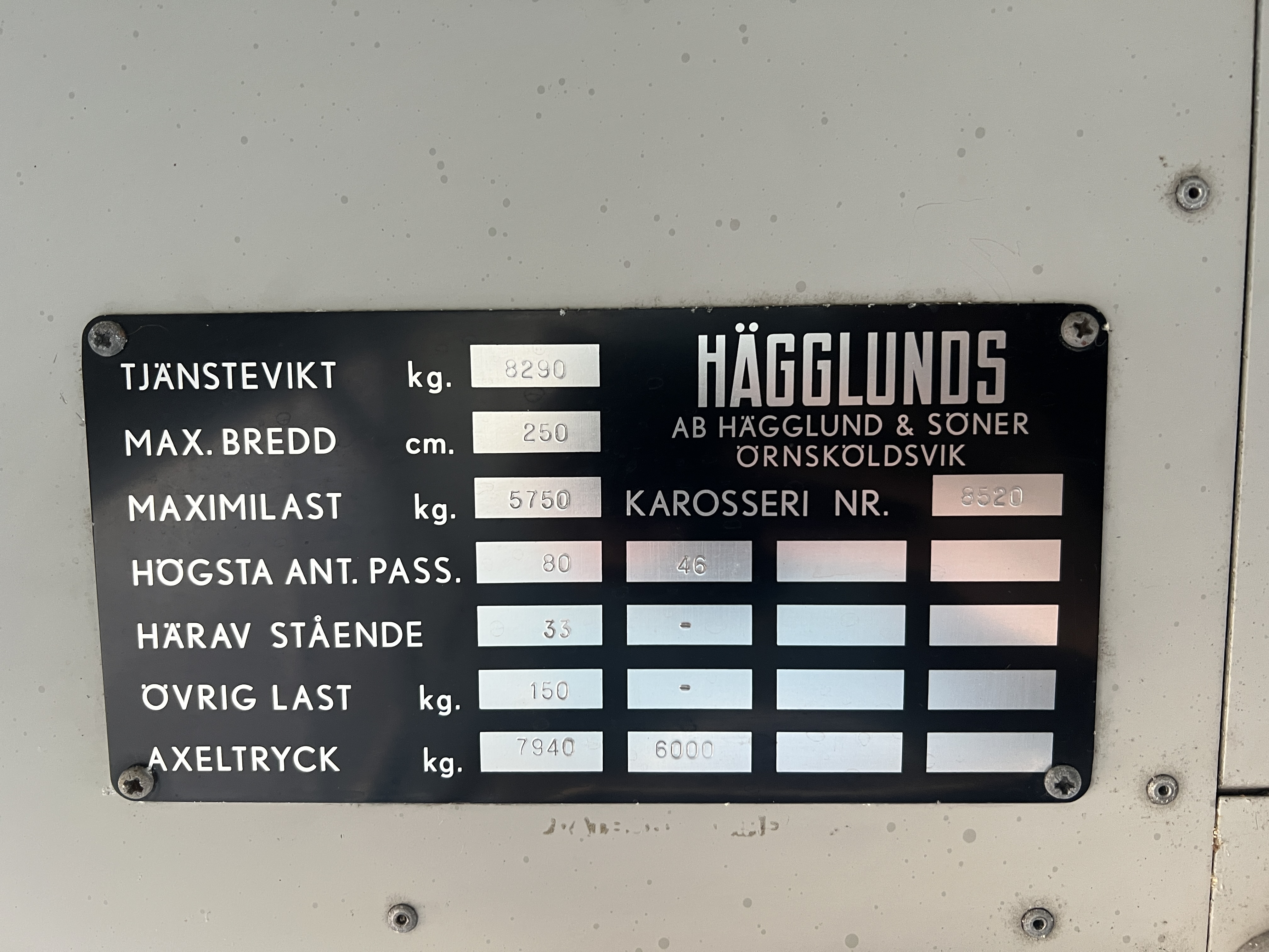 • Karosseri nr: 8520