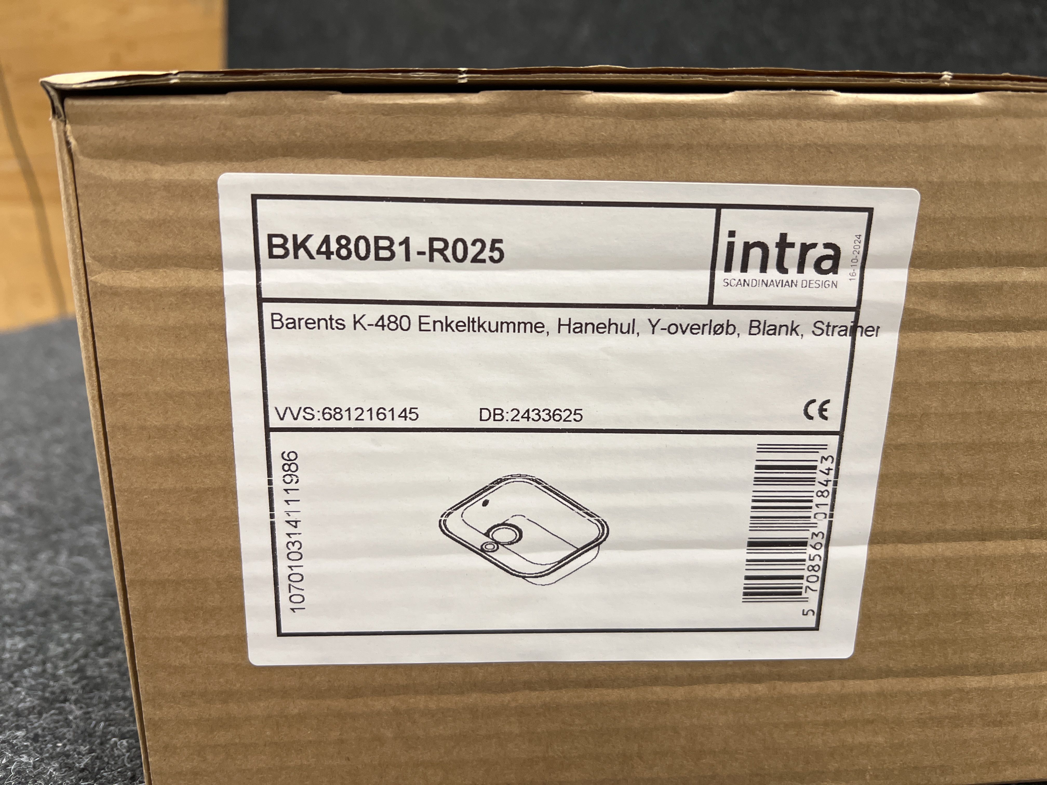 Diskho Intra Barents BK480B1-R025 Insatsbänk är en singellåda för nedfällning med hål för armatur i bakkant. Den levereras med korgventil och bräddavlopp.