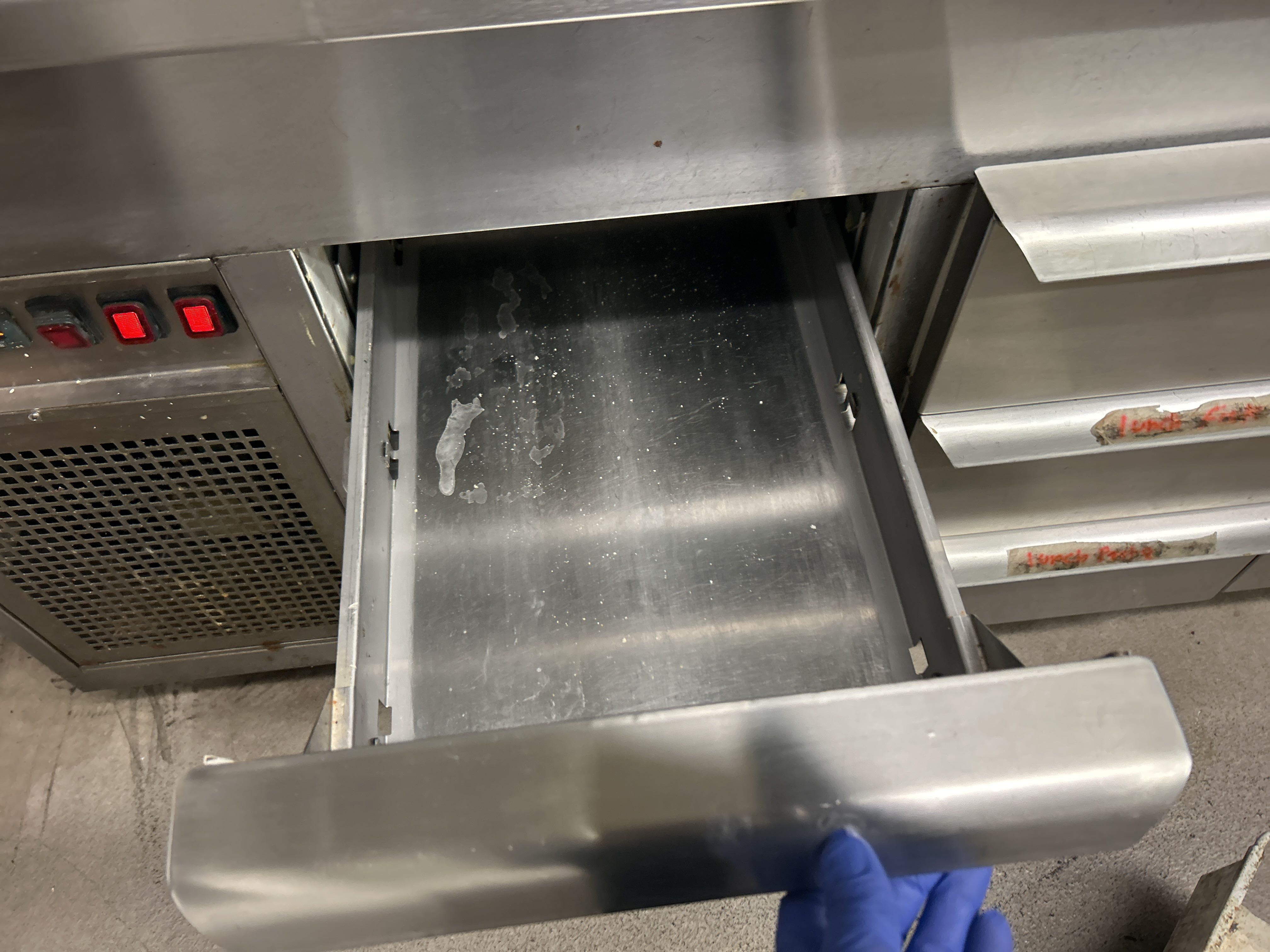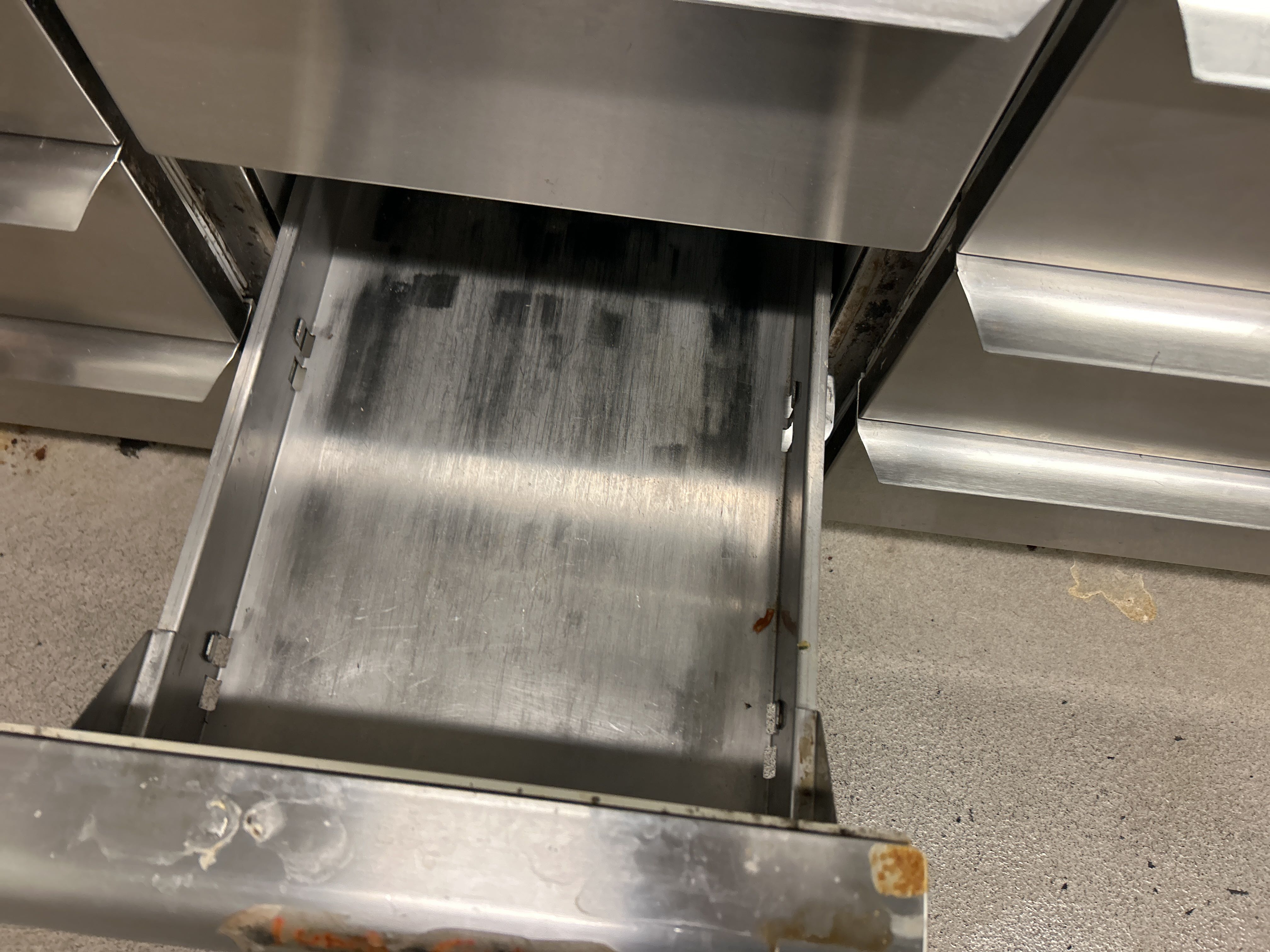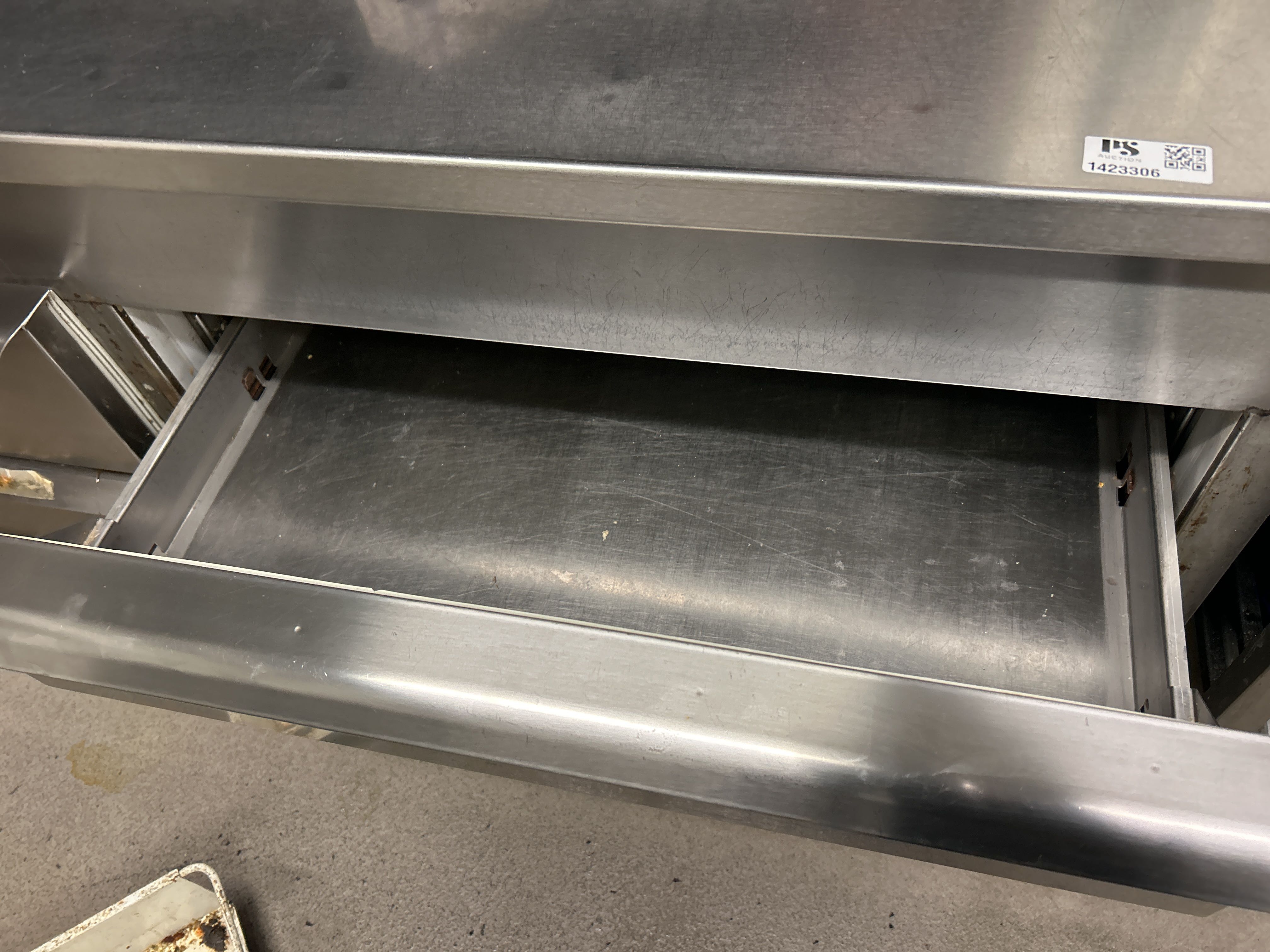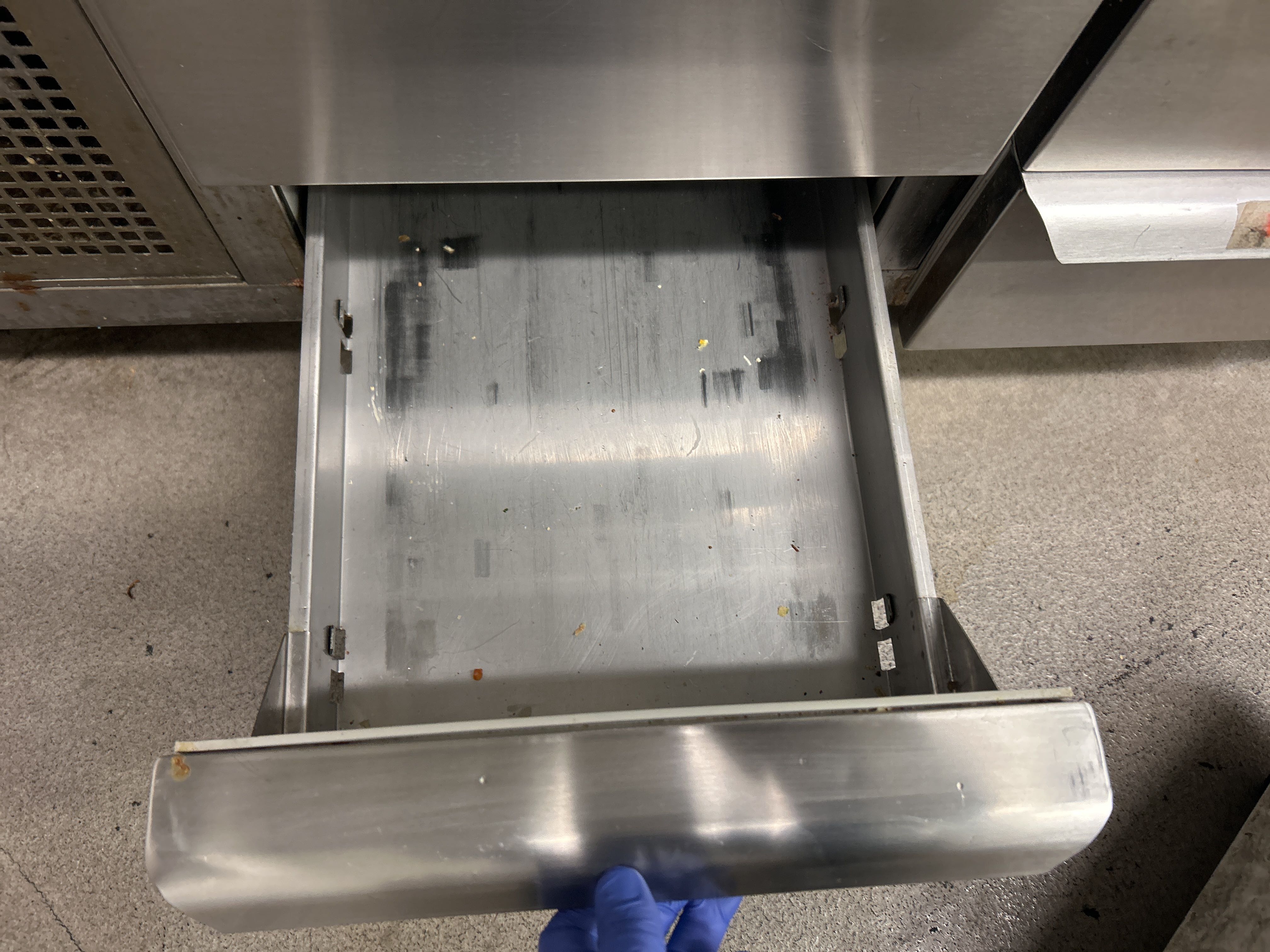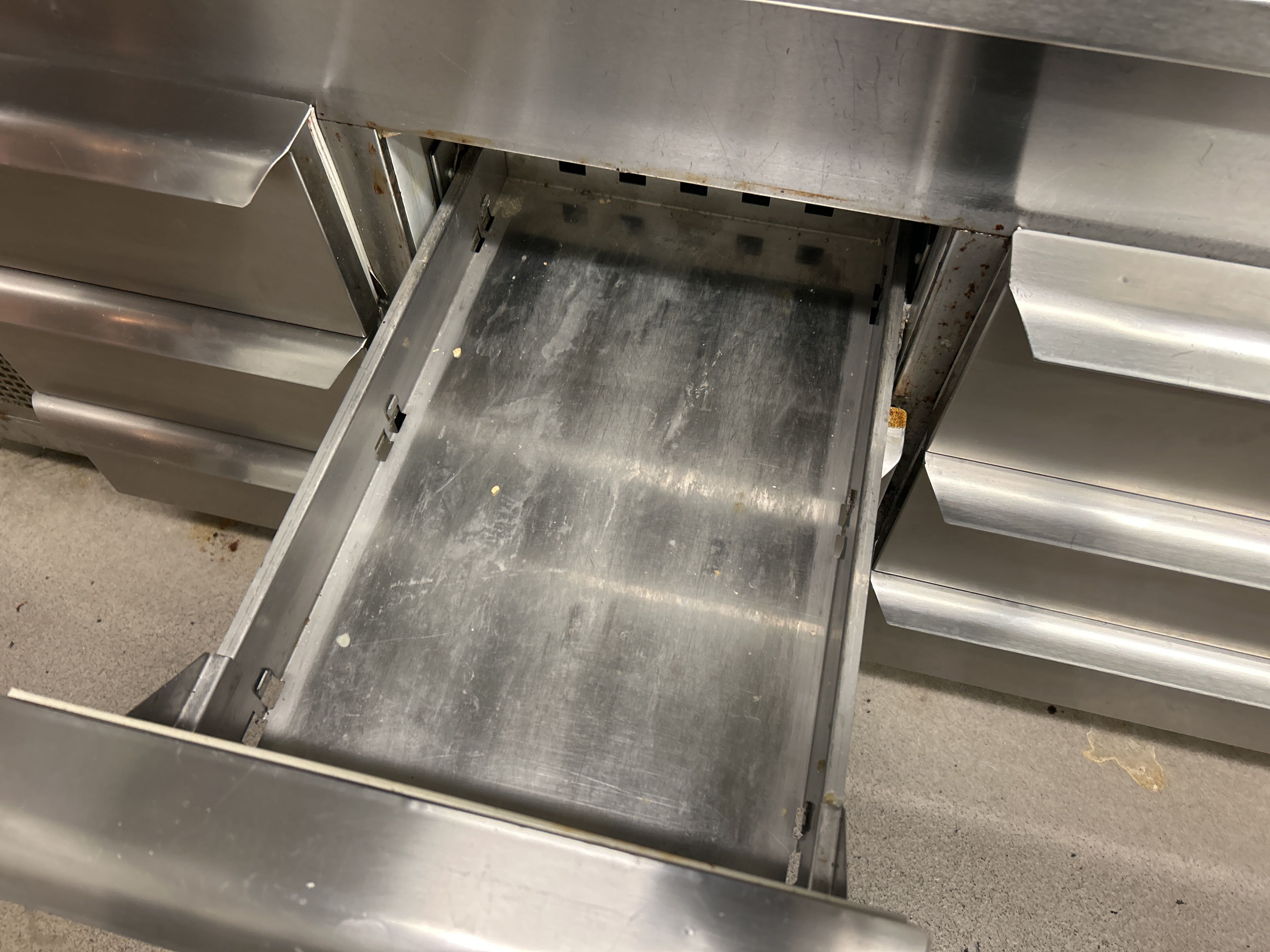Rostfri kylbänk med ränna och 9 lådor
