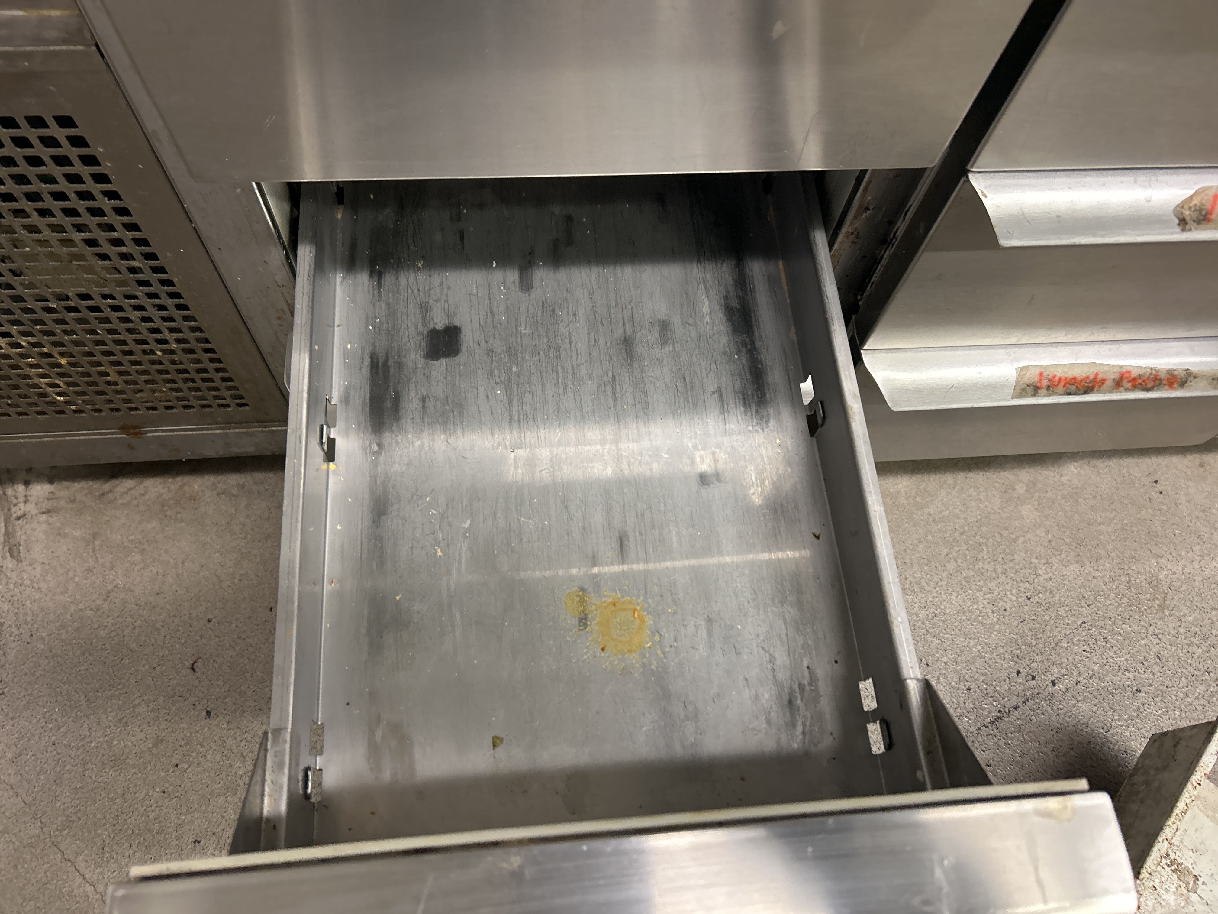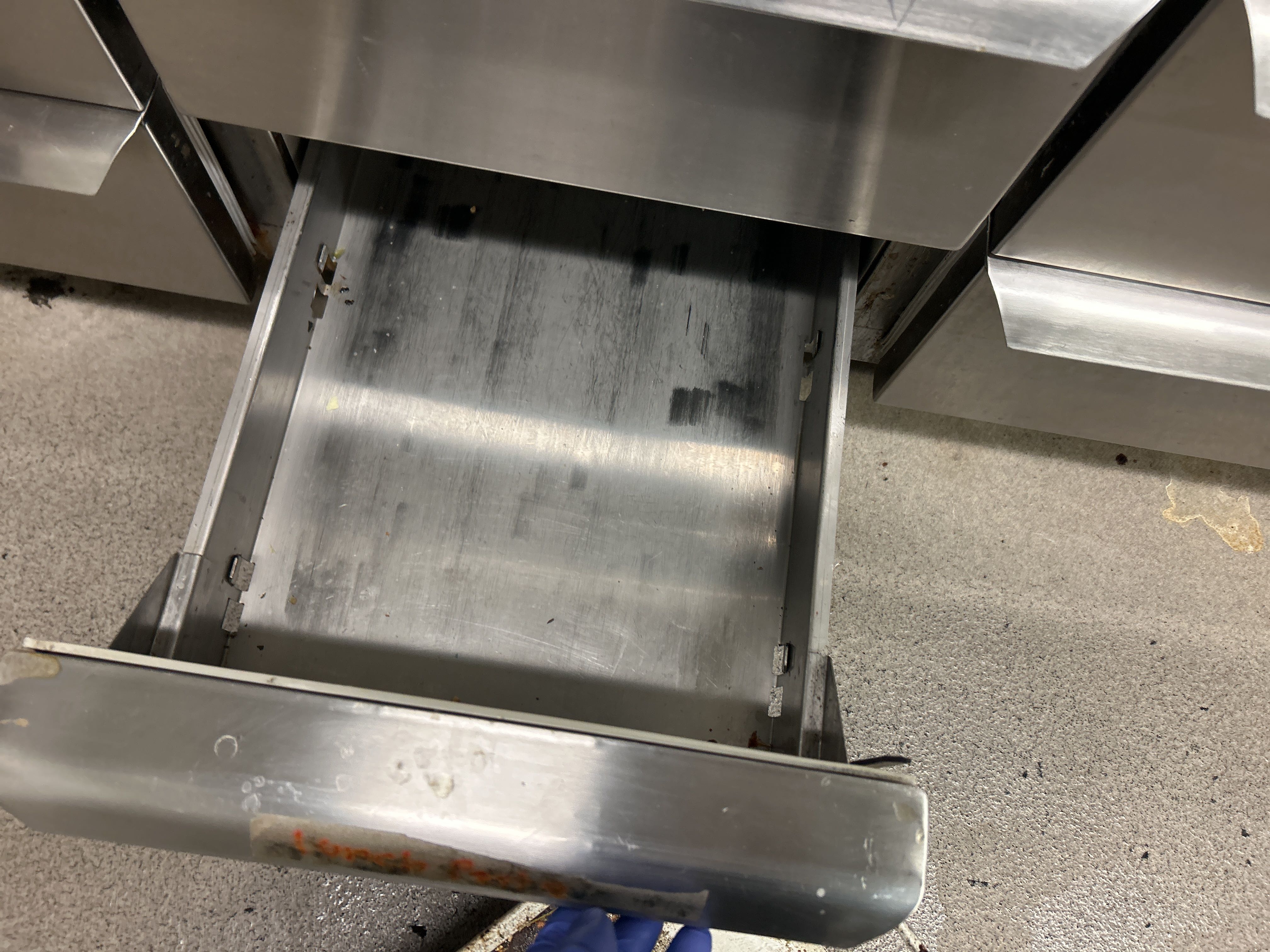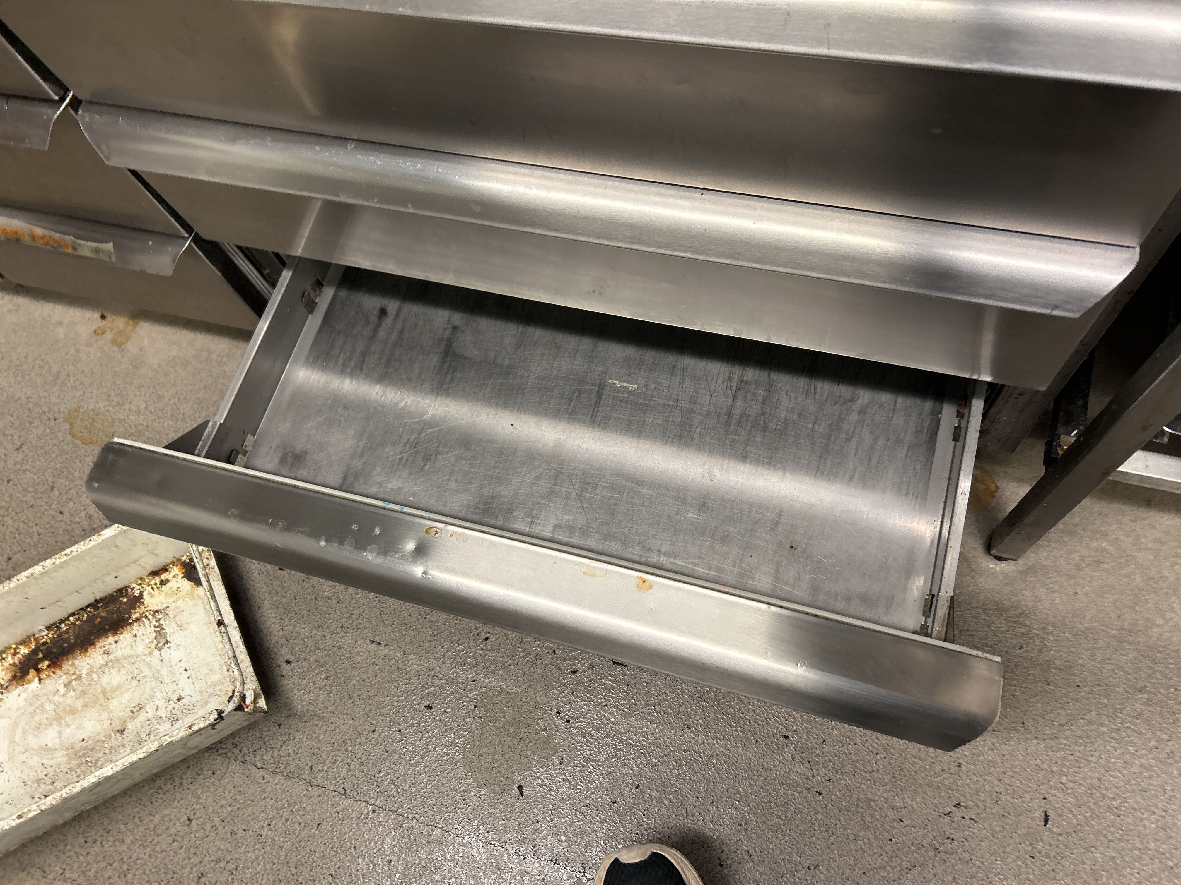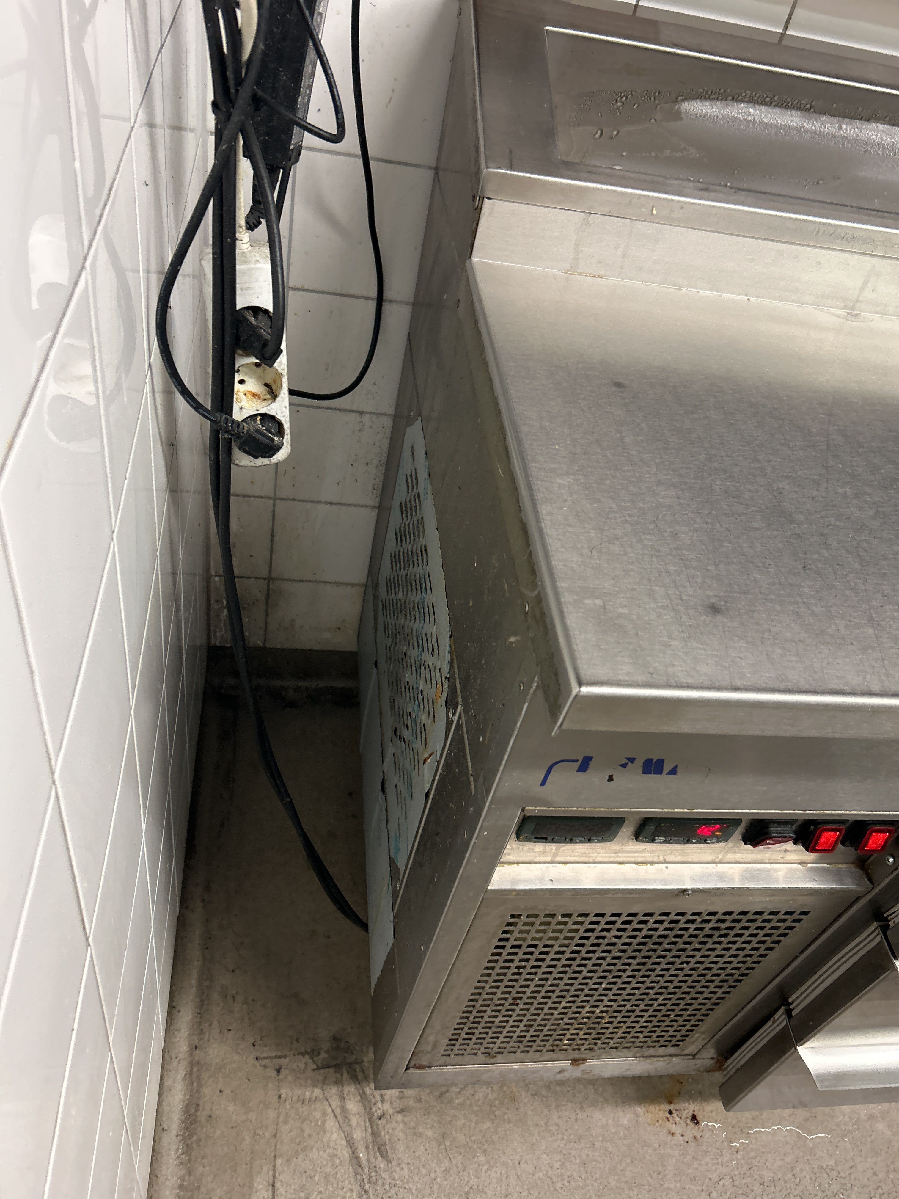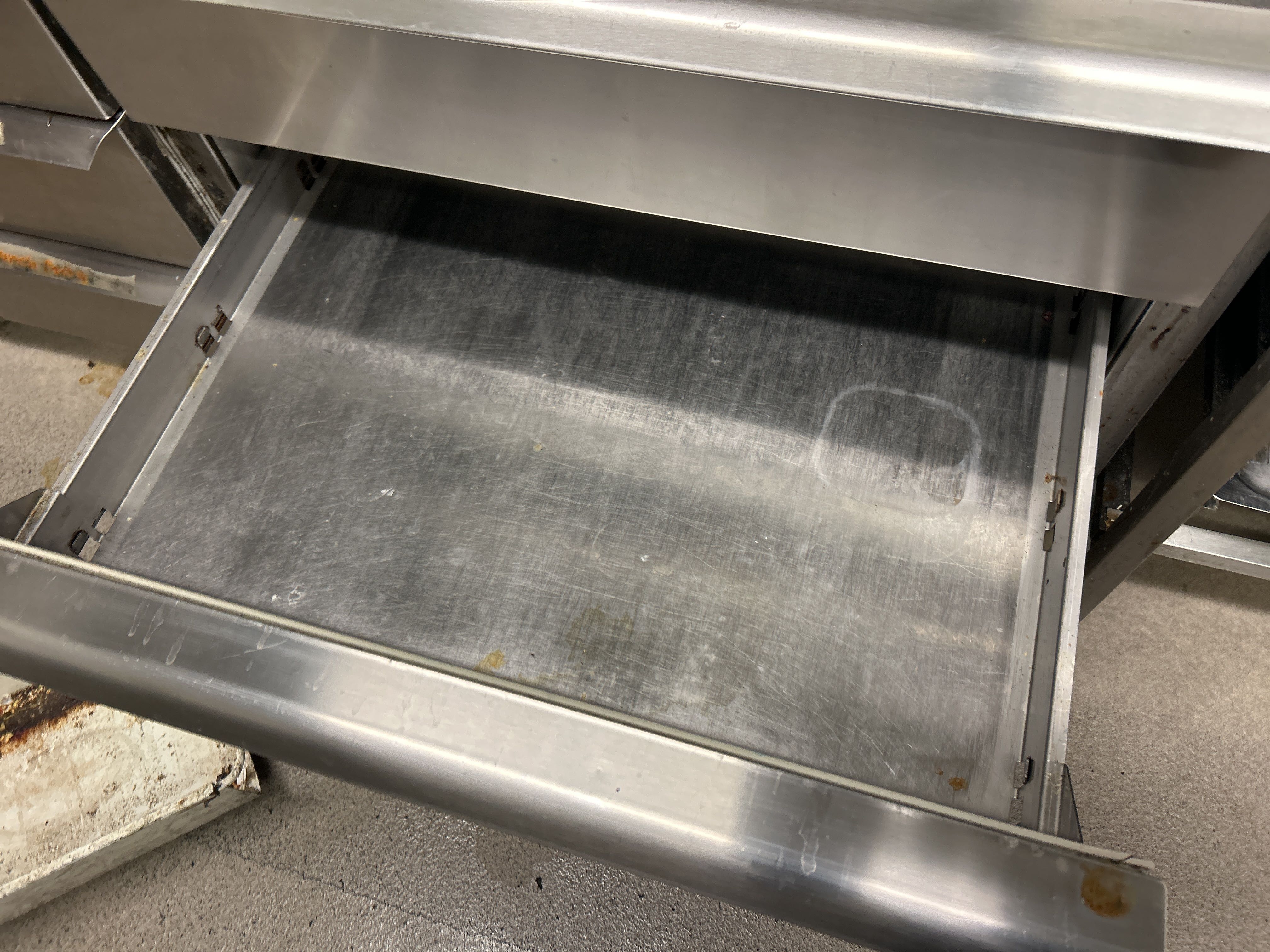 Rostfri kylbänk med ränna och 9 lådor