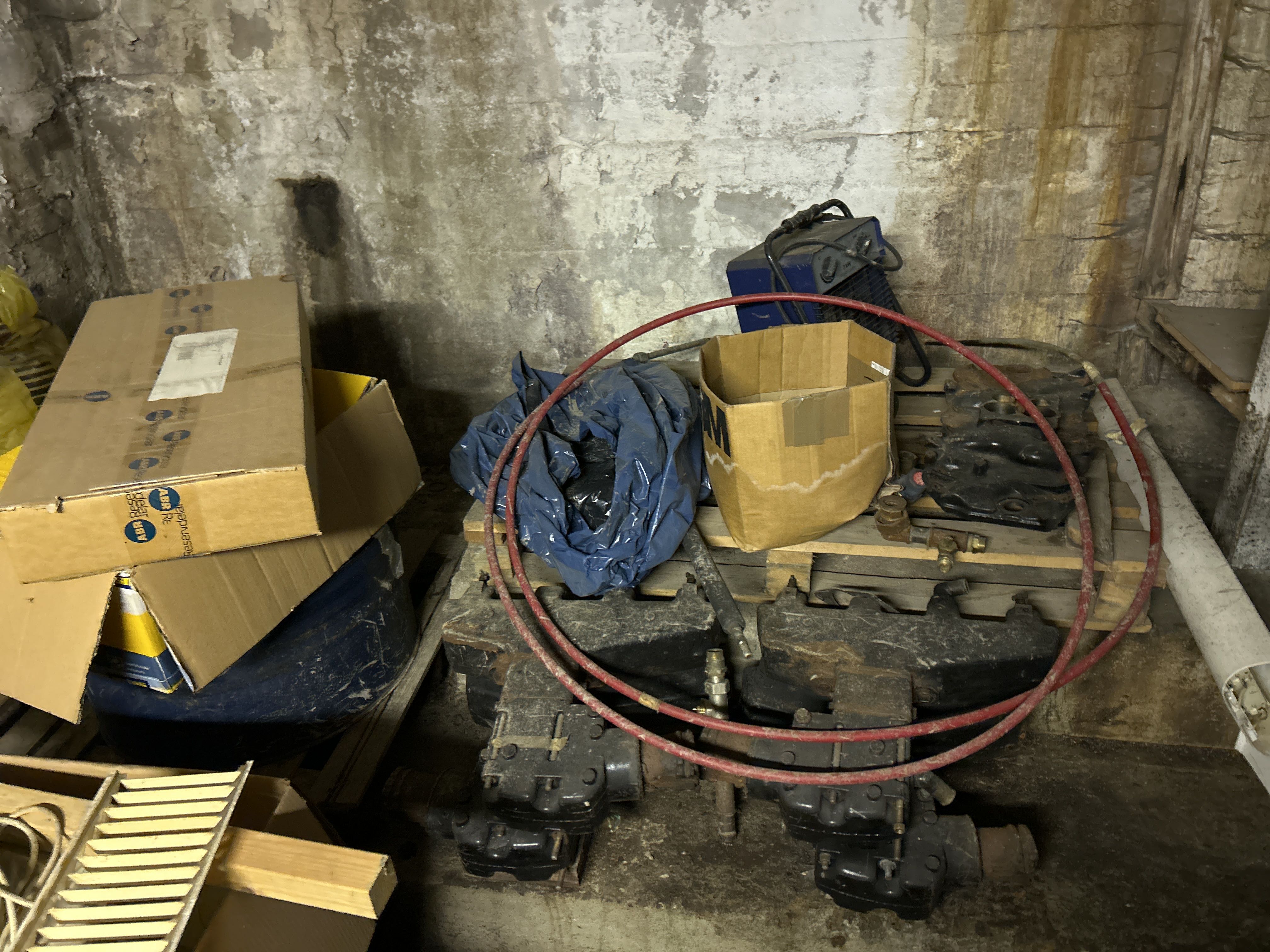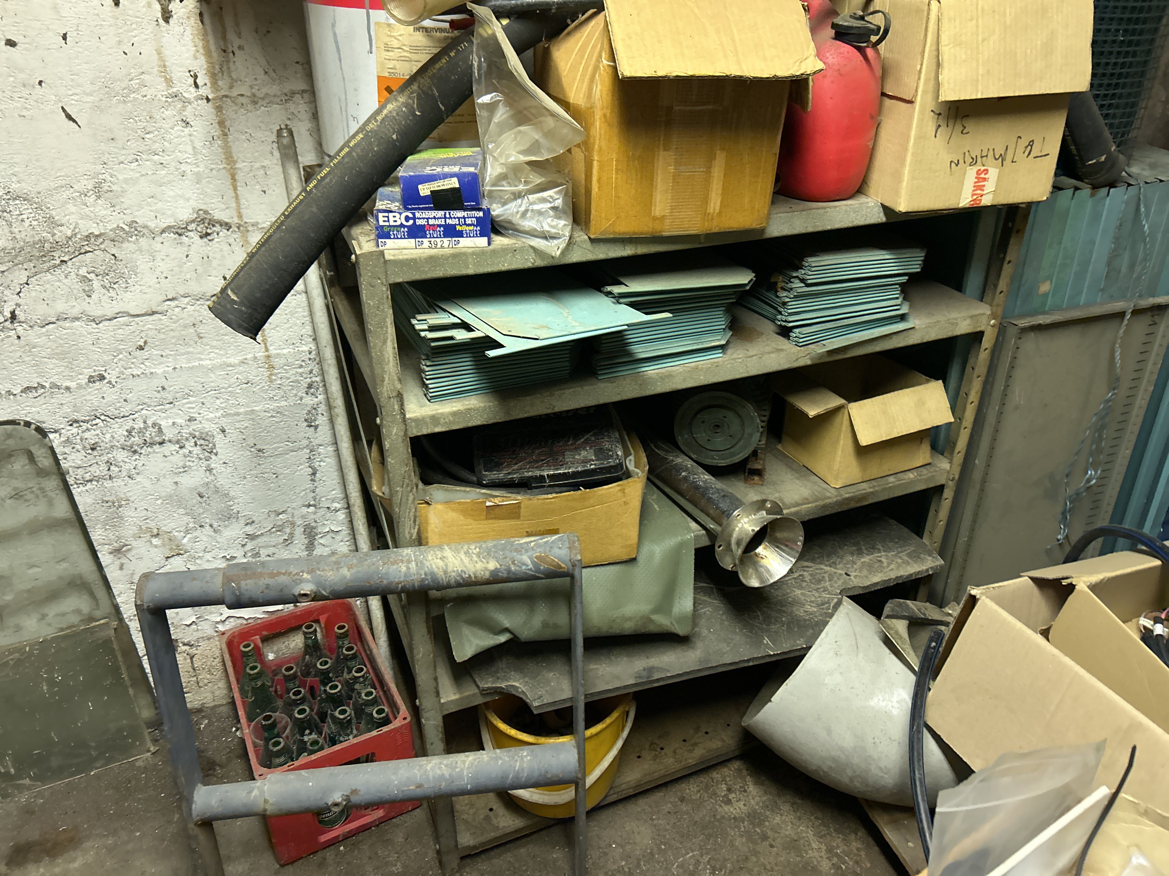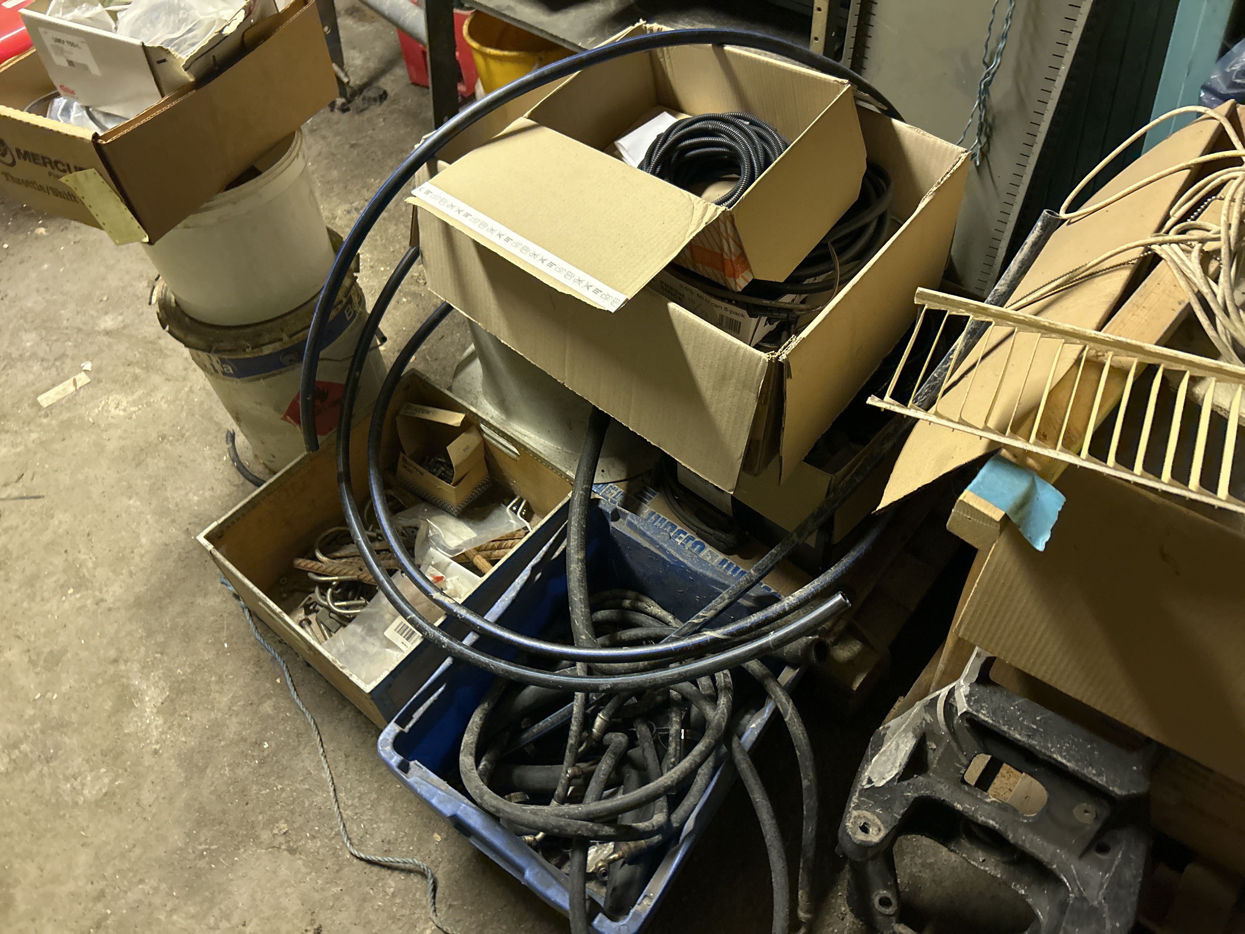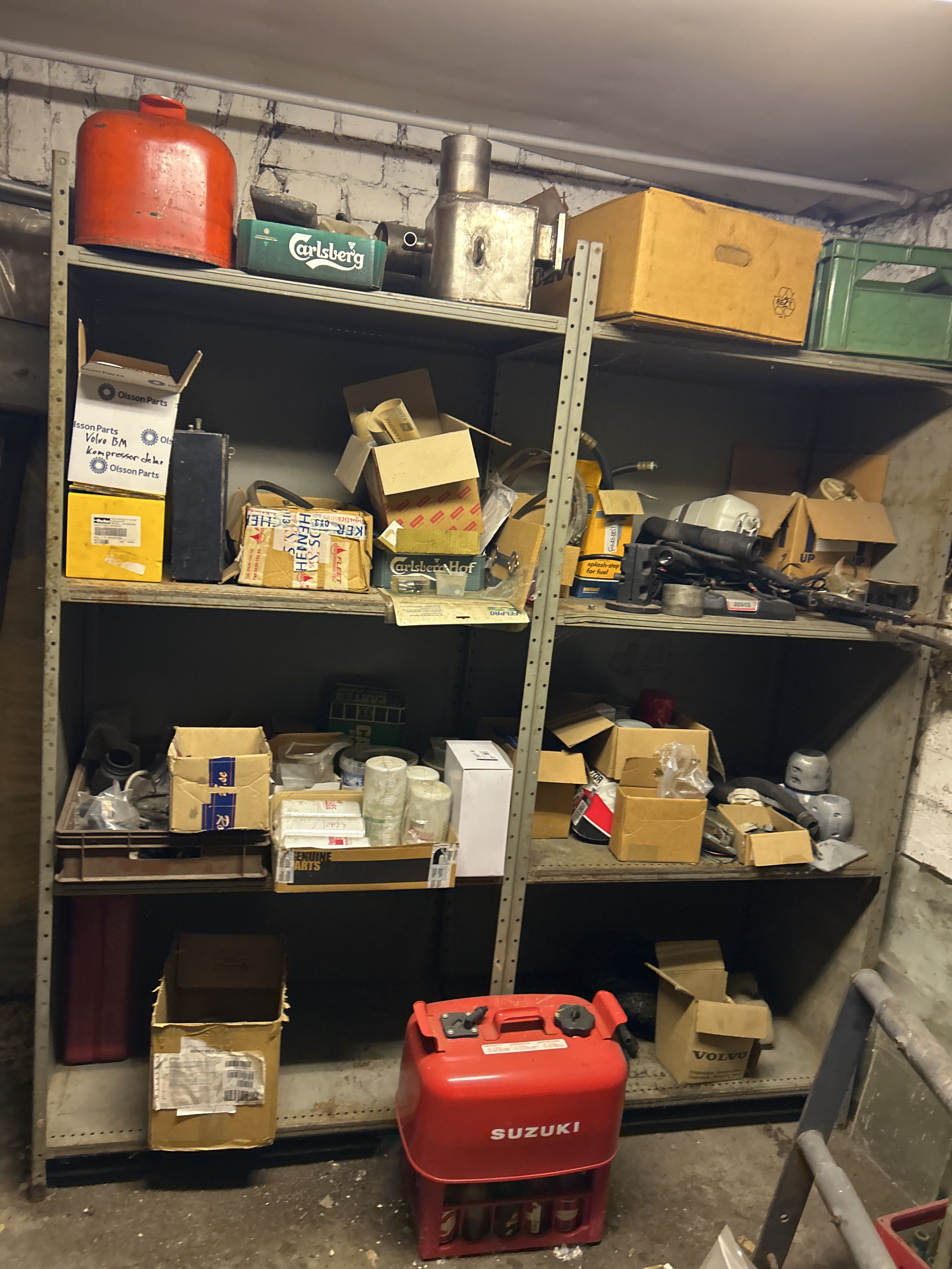 Större samling med diverse reservdelar och inventarier från båtverkstad