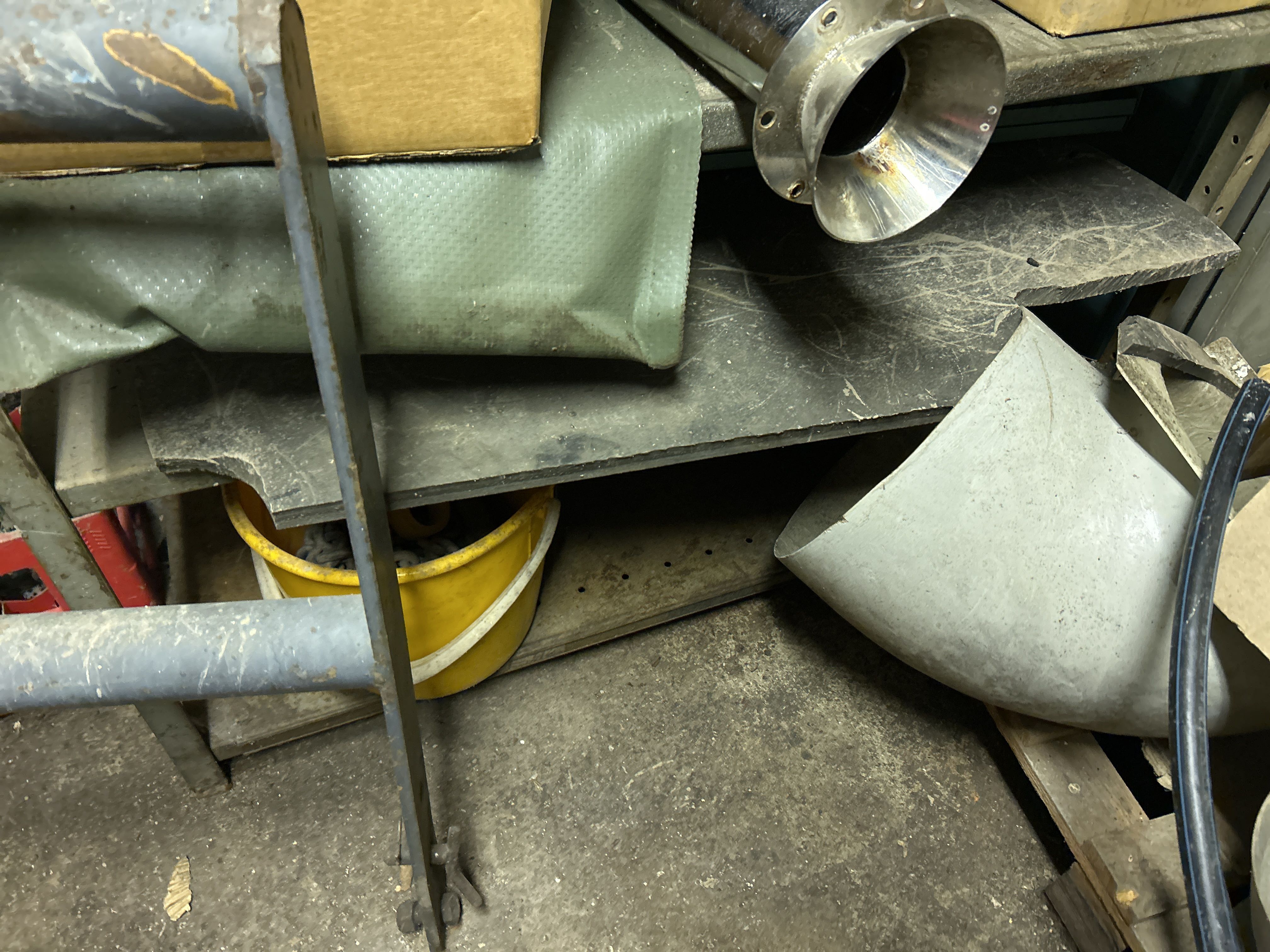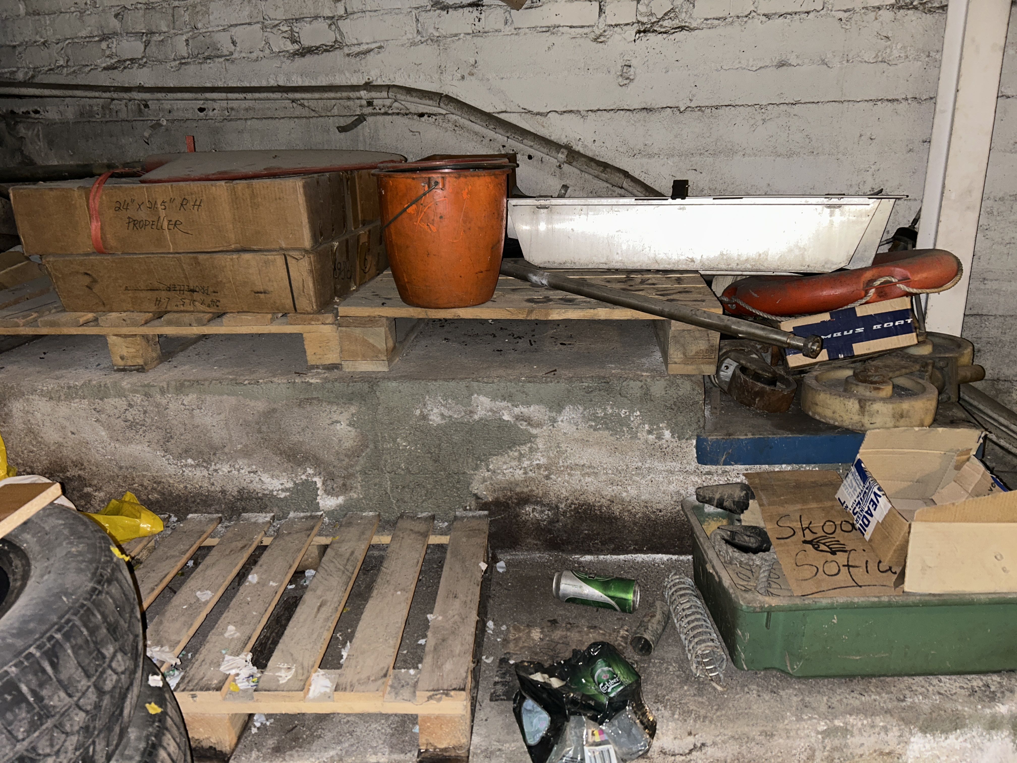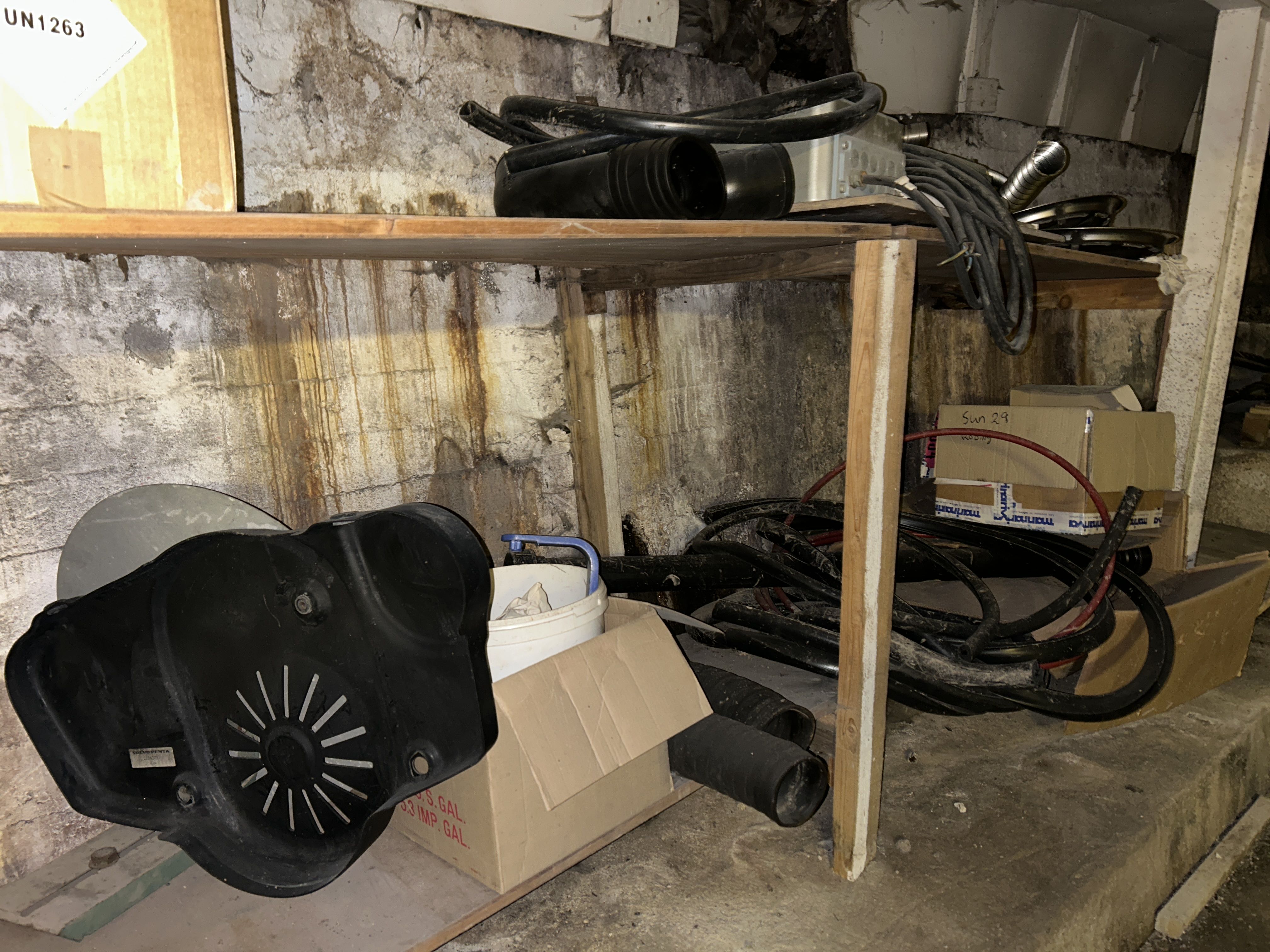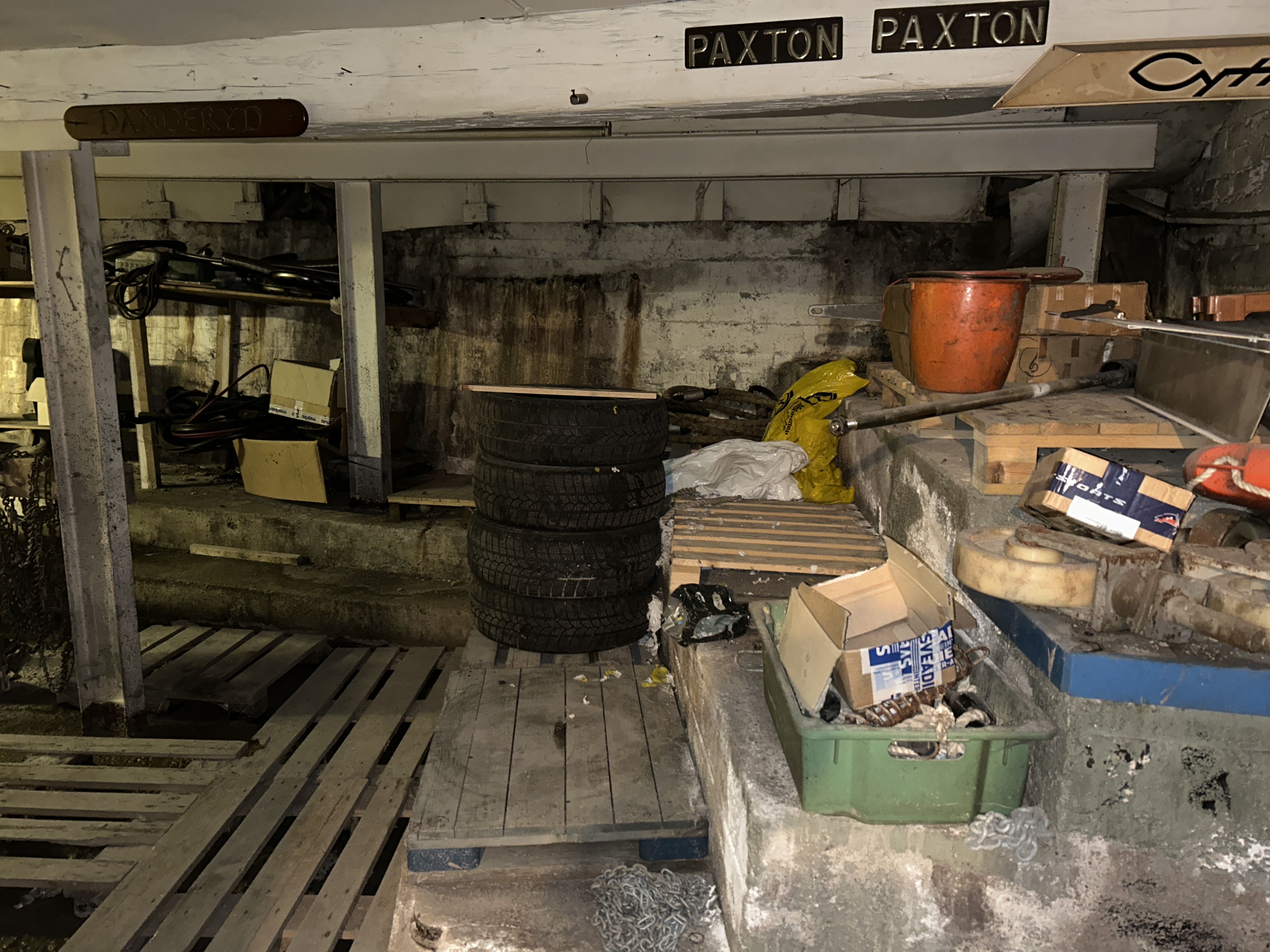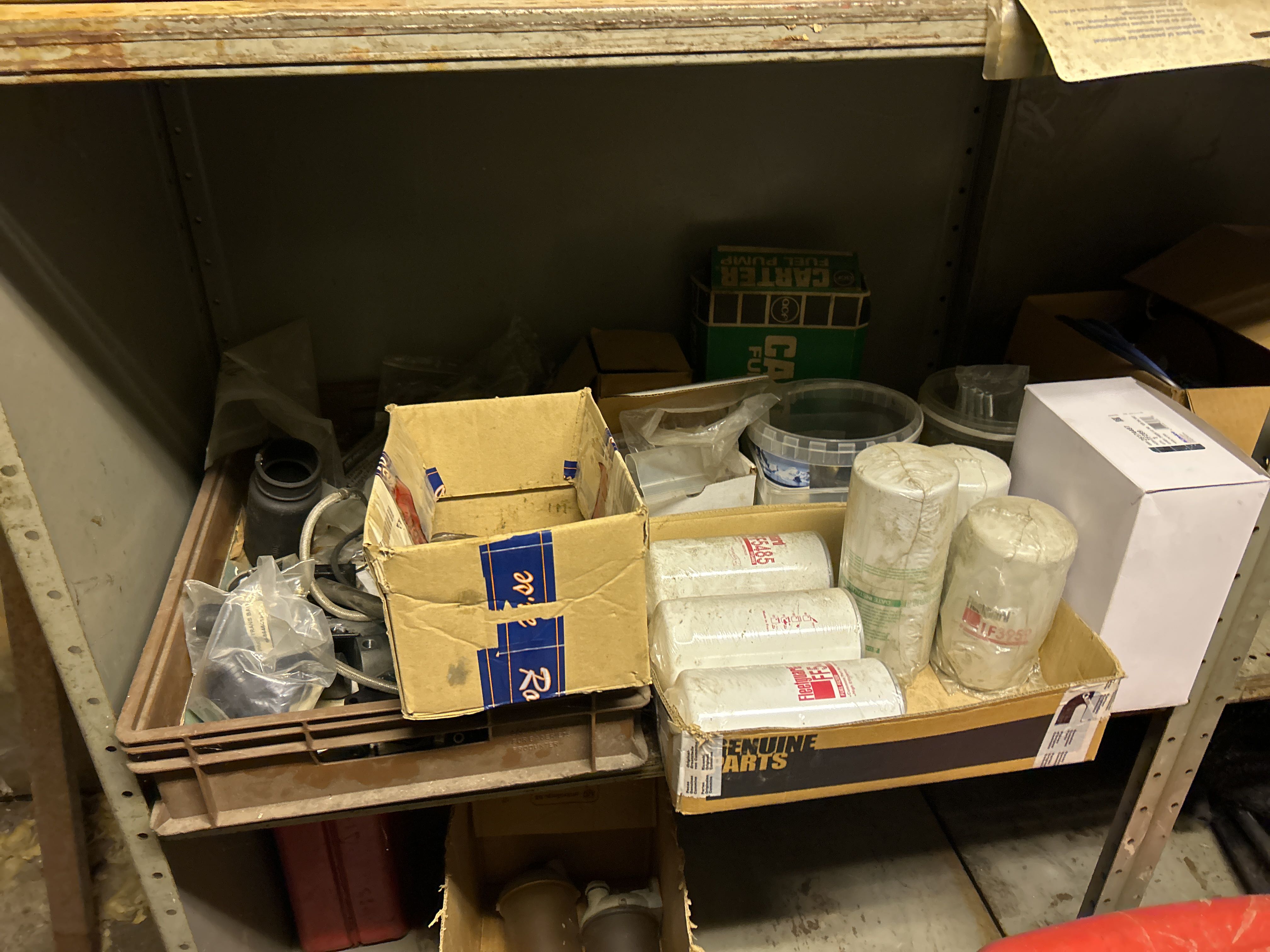 Större samling med diverse reservdelar och inventarier från båtverkstad