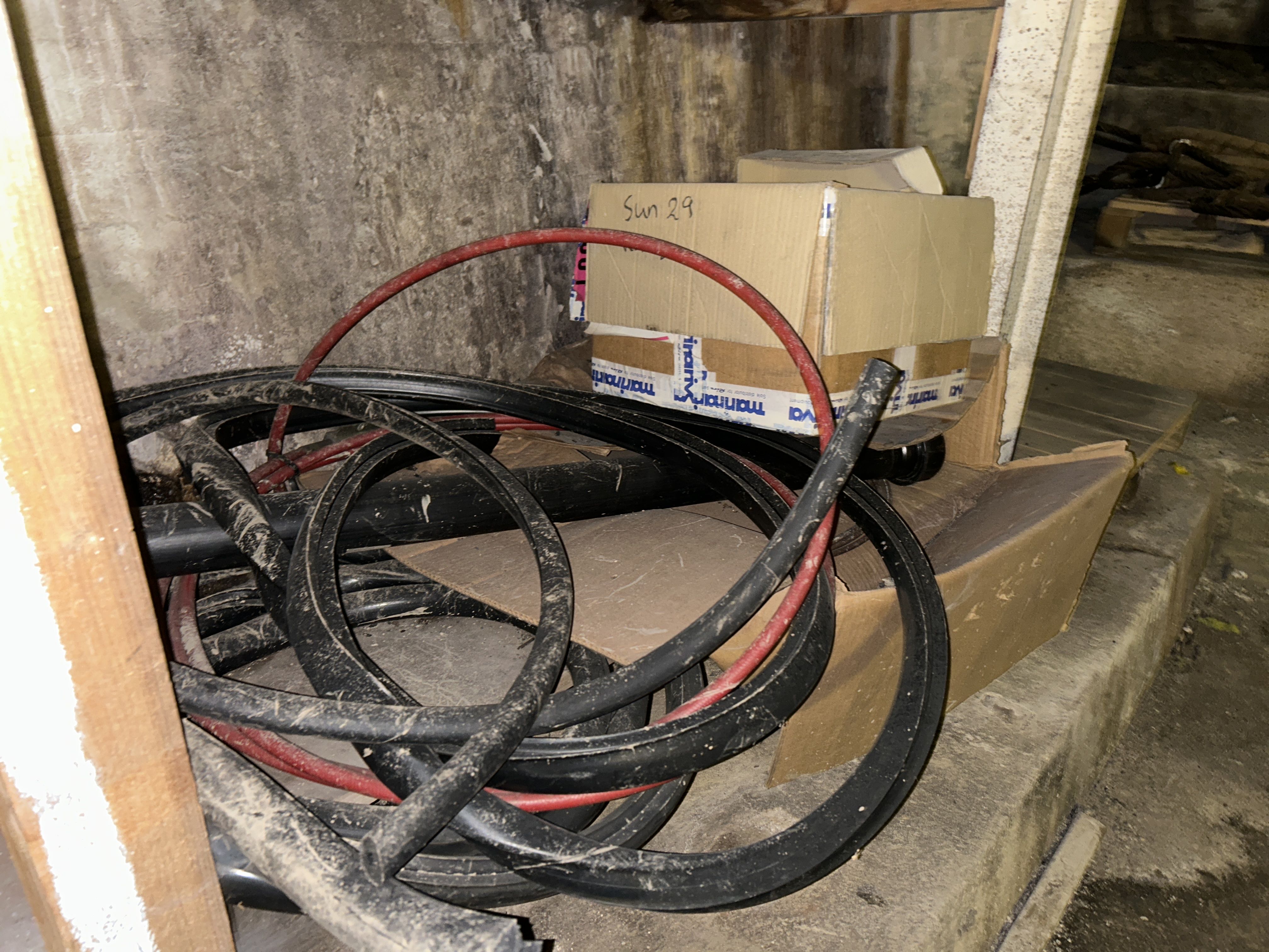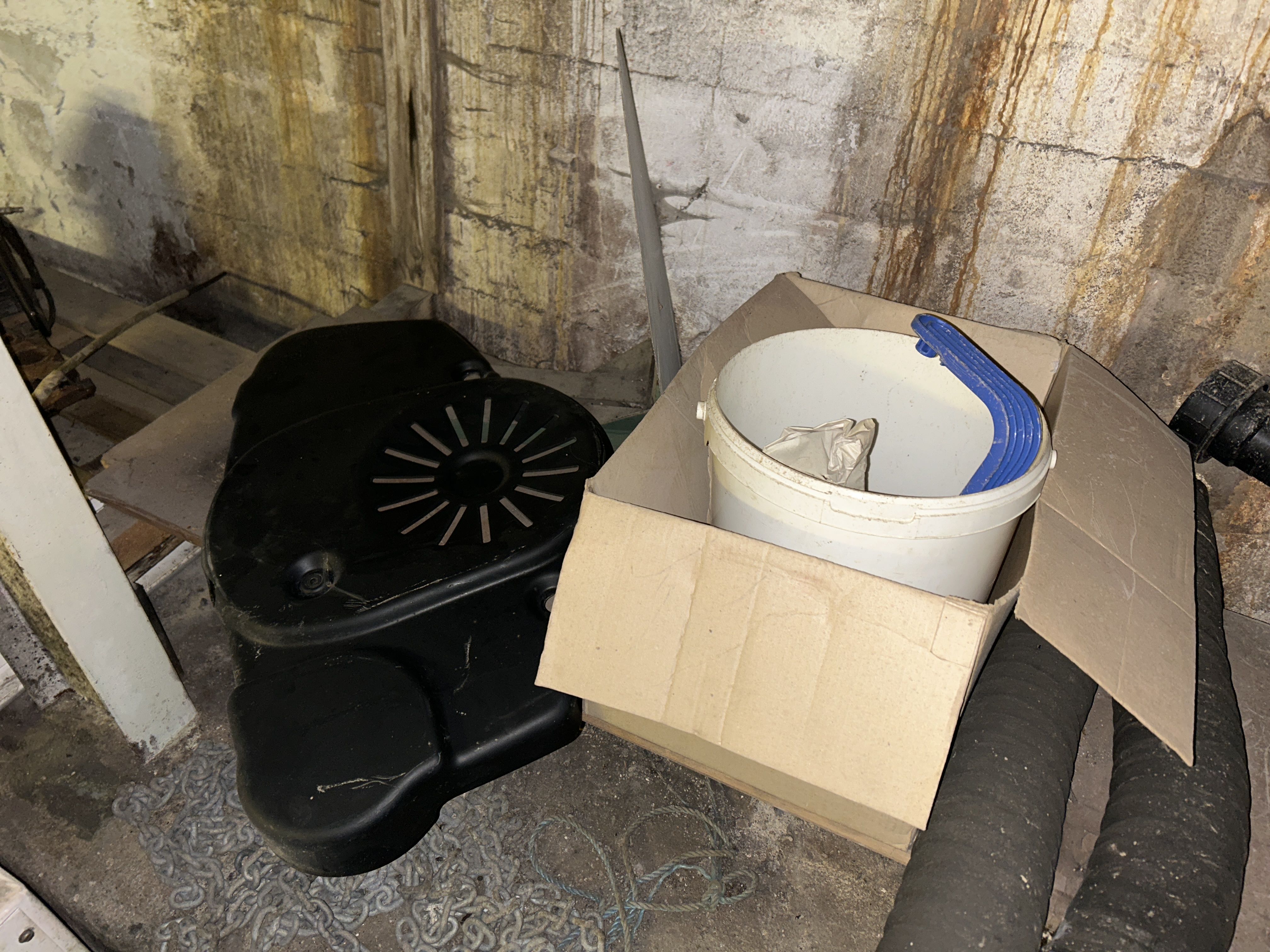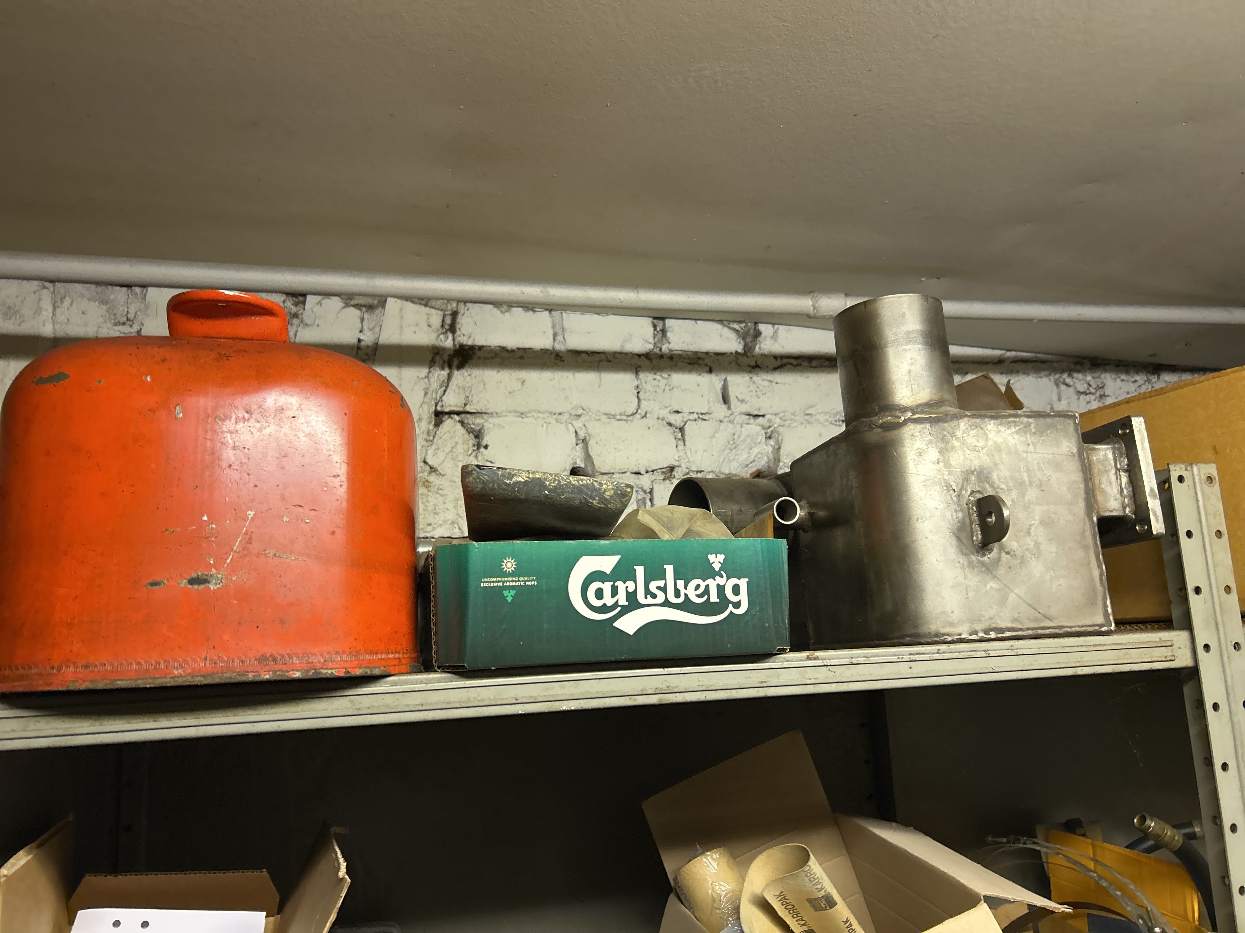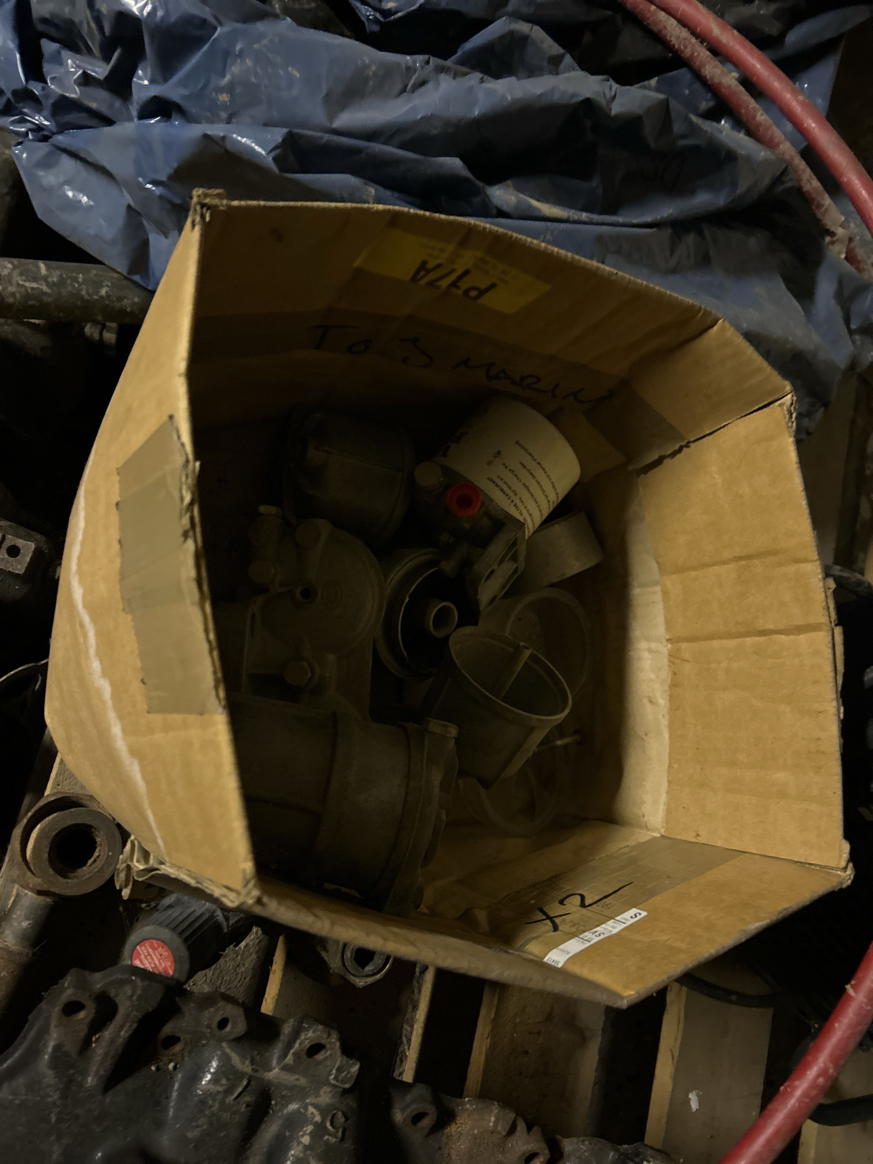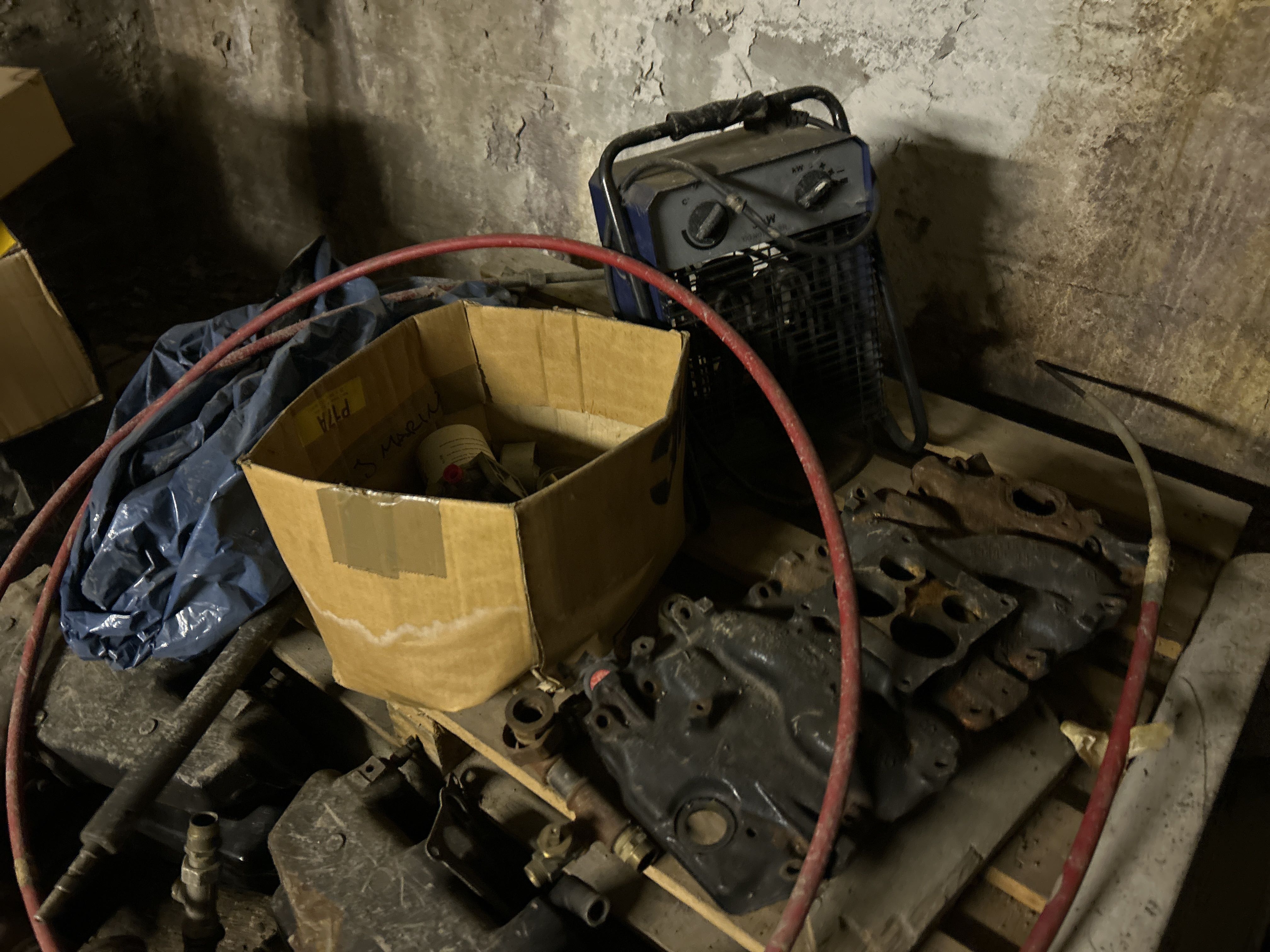 Större samling med diverse reservdelar och inventarier från båtverkstad