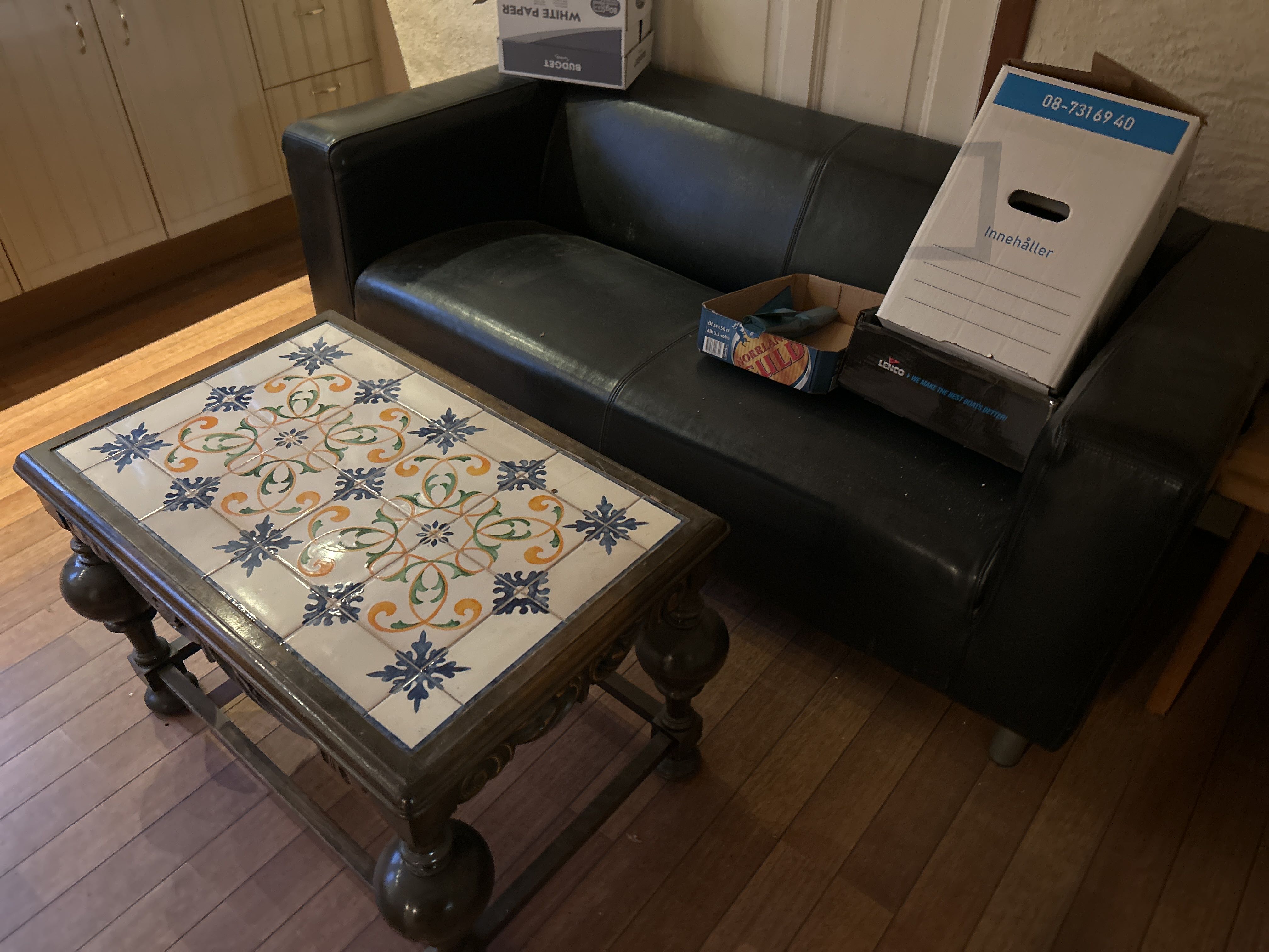 - 1st skinnsoffa med bord