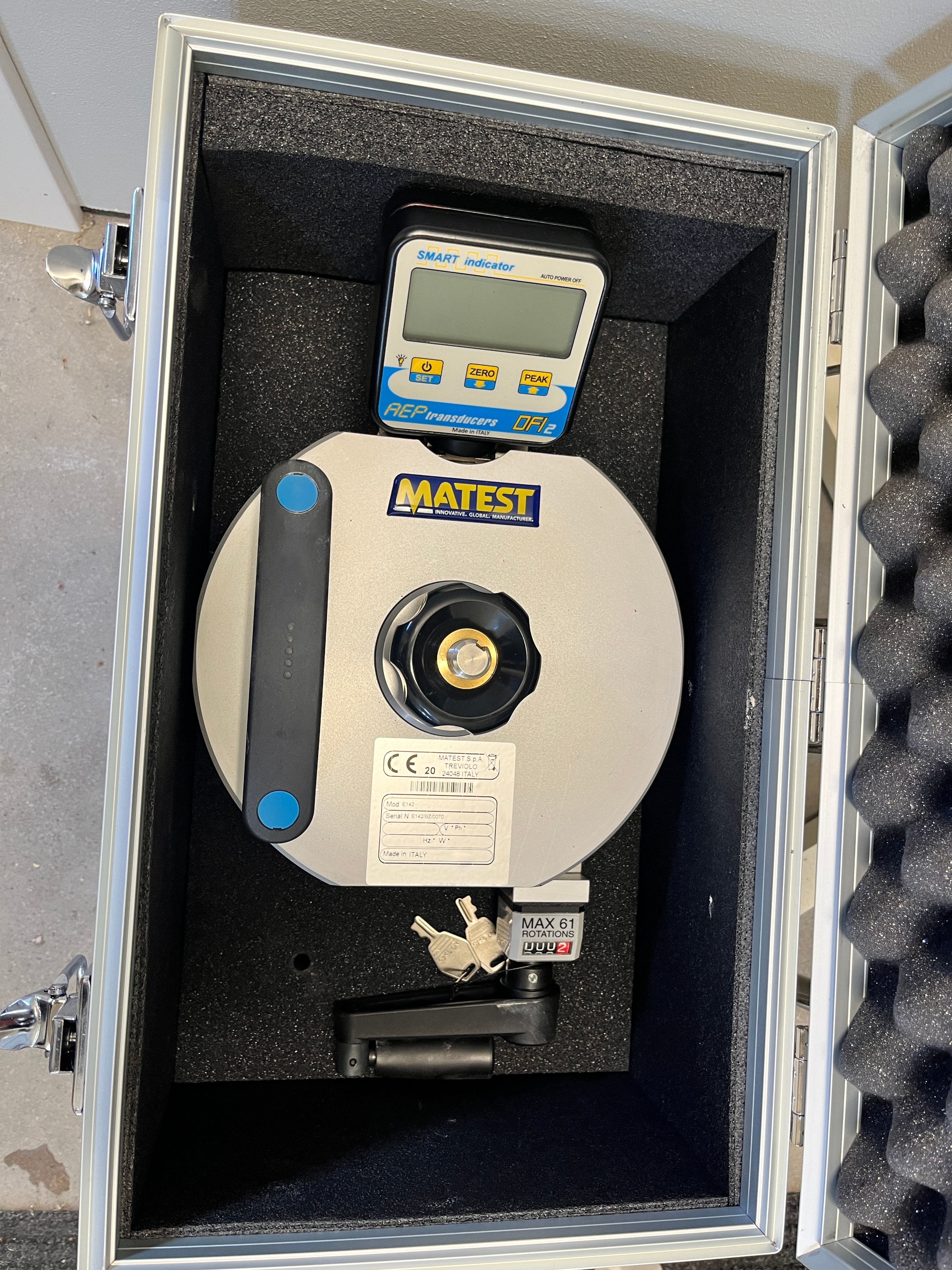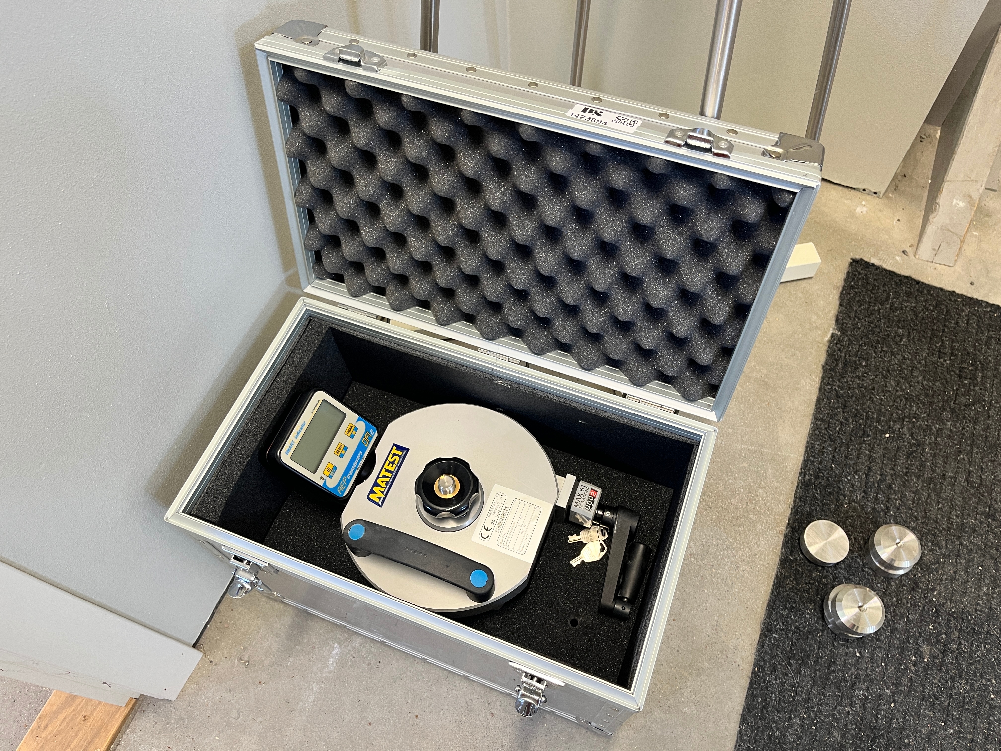 Matest E142 dragprovare mäter vidhäftningskraften och draghållfastheten för betong. i låda.