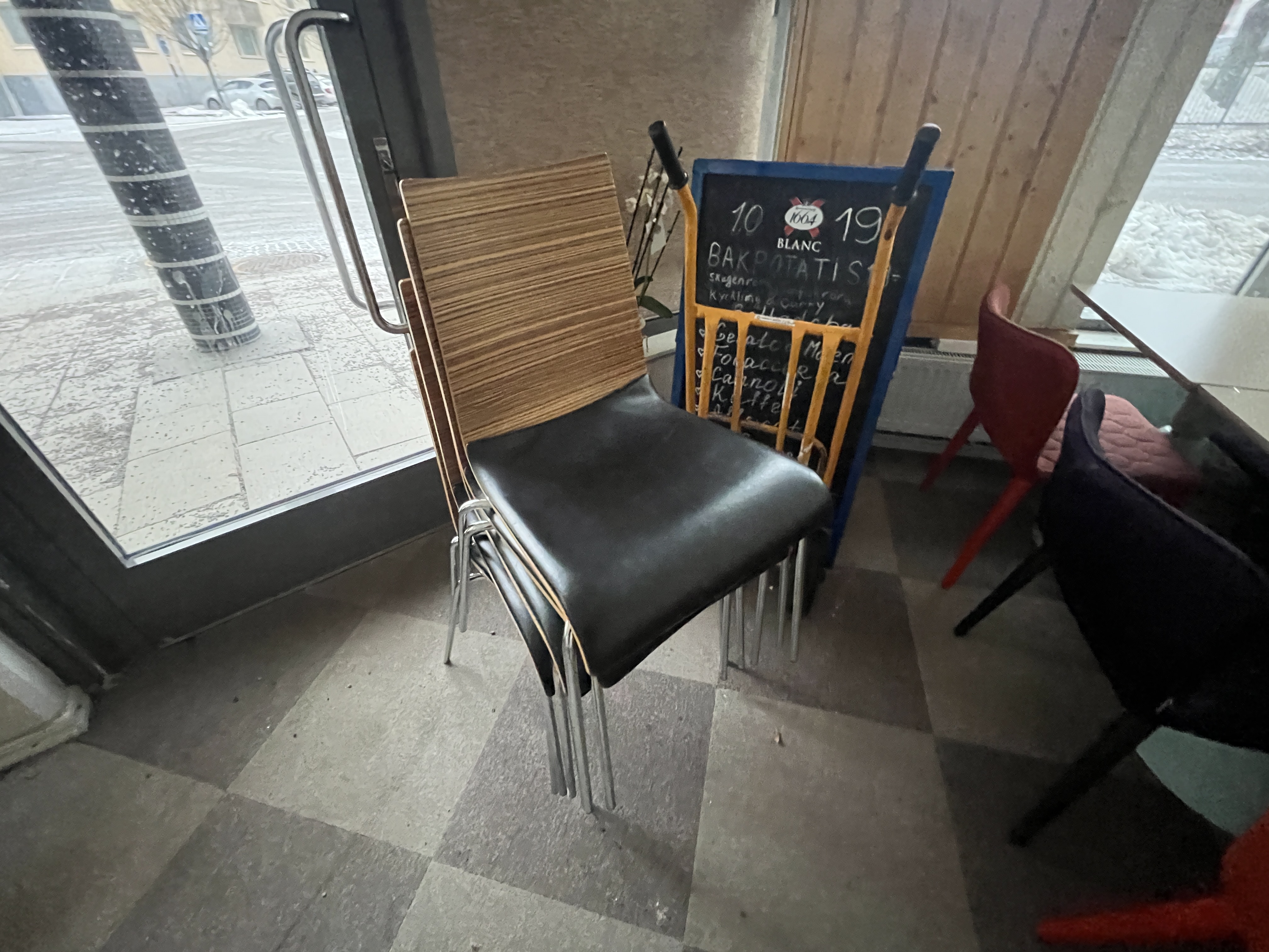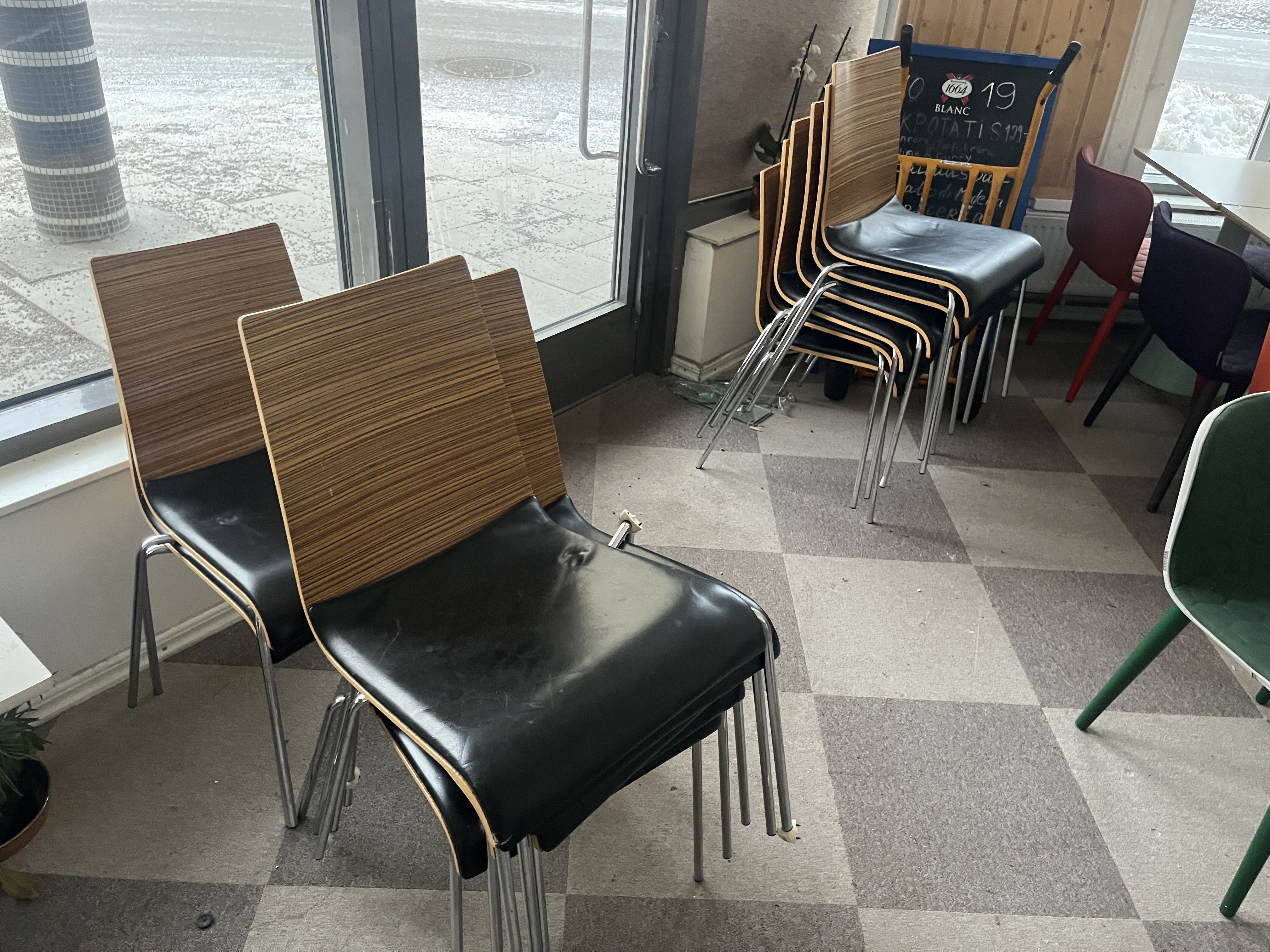 • Trästolar med skinnsits, flera trasiga - 16 st